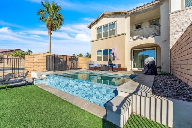 Welcome to lakefront living at its finest in Terra Lago--perfectly positioned on a premium lot with expansive, unobstructed water views.This 4-bedroom, 3-bath home offering over 2,400 sqft features an open-concept layout and seamless indoor-outdoor flow, ideal for both full-time living and short-term rental use. The property's true lakefront positioning provides direct water-facing views from the backyard, creating a highly desirable setting that enhances both lifestyle enjoyment and guest appeal.Designed for resort-style living, the backyard showcases a private infinity pool overlooking the lake, delivering a unique experience that stands out in the marketplace. From sunrise reflections to evening sunsets, the setting offers a sense of openness and privacy rarely found in interior locations. Offered fully furnished, this home is turnkey and ready for immediate use or rental.Located within Terra Lago, a community known for its short-term rental flexibility with no restrictions, this property is well-suited for a range of buyers, including those seeking an income-producing asset, second home, or 1031 exchange opportunity. The functional layout also provides potential for a 5th bedroom conversion, offering added flexibility and future value.Positioned in the Coachella Valley's ''City of Festivals,'' the home is just minutes from Coachella, Stagecoach, Acrisure Arena, golf, and upcoming surf developments, all of which continue to drive strong demand for short-term rentals in the area. For investors, the combination of location, layout, and lakefront exposure presents an opportunity to explore cost segregation strategies to potentially accelerate depreciation and enhance overall tax efficiency.A rare opportunity to own a well-positioned lakefront property that blends lifestyle, income potential, and long-term upside.