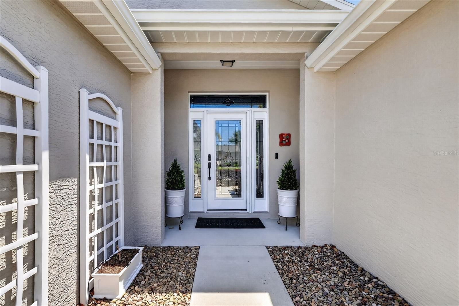 Welcome to this beautifully enhanced Mayflower II model, where thoughtful upgrades and everyday comfort come together seamlessly. Positioned on a desirable corner homesite, this home offers both curb appeal and added privacy, complemented by a professionally designed stacked wall landscape package that creates a warm and inviting first impression. Inside, you’ll find a refined interior with crown molding and a layout designed for both relaxed living and entertaining. The heart of the home is the custom kitchen, featuring upgraded cabinetry and a dedicated coffee bar—perfect for starting your mornings or hosting guests with ease. The primary suite is a true retreat, highlighted by a custom California Closet system complete with a revolving shoe rack, offering both luxury and organization. Additional bedrooms feature luxury vinyl flooring, blending style with durability and low-maintenance living—ideal for today’s lifestyle. Outdoor living is just as impressive, with an extended lanai and birdcage enclosure, creating the perfect space to enjoy Florida’s beautiful weather year-round. A separate paver patio adds even more flexibility for outdoor seating, grilling, or quiet relaxation. Practical upgrades provide peace of mind, including custom-built laundry cabinetry, wiring for a whole-house generator, and a transferable HVAC maintenance contract—ensuring comfort and convenience long after move-in. This Mayflower II is more than just a home—it’s a thoughtfully upgraded space designed to support both everyday living and the next chapter ahead. Located in the sought-after Arlington Ridge community in Leesburg, residents enjoy a vibrant 55+ lifestyle centered around both recreation and connection. This gated neighborhood offers a blend of resort-style amenities and everyday convenience, including a championship golf course, on-site restaurant and tavern, and an active social calendar with clubs, events, and activities for every interest. Arlington Ridge Golf Club Beyond the amenities, Arlington Ridge is designed for low-maintenance living, with HOA services that include lawn care, cable and internet, allowing homeowners to focus more on enjoying their time rather than maintaining their home. Ideally positioned just minutes from downtown Leesburg, the community offers easy access to shopping, dining, and the Harris Chain of Lakes, making it simple to enjoy both an active lifestyle and the natural beauty Central Florida is known for.