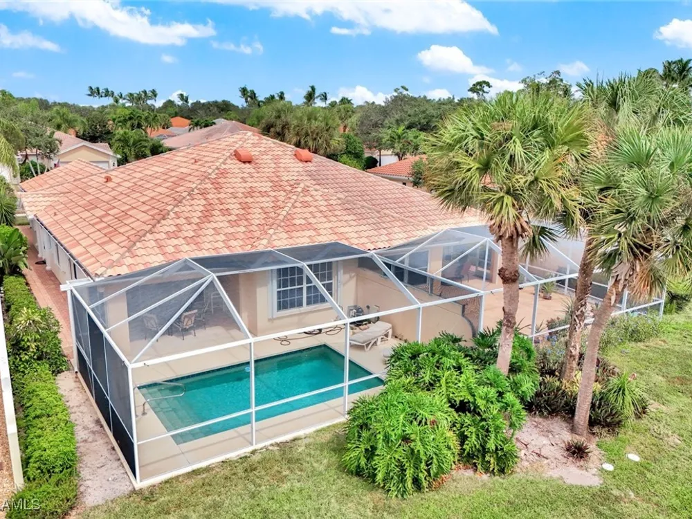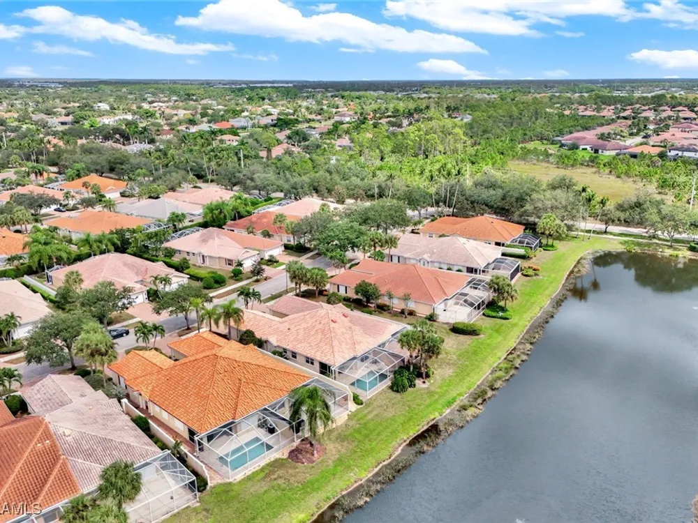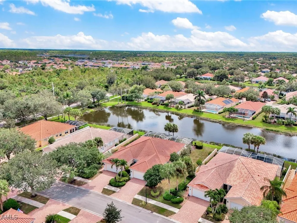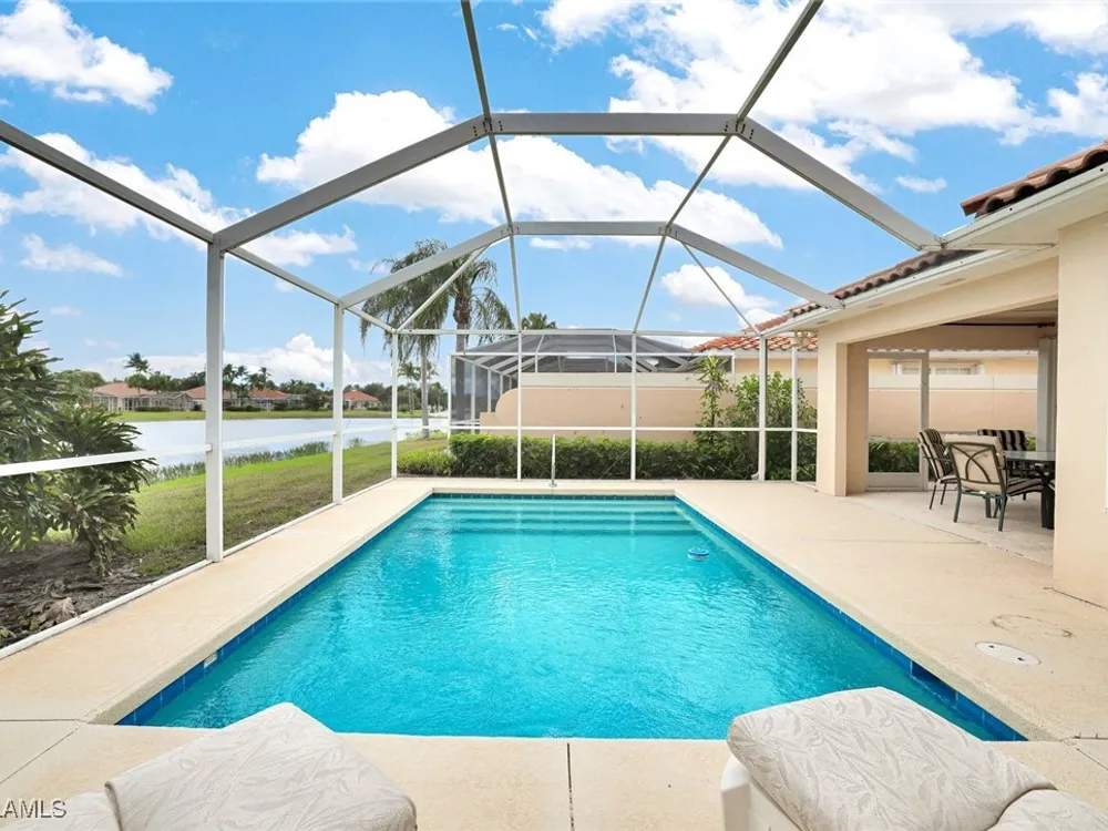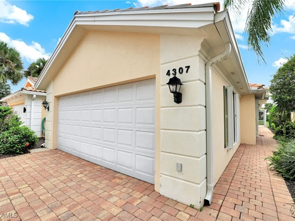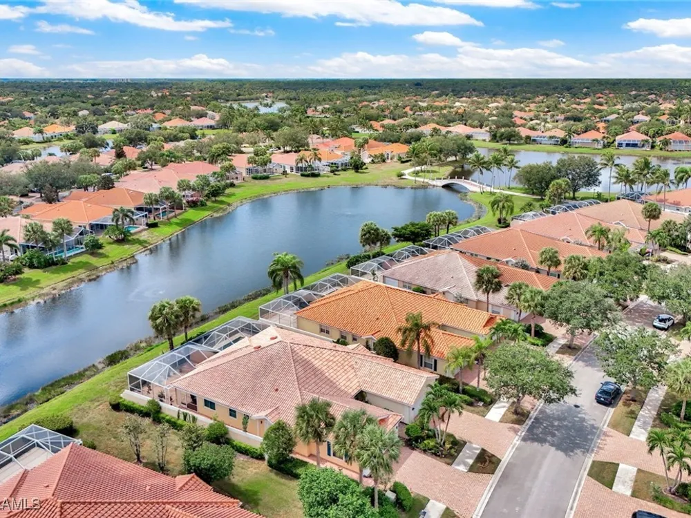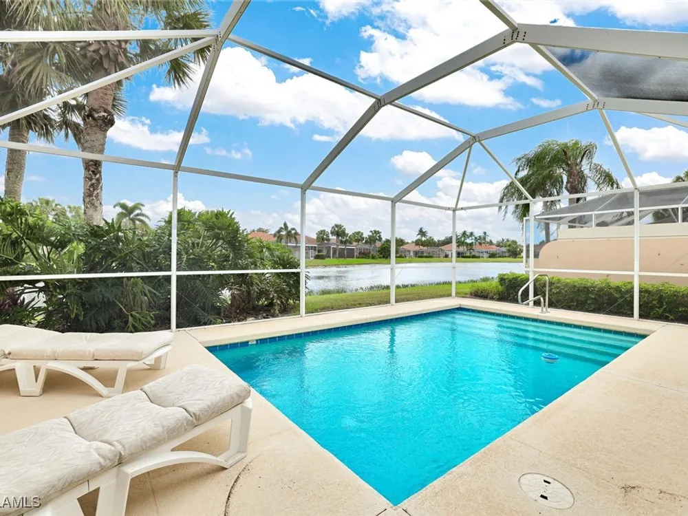 Welcome to 4307 Redonda Lane in Island Walk. Island Walk is a popular gated community located in North Naples and is only 7 miles from Vanderbilt Beach. This Southern Lake View Capri Attached Villa offers 2 spacious bedrooms, 2 bathrooms, a 2-car attached garage, along with a private side entrance. Entertain family and friends on your caged lanai and private pool. Walking inside, you'll instantly notice the open concept floor plan with a spacious kitchen and Great room. Plus, right outside of your main living area, you have a large screened-in lanai with a privacy wall. Outside of your front doors and within the gates, Island Walk is bustling with Activities and Amenities. There are miles of walkways and bridges for walking and biking, a resort style pool and a lap pool, a fitness center, tennis & pickleball courts, a restaurant, post office, gas station, bocce courts, car wash, beauty and nail salon and a putting green. There are many options for dining and entertainment that are just a short drive.