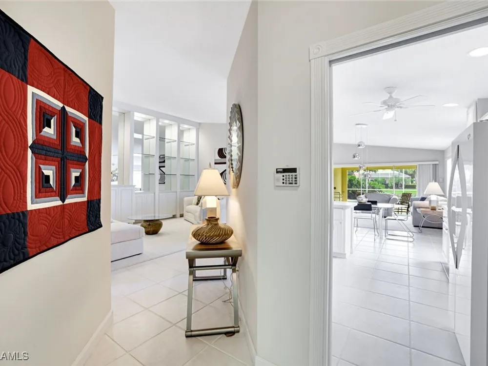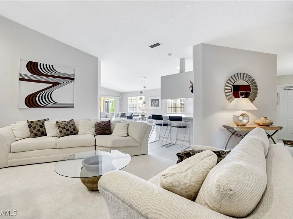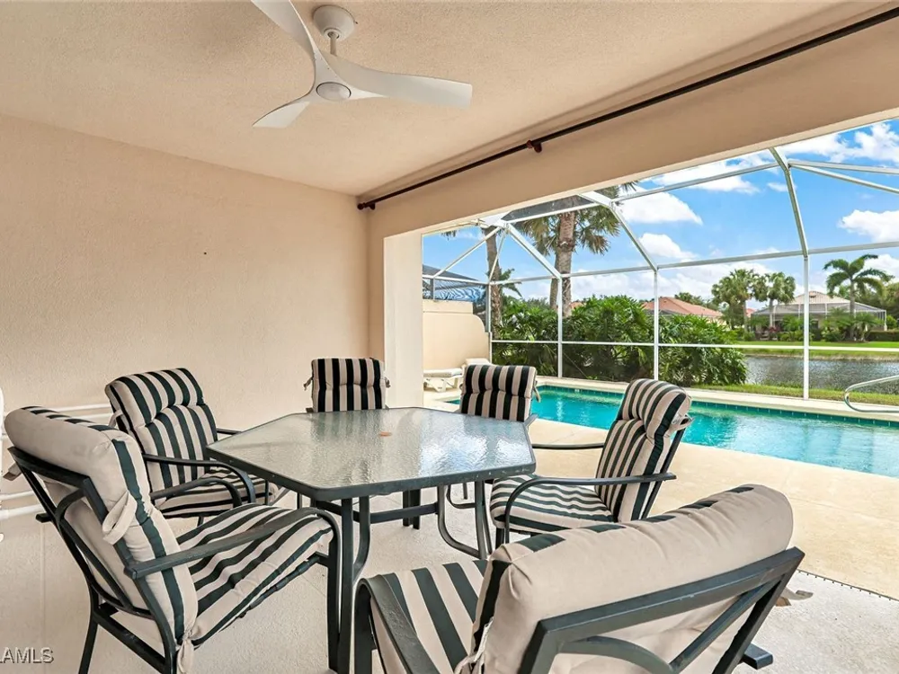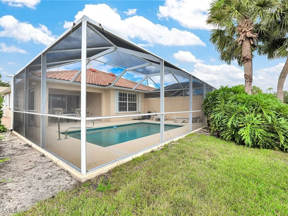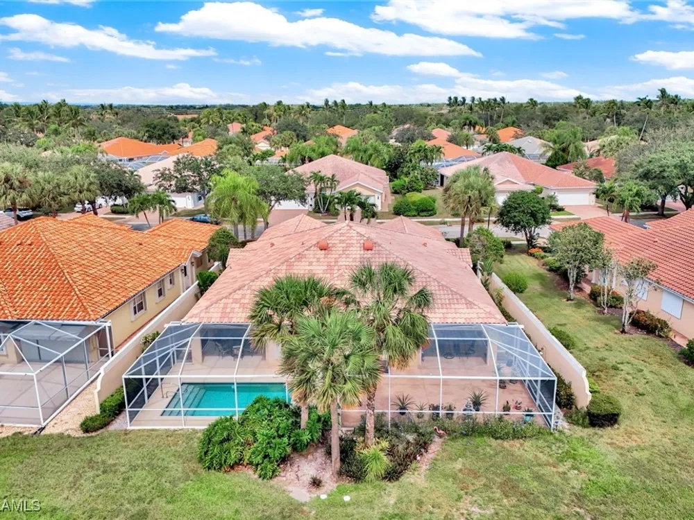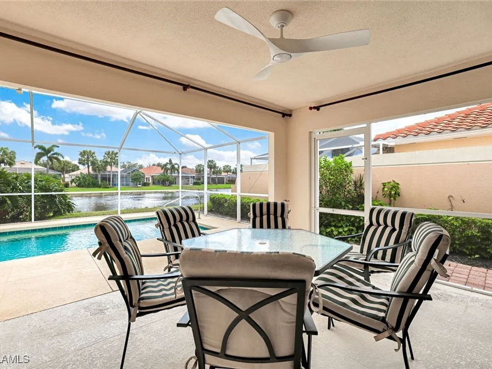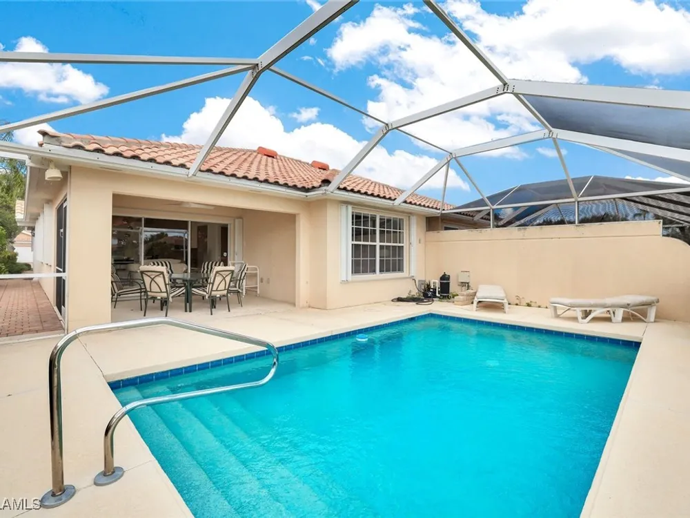 Welcome to 4307 Redonda Lane in Island Walk. Island Walk is a popular gated community located in North Naples and is only 7 miles from Vanderbilt Beach. This Southern Lake View Capri Attached Villa offers 2 spacious bedrooms, 2 bathrooms, a 2-car attached garage, along with a private side entrance. Entertain family and friends on your caged lanai and private pool. Walking inside, you'll instantly notice the open concept floor plan with a spacious kitchen and Great room. Plus, right outside of your main living area, you have a large screened-in lanai with a privacy wall. Outside of your front doors and within the gates, Island Walk is bustling with Activities and Amenities. There are miles of walkways and bridges for walking and biking, a resort style pool and a lap pool, a fitness center, tennis & pickleball courts, a restaurant, post office, gas station, bocce courts, car wash, beauty and nail salon and a putting green. There are many options for dining and entertainment that are just a short drive.