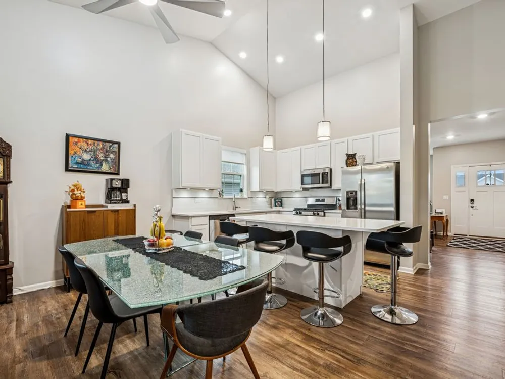- Vaulted Ceiling(s), Bedroom on Main Level, Full Bathroom, Walk-In Closet(s), Open Floorplan, Quartz Counters, Den, Separate Shower, Double Shower