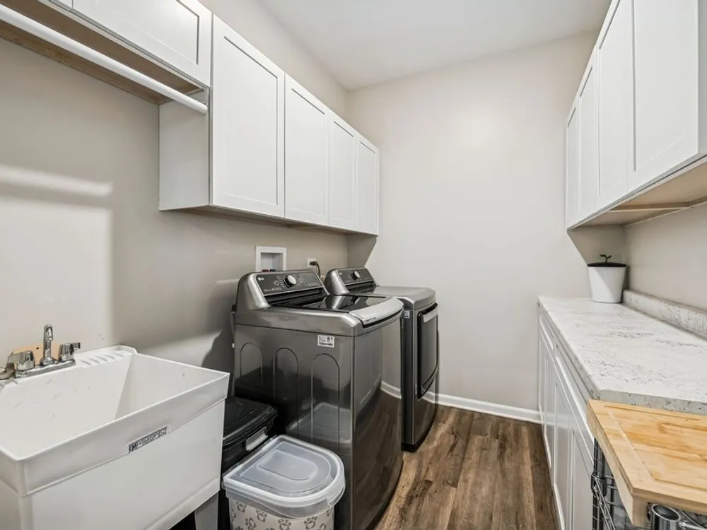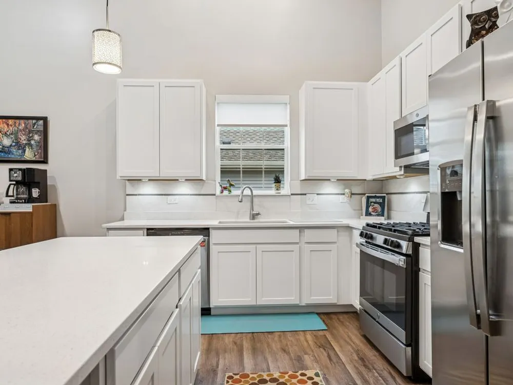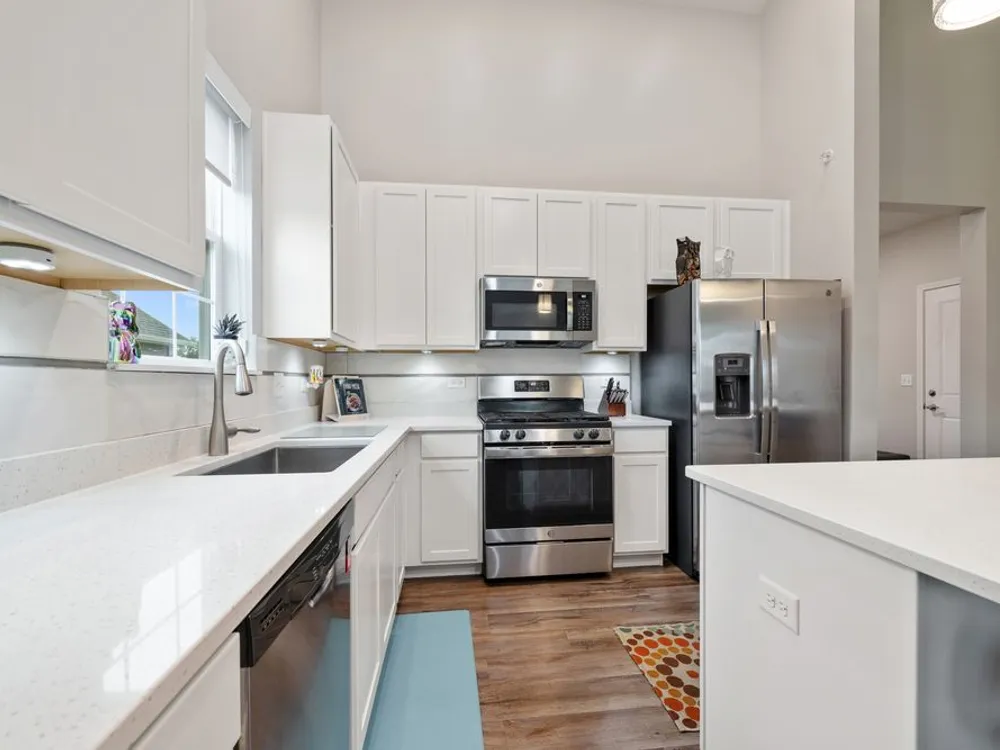 - Range, Microwave, Dishwasher, Refrigerator, Washer, Dryer, Disposal, Stainless Steel Appliance(s)