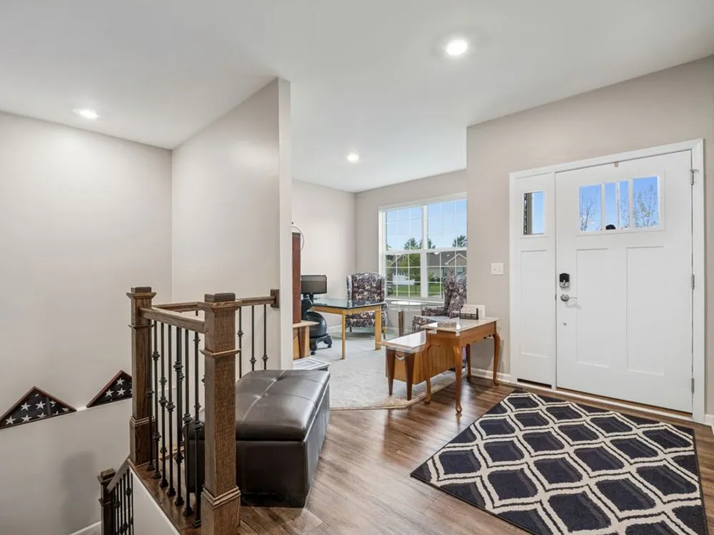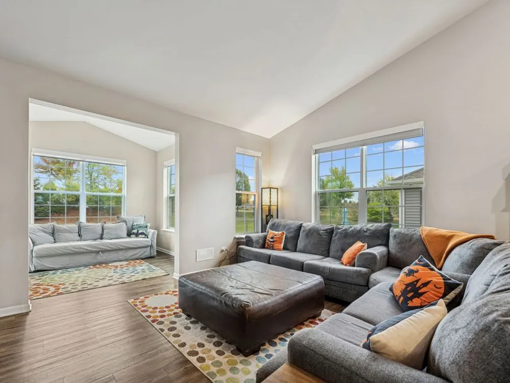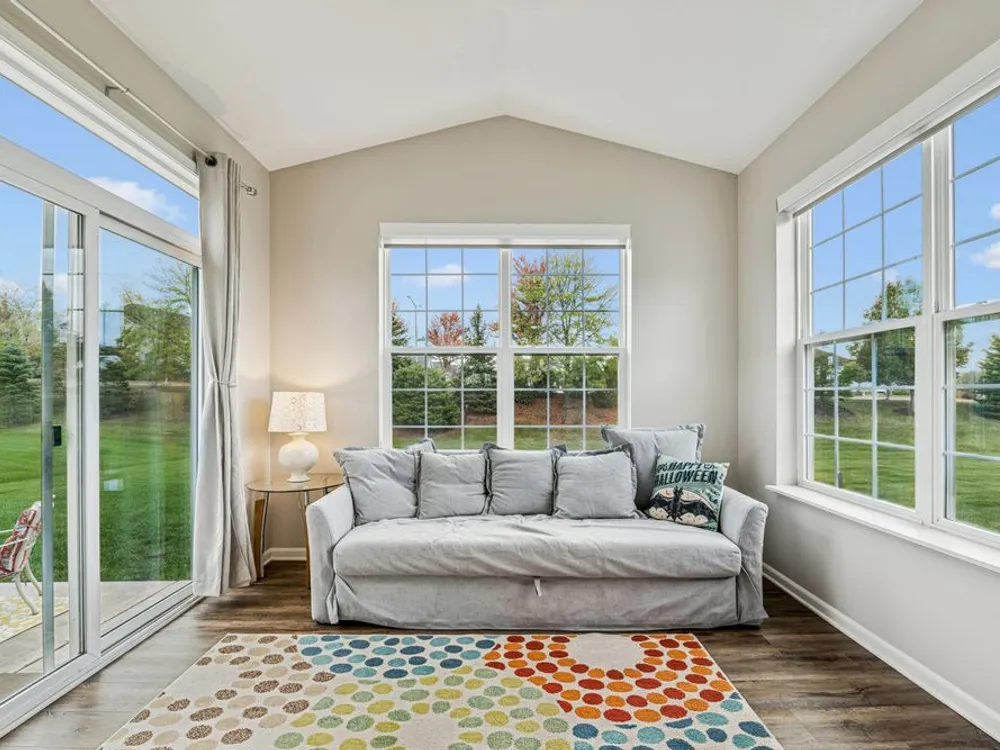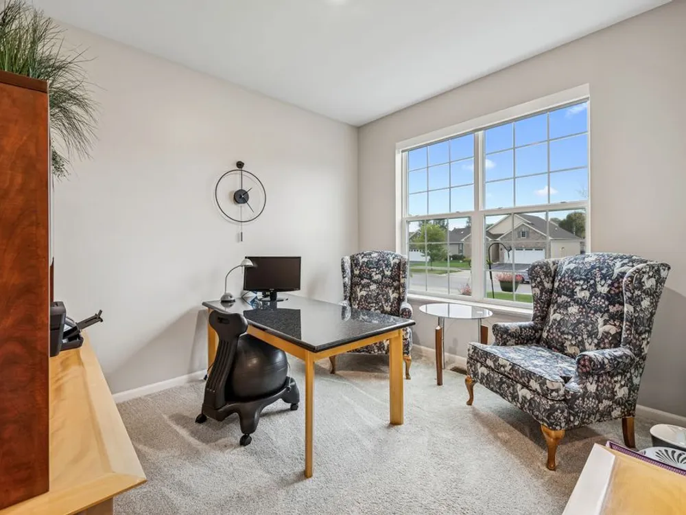 Andare at Glenloch is an active adult community featuring a community clubhouse, two lakes and walking paths. This Napa model features two bedroom, den, full expanded basement and a two car garage. It's nestled on the largest lot in the subdivision which you may enjoy overlooking from your sun room. This lot has an invisible fence with two collars and extra batteries for your pup! A 25x13 concrete patio. Upper and lower cabinets in Laundry room with High end LG washer and dryer that accommodates king linens! This gourmet kitchen offers 42" cabinetry with quartz countertops, stainless steel appliances and an island with pendant lighting. Nice ceramic backsplash with rechargeable under counter lighting. Beautiful luxury vinyl plank flooring. This ranch also has Smart Home Automation.