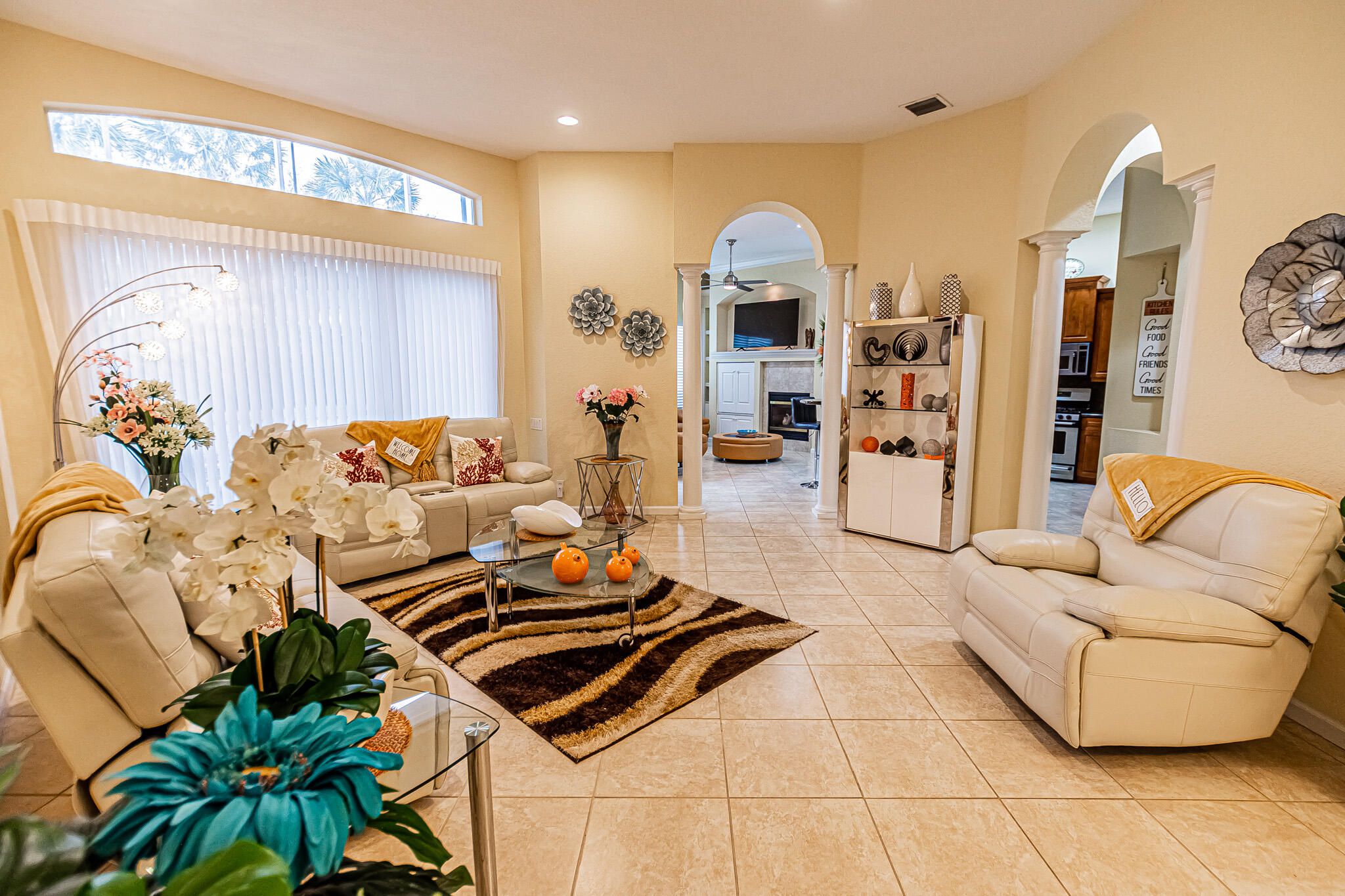 Enjoy Florida living in The Cascades! This spacious 3BR/2.5BA/2CG Chardonnay model offers 2,211 sq ft under air with tile flooring in most areas, separate family room with gas fireplace, formal living and dining rooms, plus breakfast area. Kitchen features 42'' wood cabinets, granite counters, stainless appliances, and gas cooking. Large primary suite with dual walk-in closets, soaking tub, multi-head tiled shower, and dual sinks. Private backyard with covered and screened lanai. GC Roof Certification shows 17 years remaining life. Affordable HOA includes lawn care, cable, irrigation maintenance, and resort-style amenities--clubhouse, pool, tennis, fitness center, golf & more. Active 55+ community in the heart of St. Lucie West.