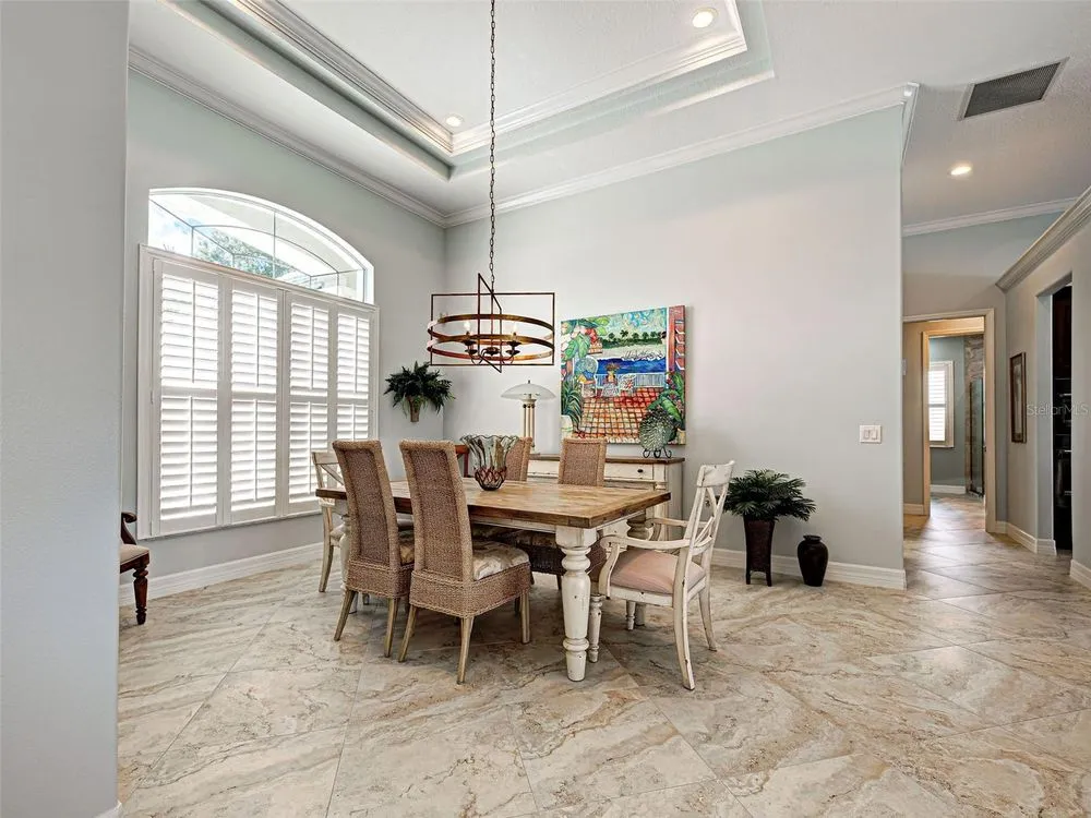 - Built-in Features, Cathedral Ceiling(s), Ceiling Fan(s), Central Vacuum, Coffered Ceiling(s), Crown Molding, High Ceilings, L-Shaped Dining Room, Open Floorplan, Main Level Primary, Solid Surface Counters, Solid-Wood Cabinets, Split Bedrooms, Tray Ceiling(s), Walk-In Closet(s)