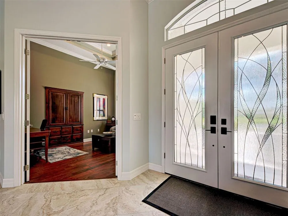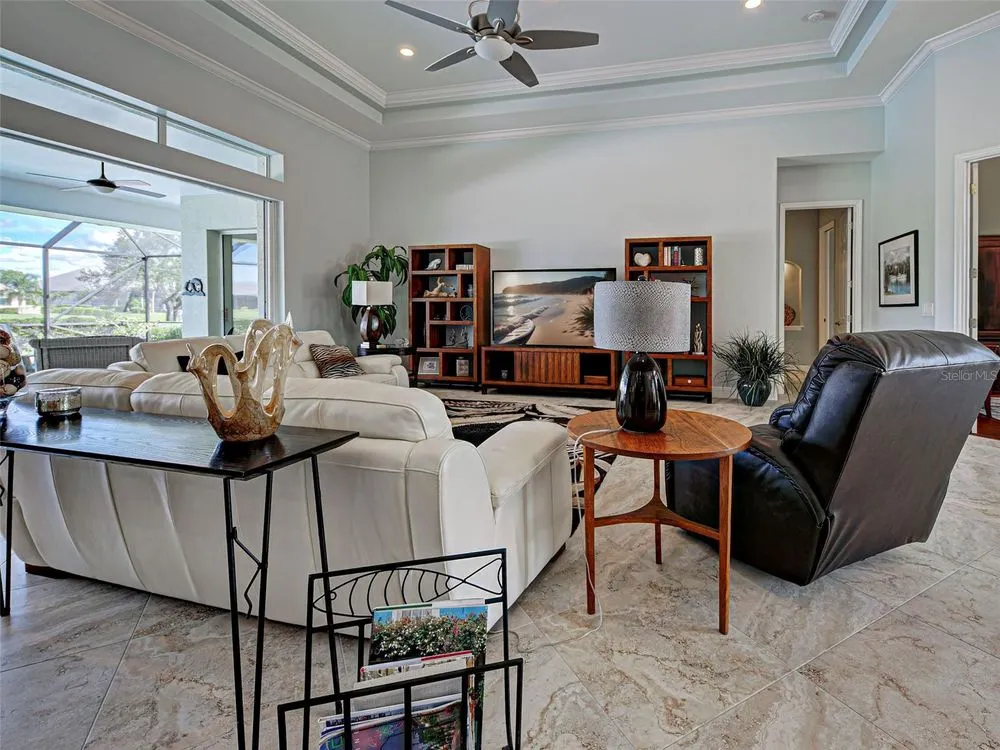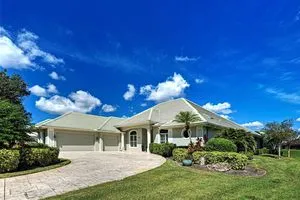 You need to see The Reserve at The Plantation Golf and Country Club to appreciate how special a private gated community can be. Seventy-three custom homes nicely laced among the fairways and lakes of the Panther golf course, which is one of two championship courses at The Plantation and annual host of the LPGA qualifier tournament each October. This home overlooks the 8th tee with fairway and water views. Come watch these fantastic women athletes from ease of your own pool side chair. The home was extensively remodeled in 2022 offering a fantastic great room concept that brings open air Florida living at its best. The property offers 3 bedrooms and 3 baths in a split wing design allowing both owner and guest privacy. Each wing and the great room have its own HVAC, all recently replaced. The home features 13’ double tray ceilings that give tremendous volume and light. New 24” tile flooring adds to the brightness and flow, running throughout the home except for the bedrooms and den. The remodeled kitchen and bathrooms all feature bronze-stained cherry cabinets and beautiful matching granite counters and accents. The kitchen is a double island design featuring built in oven, oven/microwave, gas cooktop, high power range hood, dish washer, wine cooler, and refrigerator. All stainless and new in 2022. Just off the kitchen is a remodeled laundry with additional pantry and storage space, a second refrigerator, washer, dryer, and sink area with the same matching granite. There are both formal and casual dining areas as well as kitchen island seating for 6 or more. A nice sized den/office area features wood flooring and built in cabinet and 6 file drawers. The primary bedroom suite also features the high tray ceilings and a pool side view. Dual closets with built in shelving lead to an elegant bath with two sinks set in 14’ of beautiful granite and cabinets. The large walk-in shower has a rain shower option to enjoy. In the guest wing you will find two bedrooms that easily handle king size beds. One bedroom has an ensuite bath/shower while the second bedroom is adjacent to the third bath. All can be closed off from the main house for privacy. All bathrooms have newly tiled showers and hardware. Outside living at its best with this expansive lanai. There is a 24x10 seating area just off the living room. A cabana that has grill, pot burner, exhaust hood, mini fridge, sink with disposal, and a bar counter for two. The approx. 30x12 pool and spa was resurfaced in 2024 along with a new heater. The three-car garage is spacious and has many built in cabinets. There is additional storage above the garage. The home has plantation shutters, central vac, on-demand circulating hot water, an in floor safe, and all new interior lighting. A whole house generator was added in 2024 for additional storm protection. Residents can take advantage of optional membership at the Plantation Golf and Country Club which offers an array of resort amenities, dining, and social events. All this is located just minutes from Venice’s Gulf beaches, the Atlanta Braves Spring Training Stadium, shopping, dining, and easy access to I75. All measurements should be validated by the buyer. See https://www.thereserveatpgcc.com for general information