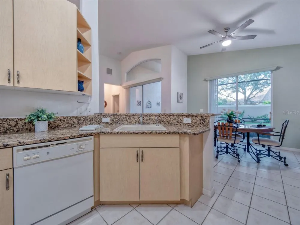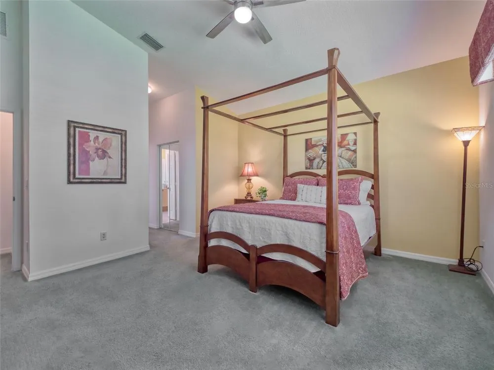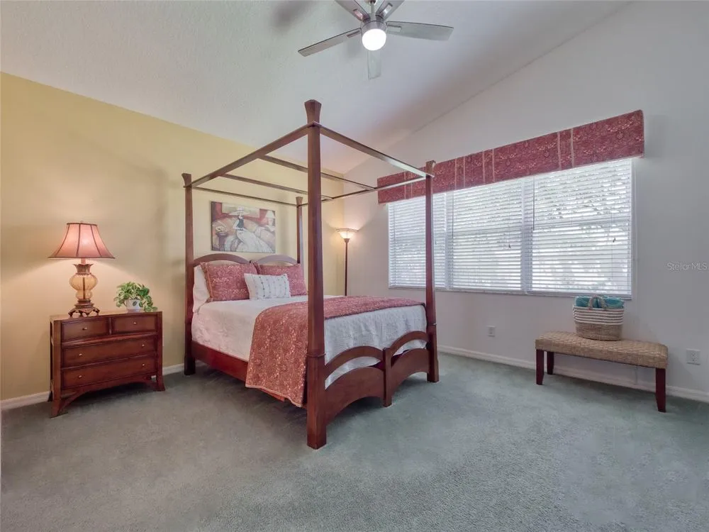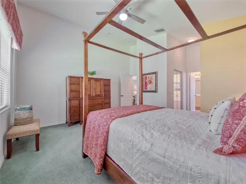 - Cathedral Ceiling(s), Ceiling Fan(s), Eat-in Kitchen, High Ceilings, Open Floorplan, Main Level Primary, Stone Counters, Walk-In Closet(s), Window Treatments