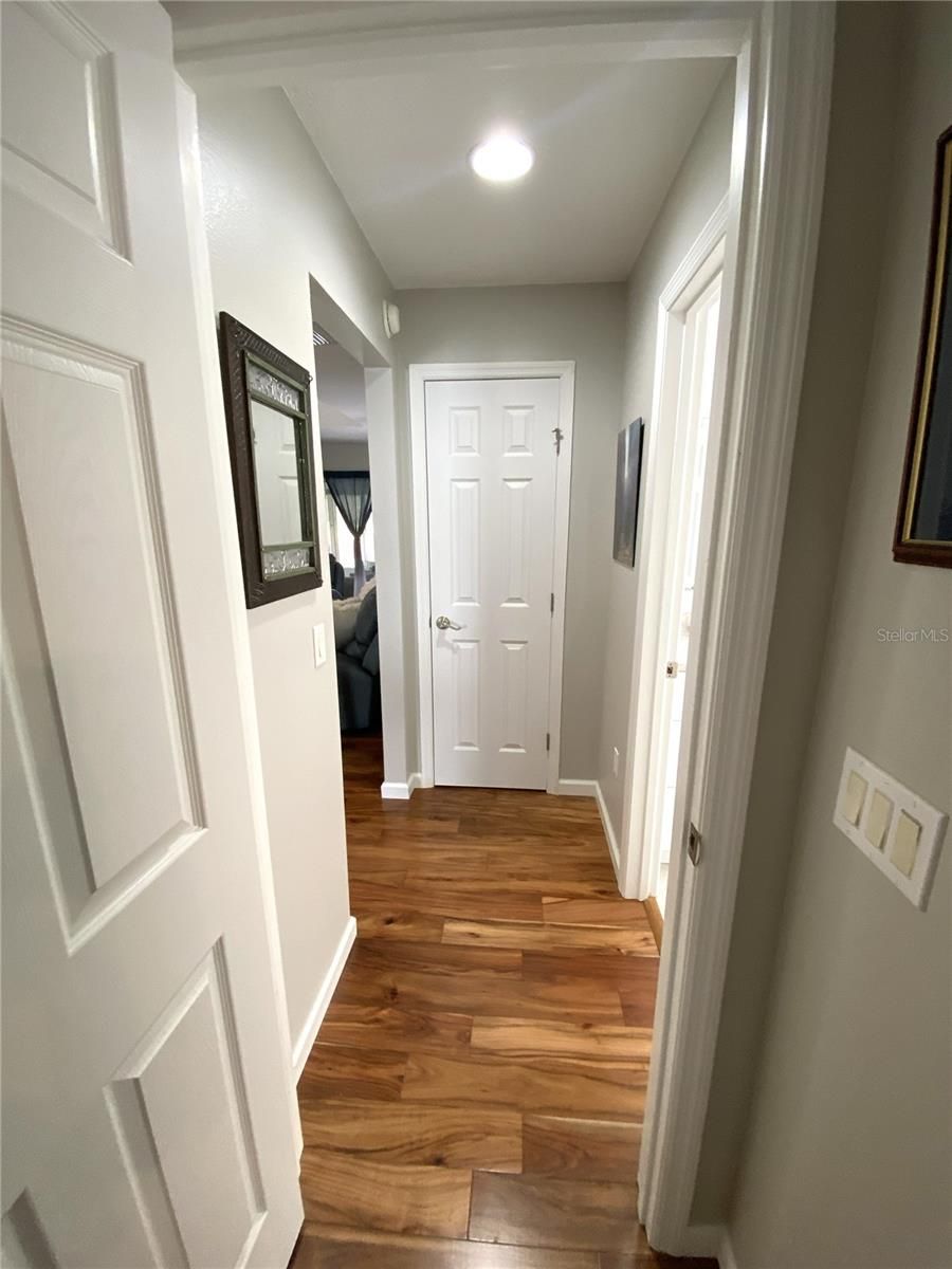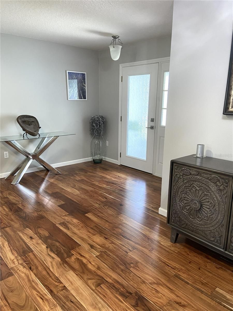 I am a beautifully upgraded home and move in ready! Some of my newest upgrades include new flooring throughout in 2024 and consists of NEW TILE in bathrooms and kitchen. Beautiful Acacia solid WOOD FLOORS in living room and bedrooms. My front door entry way has a NEW CUSTOM door with WATERFALL GLASS to match the existing side light and you will see that my EXTERIOR was fully PAINTED in 2024. Come inside and you'll see the freshness of NEW INTERIOR PAINT throughout in 2025. I also have all new lighting fixtures throughout my interior in 2024. Something else I have that is a bonus, is PLANTATION SHUTTERS in all windows except for the 2nd bedroom! Come into my Kitchen and you'll see beautiful wood cabinetry with brand NEW SINK, FAUCET and high grade QUARTZ COUNTERS complete with sparkle! I have STAINLESS STEEL APPLIANCES and my NEW REFRIGERATOR was installed in 2025! The Quartz also carries through in the bathrooms with NEW SINKS and FAUCETS, and were all installed in 2024. My primary bedroom is beautiful with TRAY CEILINGS and an access door to the enclosed back patio. The primary bathroom is all NEW with TILE FLOORS, QUARTZ counters, NEW CABINETS sink and faucets, and a NEW TILE SHOWER with GLASS ENCLOSURE and NEW COMMODE! My Guest bath also has the same new Quartz, vanity, sink and faucet. The bathroom upgrades were completed in 2024 and 2025. My whole home also has the added benifit of a NEW WATER SOFTENER in 2025! One of the best highlights about me is that I have a beautifully manicured yard, and a stunning GOLF COURSE lot with grandiose views. I have nice trees in the back yard to make it feel private, while not obstructing the view of the greens! And no stray golf balls in my yard as the golfers are hitting balls away from the house! You can watch the greens from my beautiful back patio that is enclosed with tile floors and also nice shade blinds if you need them! And the best way to my back enclosed patio is through the triple door sliders from the living room! The three panels stack on top of each other to make my lanai part of your living space! I know you are going to love me so make sure you stop in and see me with all of my upgrades! I need nothing, you can move right in! I'm anxious to see you and meet my new owners soon!