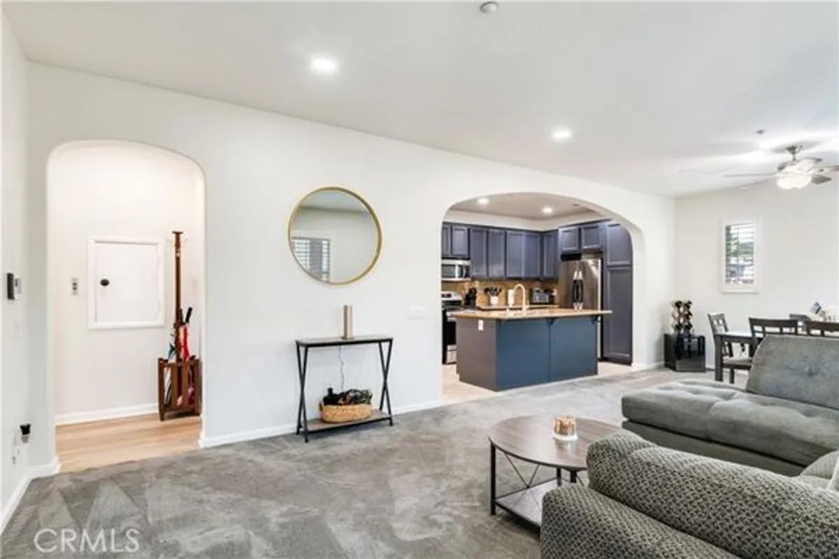 Welcome to a lifestyle of comfort, convenience, and community in this well-appointed 2-bedroom, 2-bathroom condo located in the desirable 55+ gated community of Owens Cove in Corona. Thoughtfully designed for easy, low-maintenance living, this move-in ready home offers a blend of modern finishes, accessibility, and resort-style amenities tailored to active adults. Step inside to an open and airy floor plan featuring a spacious living room, granite countertops in the kitchen, a breakfast bar, and a designated dining area. The primary suite boasts a large walk-in closet and private bath, while the second bedroom is perfect for guests or hobbies. Enjoy quiet mornings or afternoon breezes on your private patio. Additional highlights include in-unit washer/dryer, central HVAC, for year-round comfort attached 2-car garage, and interior location within the community. As a resident of Owens Cove, you will have access to secure gated entry and enjoy beautifully maintained grounds, a pool and spa, clubhouse, walking paths, and social opportunities—all designed with the 55+ lifestyle in mind. Conveniently located just steps from the Shops at Dos Lagos, golf, dining, movie theaters, and medical offices, and with easy access to the 91 and 15 freeways, you are never far from what you need.