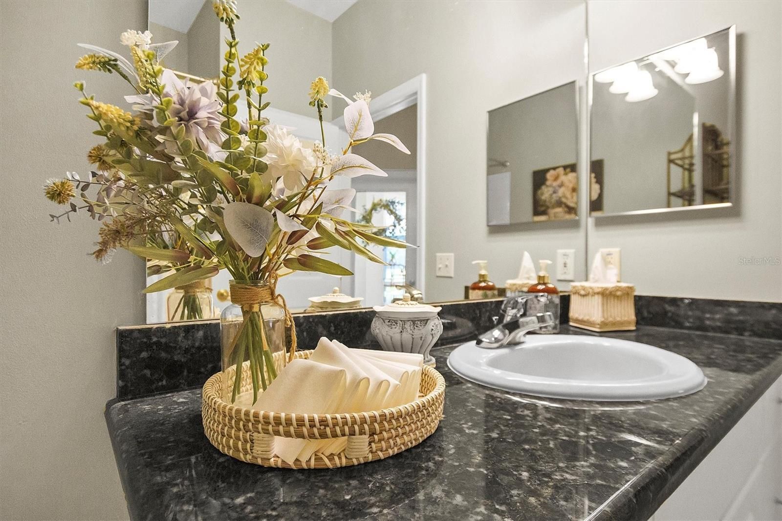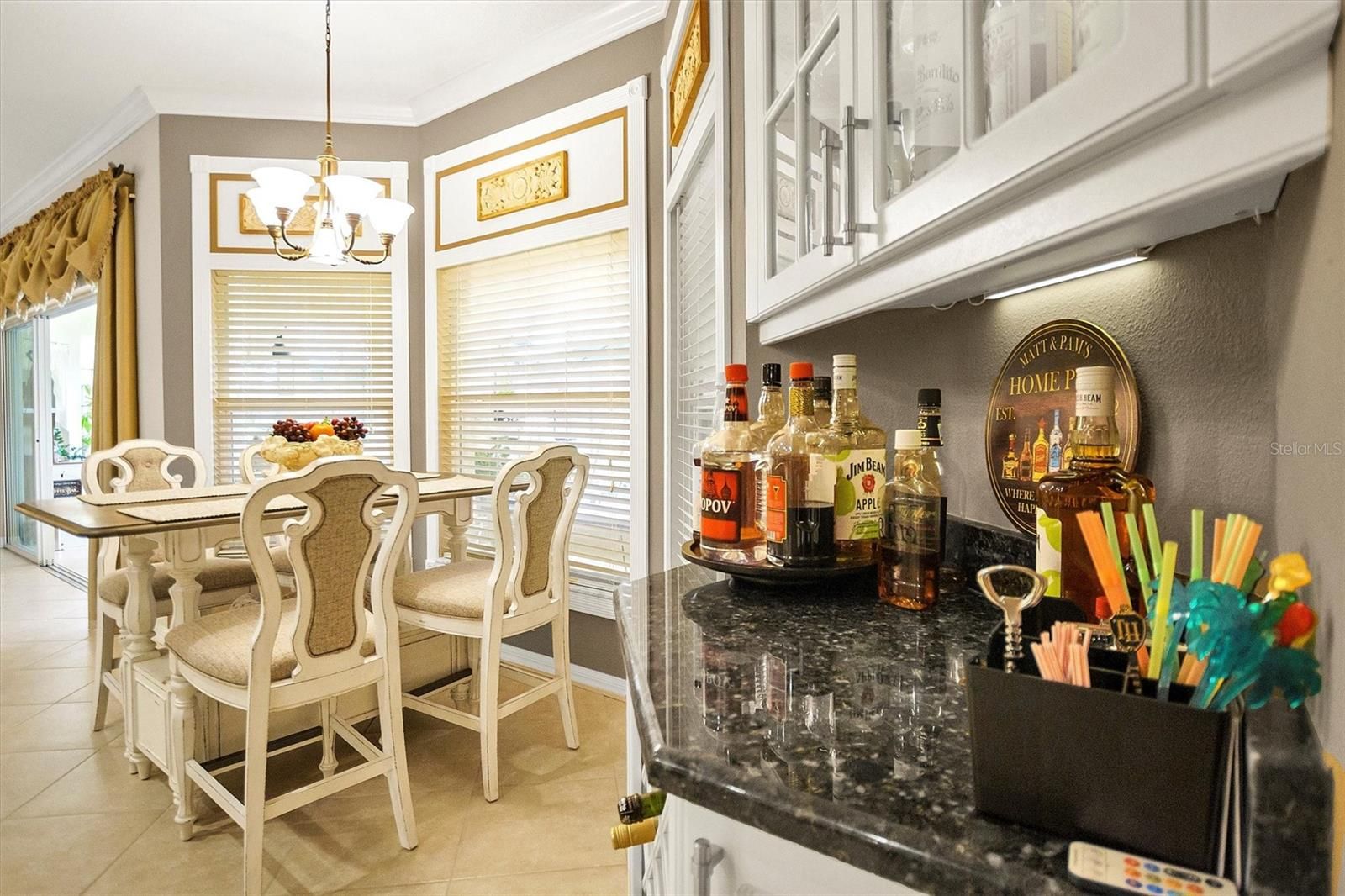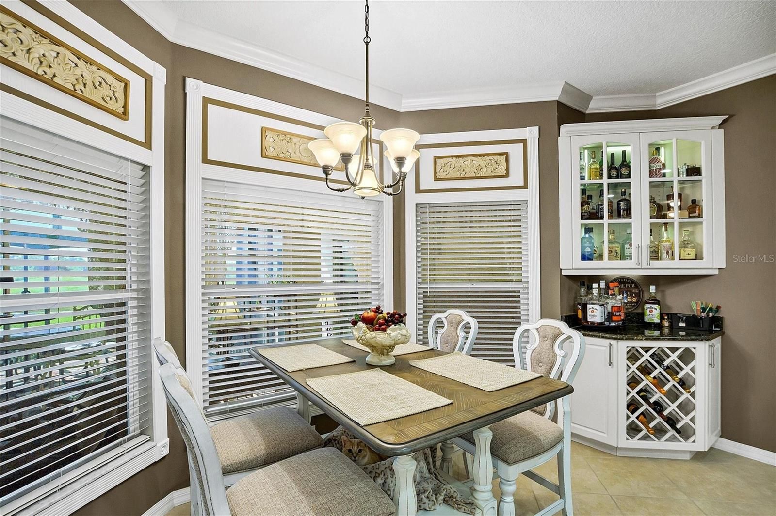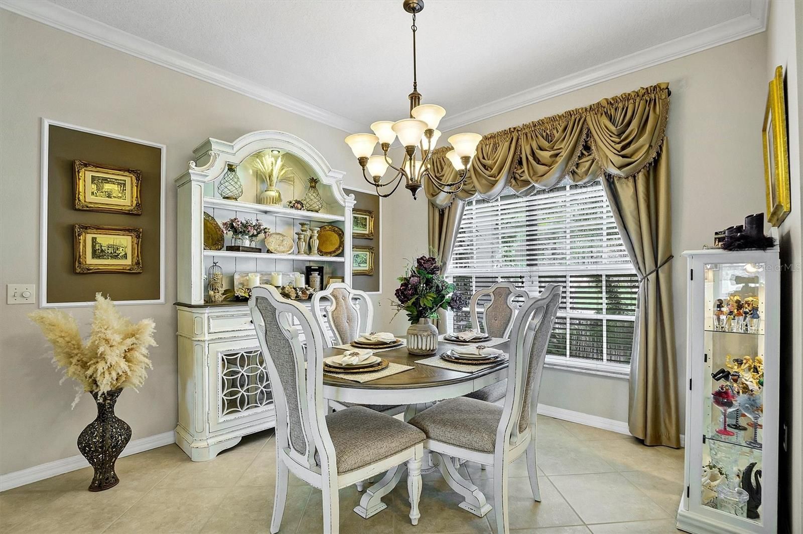 - Ceiling Fan(s), Crown Molding, Eat-in Kitchen, High Ceilings, Open Floorplan, Main Level Primary, Split Bedrooms, Stone Counters, Walk-In Closet(s), Window Treatments