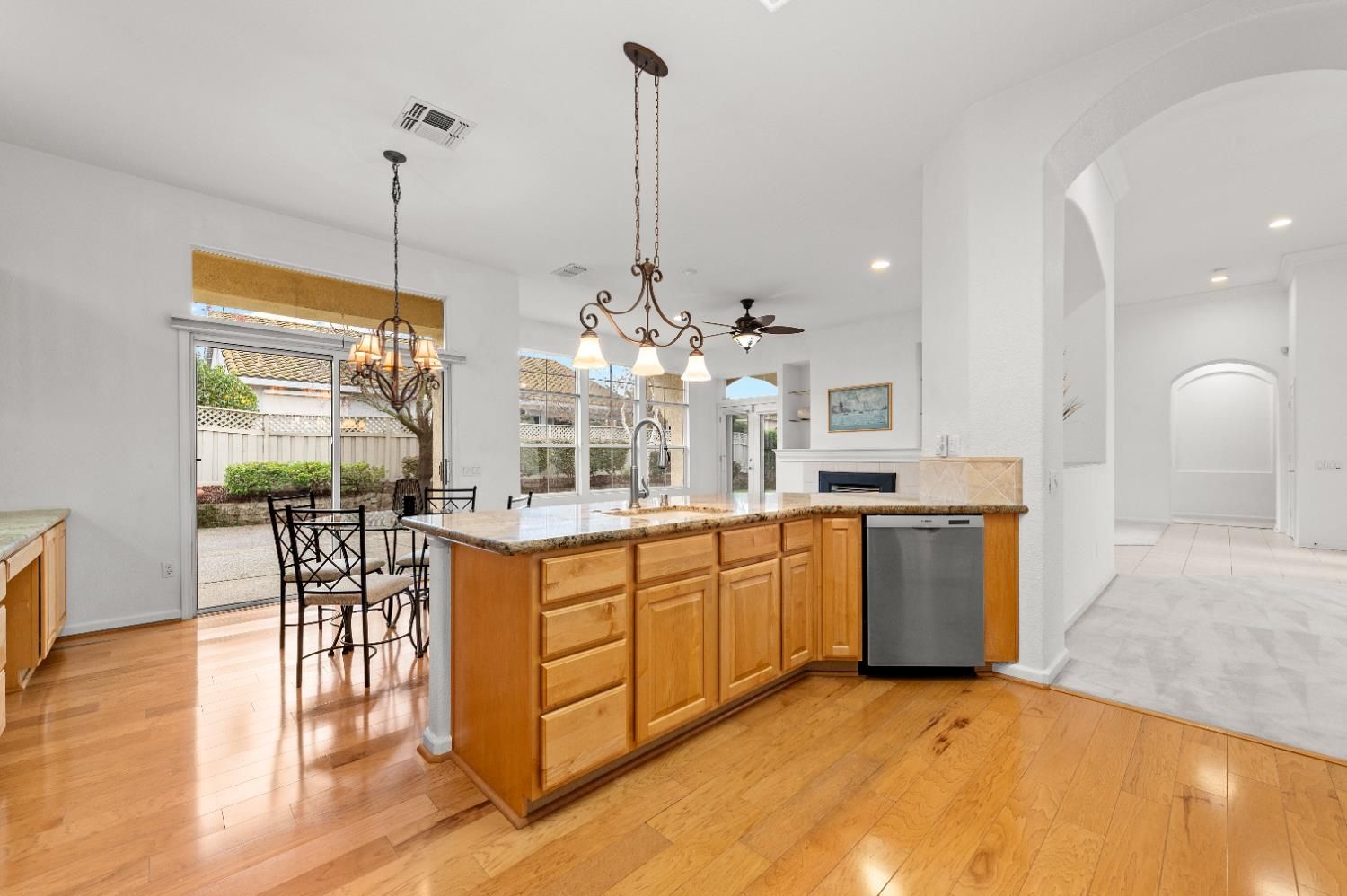 This well-appointed Hearthwood model in Sun City Roseville 55+ active adult community offers 3 bedrooms and 2.5 baths with a spacious and functional layout. The kitchen features granite countertops, abundant cabinetry, a pantry closet, and a sunny breakfast area, perfect for everyday living and entertaining. The family room is warm and inviting with a gas fireplace, complemented by a formal dining room and a separate living area for added flexibility. The large primary suite includes private outdoor access, double vanities, a soaking tub, a separate shower stall, and two closets. Secondary bedrooms share a convenient Jack-and-Jill bathroom. An indoor laundry room offers a utility sink and ample storage. The 2.5-car garage provides extra storage space and room to park a golf cart. A comfortable and thoughtfully designed home. Enjoy two golf courses, clubhouse, swimming pools, fitness centers, walking trails, and endless activities designed to keep you active and connected.