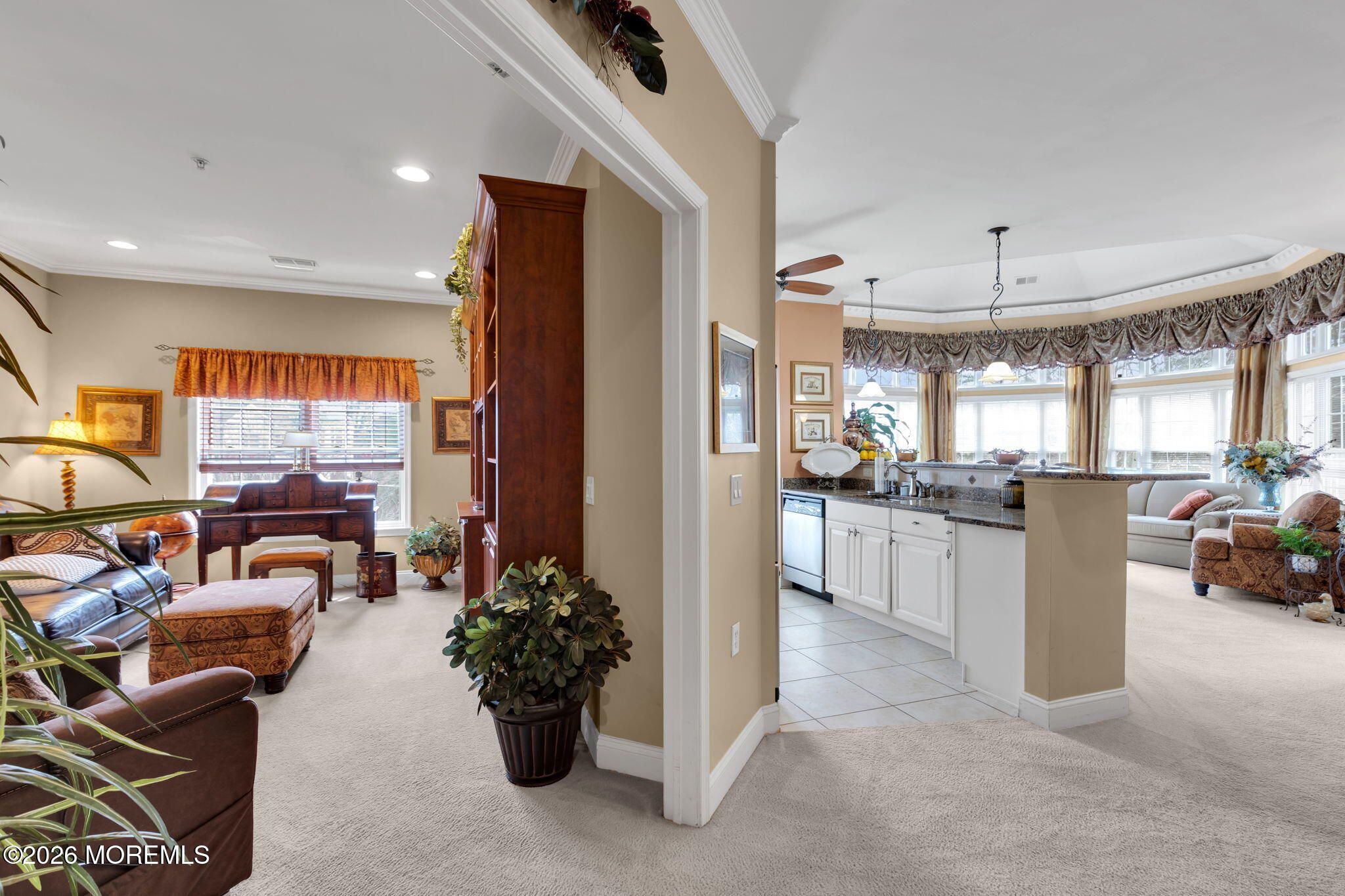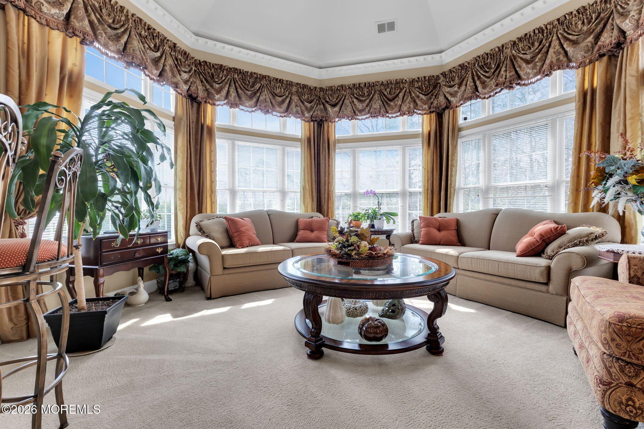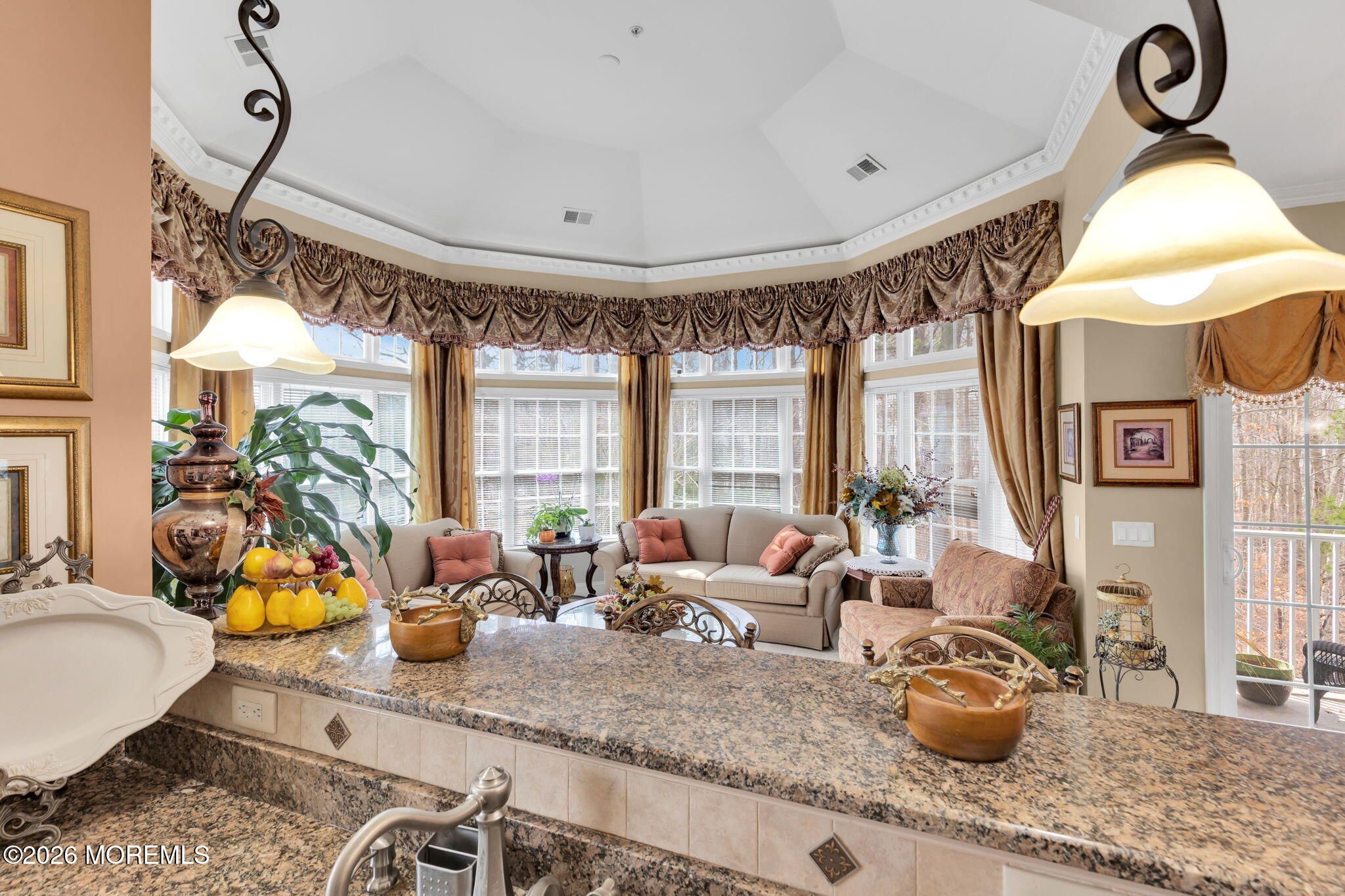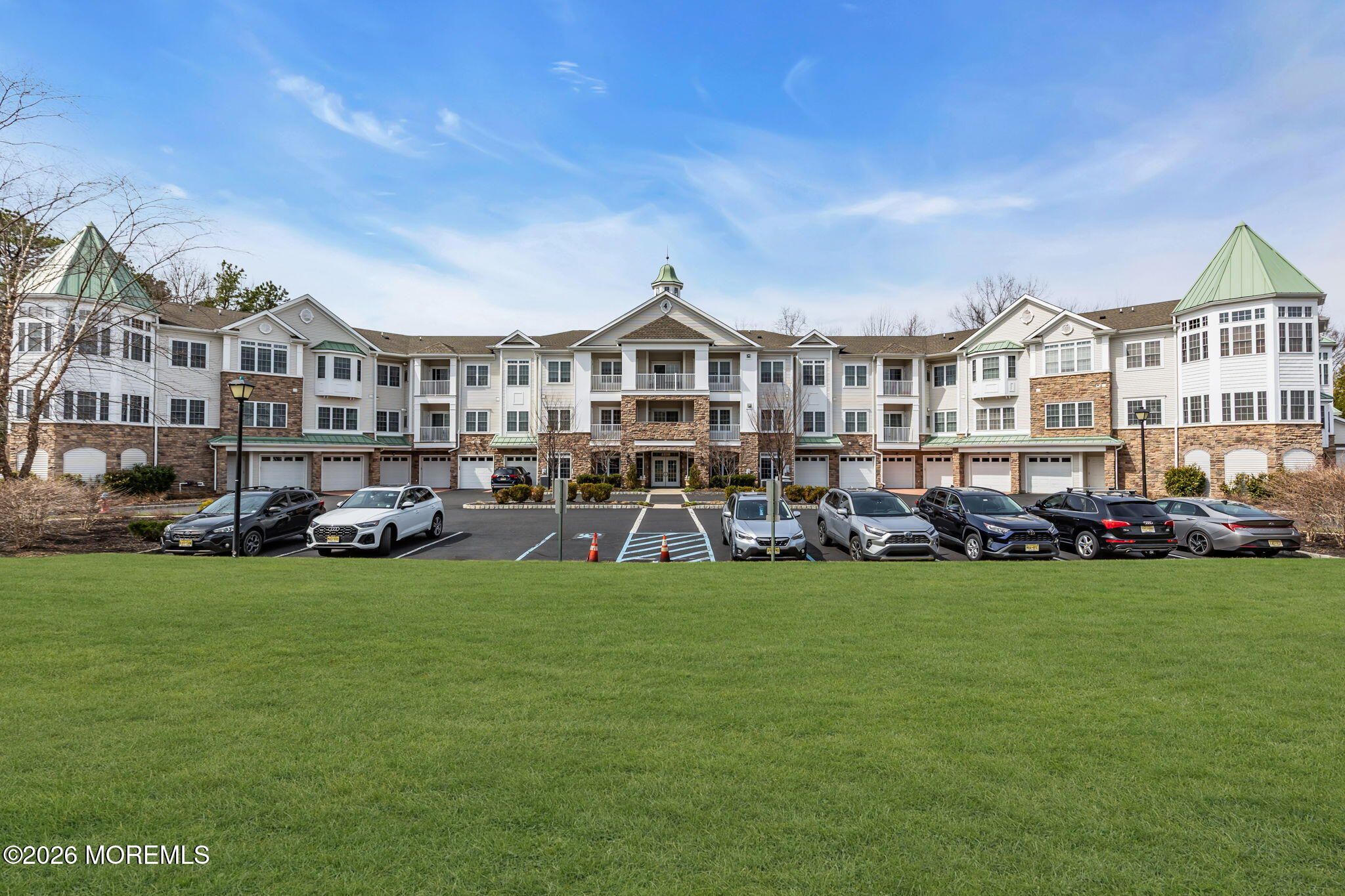Coming Soon !! Showings Begin 4/12/2026 Rare opportunity to own the highly sought after Harrington model in The Plaza Grande, One of the area's premier 55+ communities. This Exceptional third-floor corner residence offers a light-filled, open-concept layout, anchored by a dramatic octagon-shaped living room with a soaring domed ceiling and walls of windows that create a stunning architectural statement. The gourmet kitchen is beautifully designed with 42'' custom cabinetry, granite countertops, stainless steel appliances, and ceramic tile flooring, flowing effortlessly into an elegant dining area ideal for both refined entertaining and everyday living. The primary suite is a private retreat, featuring bay windows, crown molding, two oversized walk-in closets, and a spa-like bath complete with a soaking tub, glass-enclosed shower, and double vanity. A spacious guest bedroom and full bath provide comfort and privacy, while the versatile den or library offers the flexibility of a third bedroom, home office, or quiet retreat. The community's elevator buildings each offering their own game room and recreation room set The Plaza Grande apart, delivering an elevated lifestyle experience. This residence also features the added convenience of a direct-entry garage leading into a beautifully appointed private hallway.Enjoy resort-style amenities including a clubhouse, pool, tennis courts, fitness center, and more.Perfectly located just minutes from shopping, dining, and NYC transportation, this home delivers a seamless blend of luxury, comfort, and convenience. A refined lifestyle. This is the one!!