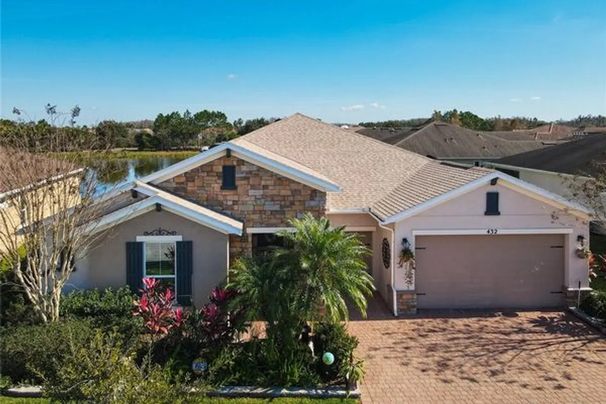 **PRICE IMPROVEMENT ALERT**Exquisite WATERVIEW POOL HOME**SIENA** with a LIMO GOLF CART(2023) INCLUDED in Solivita.This breathtaking, ONE-OF-A-KIND residence. is meticulously crafted to impress and intentionally designed to deliver that coveted “WOW” factor that will leave every guest speechless. Built in 2016, this MASTERPIECE DREAM HOME blends modern sophistication with true peace of mind. Its OPEN-CONCEPT DESIGN highlights UPSCALE finishes and thoughtful UPGRADES throughout. Step through the door and unveil 2,427 sq. ft. of luxurious interior living (3,382 sq. ft. total area)Featuring THREE spacious bedrooms, TWO full bathrooms, a powder room, and a FLEX ROOM perfectly suited for a home office, craft room, or private GYM. Striking EXTERIOR STONE ACCENTS deliver an instant feeling of exclusivity.Beautifully UPGRADED LANDSCAPING, complete with a vibrant FLOWER BED and elegant CURBING AROUND THE HOUSE, enhances the home’s appeal. An expanded TWO-CAR GARAGE plus a dedicated GOLF CART BAY. A grand hallway featuring a TRAY CEILING and striking leaded glass door establishes an atmosphere of elevated living. The CUSTOM ENTRY CABINET adds both beauty and convenience, serving as a perfect drop zone. Additional EXTERIOR LIGHTING enhances both curb appeal and nighttime visibility. The GOURMET KITCHEN highlights an OPEN LAYOUT with a BREAKFAST BAR, SOFT-CLOSE CABINETRY, UNDER-CABINET LIGHTING, stylish PENDANT LIGHTS, An Insta-Hot system newly installed, and a spacious WALK-IN PANTRY with newly designed and installed PANTRY CABINETS.Versatile BREAKFAST NOOK offers the perfect spot for a wine bar or workspace. Premium STAINLESS-STEEL appliances elevate the space, complemented by a NEW BOSCH DISHWASHER, GE CAFE Profile refrigerator, TOP OF THE LINE GE microwave, and 2024 INDUCTION COOKTOP. A beautifully added BACKSPLASH enhances both the kitchen and the island. The adjoining dining room comfortably accommodates a six- to eight-person table.The OWNER’S SUITE offers a spacious private retreat, featuring TWO WALK-IN CLOSETS, an adjoining FLEX ROOM ideal for an office, den, study, or craft space, and an elegant EN-SUITE BATHROOM with DUAL SINKS, a FRAMELESS GLASS WALK-IN SHOWER, and a built-in bench for added comfort. All bedrooms received updated paint, new flooring, and custom closet organizers in 2024, along with updated light fixtures throughout. Every bathroom has been enhanced with newly refreshed cabinetry, creating a modern, unified feel. The resort-style POOL and SPA, set within the EXTENDED, COVERED and SCREENED LANAI with inviting spaces for both relaxation and entertaining, complete with ceiling fans. CENTRAL VACUUM system. The LAUNDRY ROOM shines with BRAND NEW-2024 APPLIANCES and CUSTOM-BUILT CABINETRY. A TOP-TIER LENNOX AIR HANDLER was installed in February 2024, ensuring comfort and efficiency.The property also boasts 16 **PAID-OFF** SOLAR PANELS, two solar tube lights, a NEW 2024 WATER SOFTENER, and a FULL INTERIOR REPAINT completed in 2024. All light switches in the living room, hallway, and kitchen have been upgraded to dimmable switches for enhanced ambiance and control. Both primary bedroom closets were elevated with tile backsplash, upgraded lighting, and elegant chandeliers. The laundry room also features a new tile backsplash for a refined, cohesive look. Additional upgrades include a smart lock at the front entry, a Ring camera, and new gutters and downspouts installed in 2024.