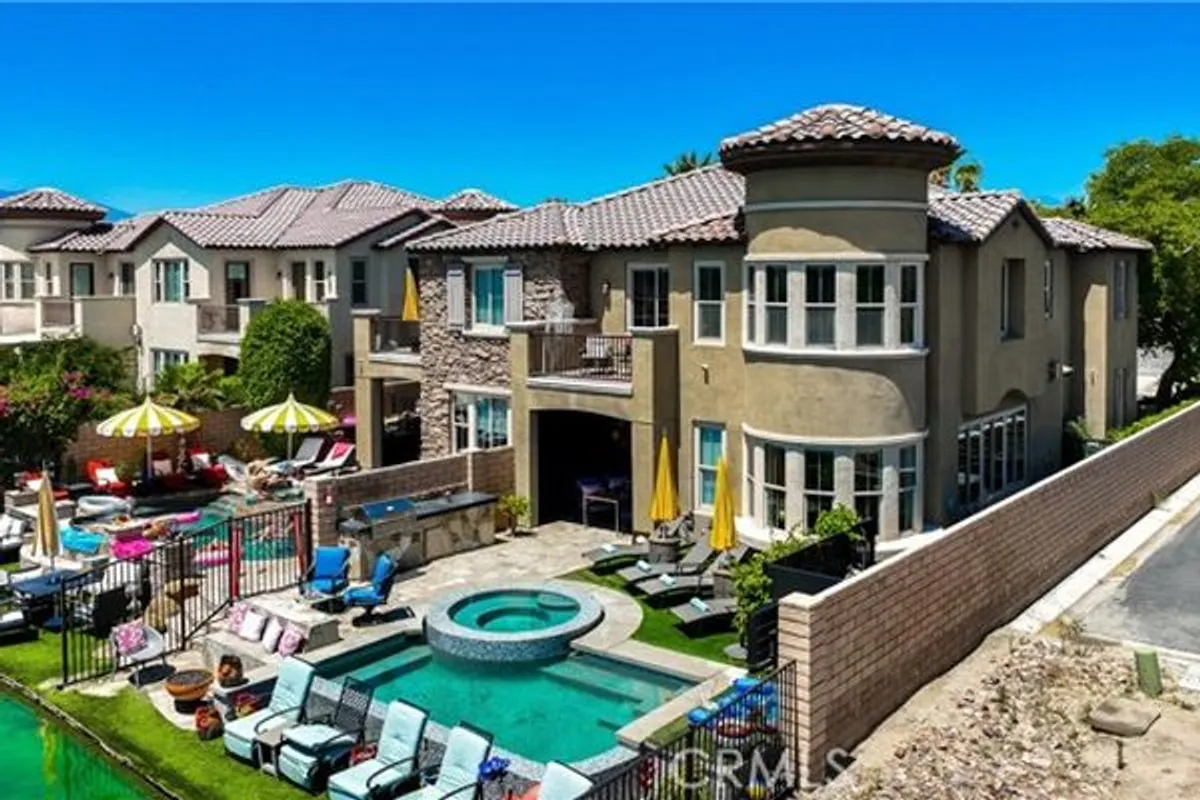 Stunning 4 bedroom 3 bath home with breathtaking lake & mountain views. This home features the largest floor plan in the community with one of the largest lots. The backyard is an oasis with a newer salt water pool with an Infinity Edge Spa. Entertain your guests with the custom built BBQ & firepit, enjoying the cool breeze under any of the multiple seating areas. Commercial-grade misters & artificial turf make this backyard the perfect place to be all year round. The interior features brand new flooring, newer modern furnishings & custom paint with sparkling crystals that exudes an ultra-luxury feeling. This home has over $200K in recent upgrades. The garage has 2 EV charges for added convenience to your guests. This home is ideal for personal living as well as having great passive income through Airbnb. Seller states that passive income ranges from $10-15,000 per month which includes costs of current management fees. If the buyer self manages the rentals, can make approximately 30% more income. Since March 2025, seller has not had one weekend not rented This is one of the most wanted properties in the desert community. Terra Lago is a friendly community that's located just minutes from the festivals. All furniture, appliances, new pool table & ping pong table are included in the sale.