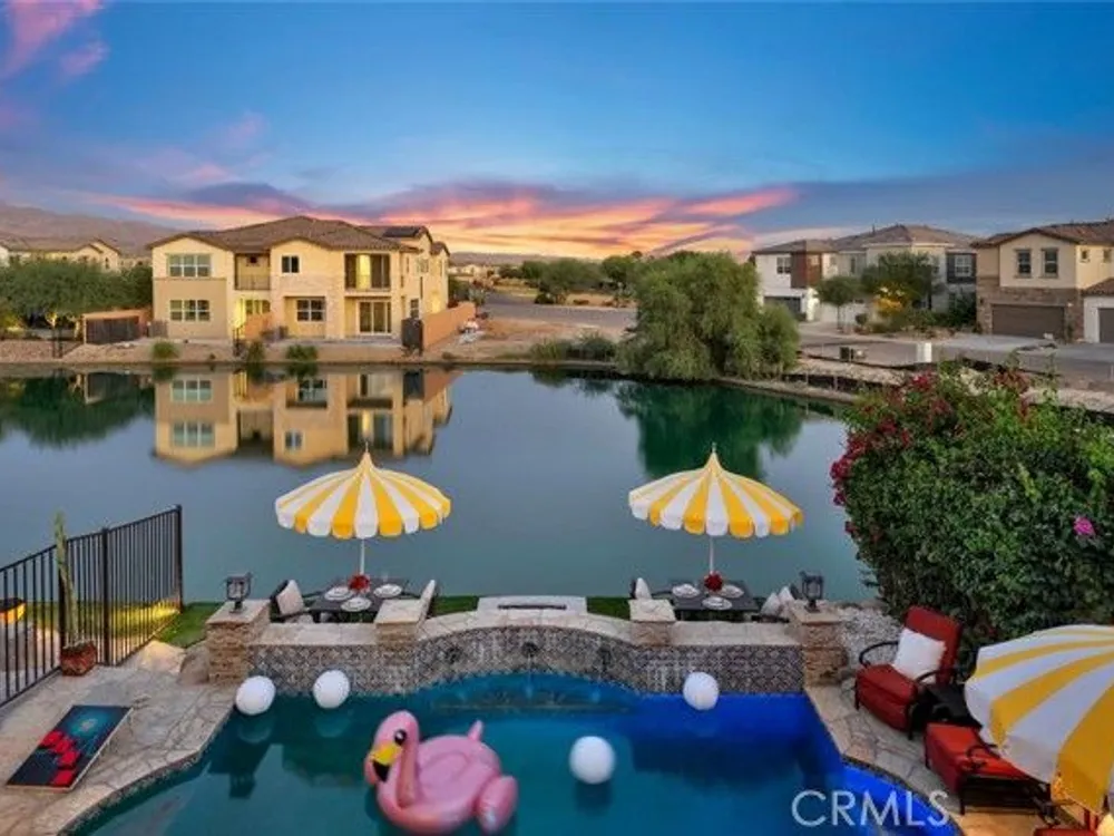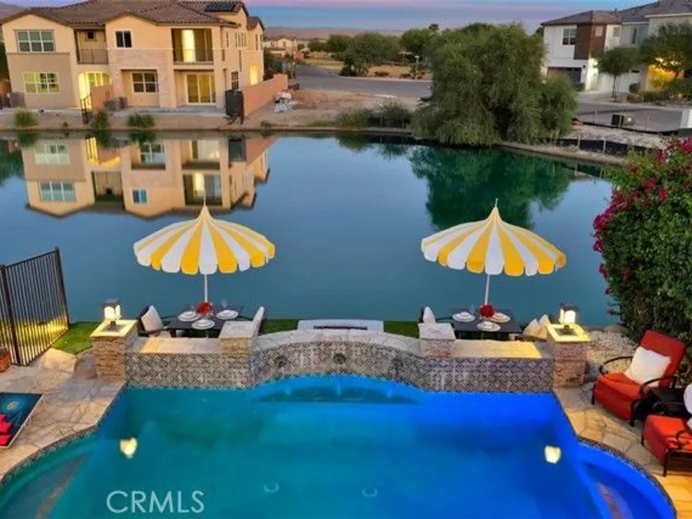 Welcome to 43240 Bacino Court, Indio, CA 92203! Discover luxury living and proven investment potential in this stunning 2-story, 3-bedroom, 3-bathroom lakefront home located in the highly desirable Terra Lago gated community. With 2,157 sq. ft. of beautifully upgraded interiors and exceptional outdoor amenities, this residence is perfectly designed for both personal enjoyment and vacation rental success. Step outside to your own private oasis, featuring a custom saltwater pool and spa, outdoor misters, fire pit, built-in barbecue, covered TV lounge, and spacious dining areas, all set against beautiful lake and mountain views. Inside, the home is equally impressive with a built-in bar, laundry room, a new $14K HVAC system, $3.5K in upgraded pool equipment, new dishwasher, and a $6K custom TV wall. Nearly all furniture (valued at $7K) is included, making this a move-in or rental-ready opportunity. The master suite offers a master bathroom , a walk- in closet, a vanity hallway, and its own private patio overlooking the lake, while the oversized garage and driveway comfortably accommodate up to four vehicles. Currently operating as a successful turnkey short term rental business with $154K in revenue since February 2024. Future bookings are transferable if buyer chooses to stay with same property management company. The property features 6 beds, and can accommodate 10 guests. Additional highlights include a separate $35K arcade/game room with pool table and air hockey (available for purchase separately). Nestled next to the renowned Terra Lago Golf Course, this property offers the rare combination of serene lakefront living, resort-style amenities, and strong short-term rental income—making it an ideal choice as both a private retreat and an income-generating investment.