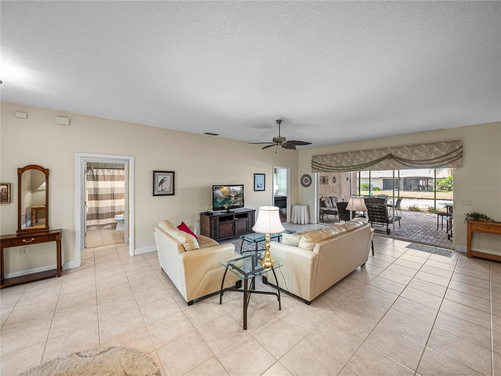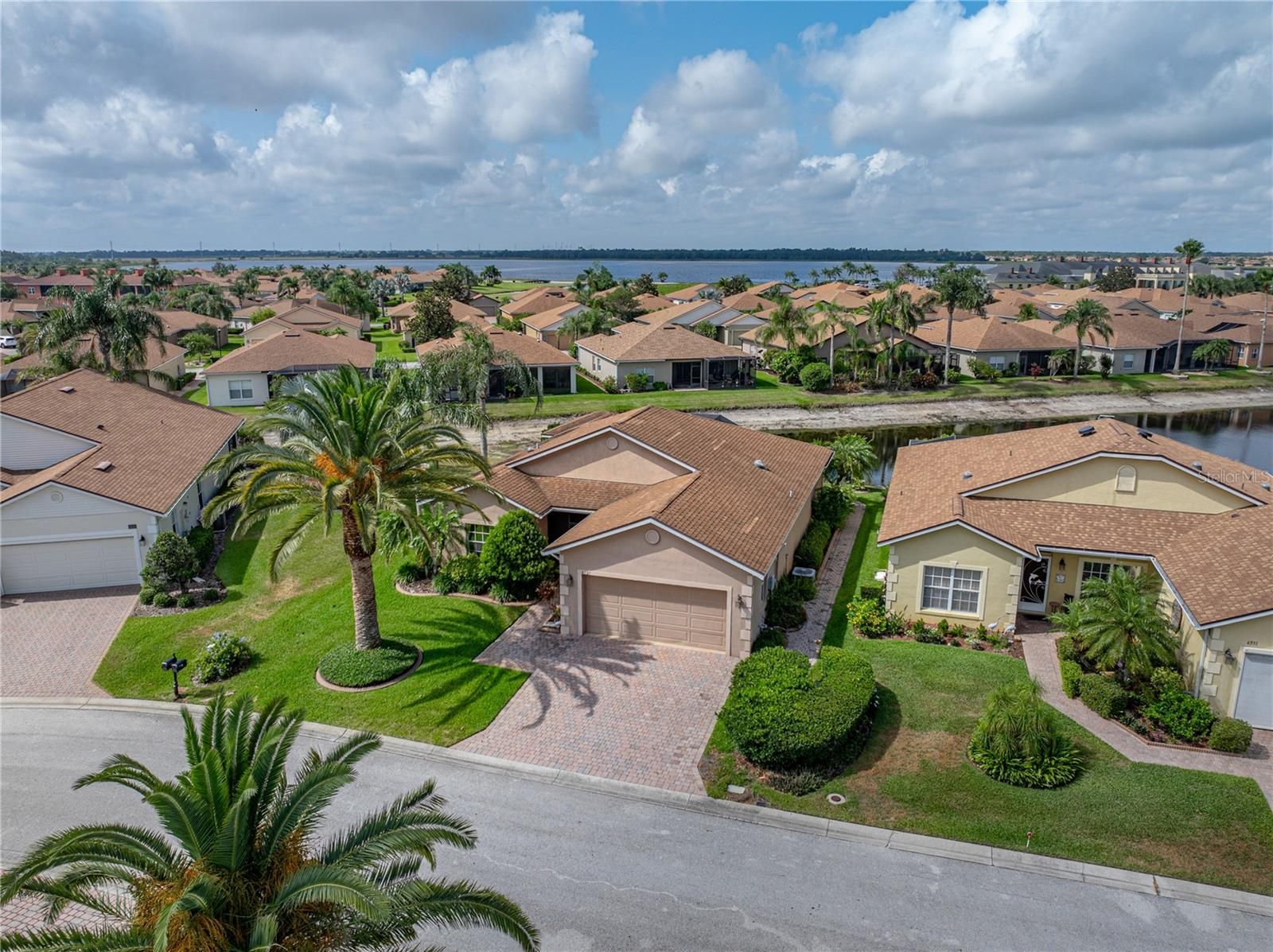 You don't want to miss out on acquiring this expanded BALI floor plan home with two bedrooms, two bathrooms, a den/home office, and a special craft room. This highly upgraded and move-in-ready home is located on a pond-frontage lot close to many of the amenities Lake Ashton Golf Club offers its residents. As you arrive, the outstanding curb appeal grabs your attention. The paver walks and drive, the quality planting, and the stately palms enhance the beauty of this home. Decorative concrete edging defines the landscape beds. The widened paver drive leads to an expanded front walk and a separate paver walk extending to the home's rear. The screened front entrance adds security and makes cross ventilation a breeze. The beautiful leaded glass double front doors provide natural light to the welcoming foyer. Upon entering, the openness of this home's floor plan comes into view. The large great room is the central focus with the other spaces as complements. The living room features a ceiling fan and a triple slider that opens to the expanded covered and birdcage screened lanai. The west wing holds the kitchen, den, dining area, and attached 2-car garage. The kitchen has granite counters, glass backsplashes, white appliances including a newer French door refrigerator with ice/water in the door, solar tube for natural light, and upgraded wood cabinetry with 42" uppers and crown, quiet close doors and drawers, designer pulls, deep double sink, and faucet with pullout sprayer. The kitchen also has a closet pantry and the laundry closet with additional cabinetry. The washer and dryer stay with the new owners. The kitchen's handy snack bar offers a place for those casual meals. Adjacent to the kitchen is the dining area. Behind the dining room is the den/home office with its double window and ceiling fan. The attached 2-car garage is accessed from the kitchen. The garage has built-in storage closets, a pull-down attic ladder, a service door, an insulated garage door, a window, and a garage door opener. The east wing holds the guest and primary bedroom suites. The guest suite is at the front of the home, with a ceiling fan, light, and a reach-in closet. The adjacent guest bath has a combination tub/shower with custom ceramic tile surround, elevated wood vanity with cultured marble top, solar tube for natural light, and a linen closet. The guest suite can be isolated from the rest of the home by the handy pocket door. The primary suite has a large bedroom, two walk-in closets, and a ceiling fan. The primary bath has an elevated wood vanity with two sinks in a cultured marble top, a window, a designer ceramic tile stall shower, and a linen closet. Upgraded lighting and plumbing fixtures are in both baths. But what separates this home is the hobby/craft room accessed from the lanai. This well-lit craft room has cabinetry and counterspace and is a great place to just "craft and hobby" to your heart's delight. The covered and birdcage areas of the lanai have paver flooring. The lanai area is perfect for enjoying the pond view directly behind. A partially covered open outside patio is adjacent. This home has many special features throughout. All the interior floors are ceramic tile or ceramic faux wood planking. Designer touches are everywhere. The furnishing of this ready to move in home are available. With an appropriate offer, this could be a turnkey transaction. Lake Ashton is Central Florida's premier 55+ active adult gated and guarded community.