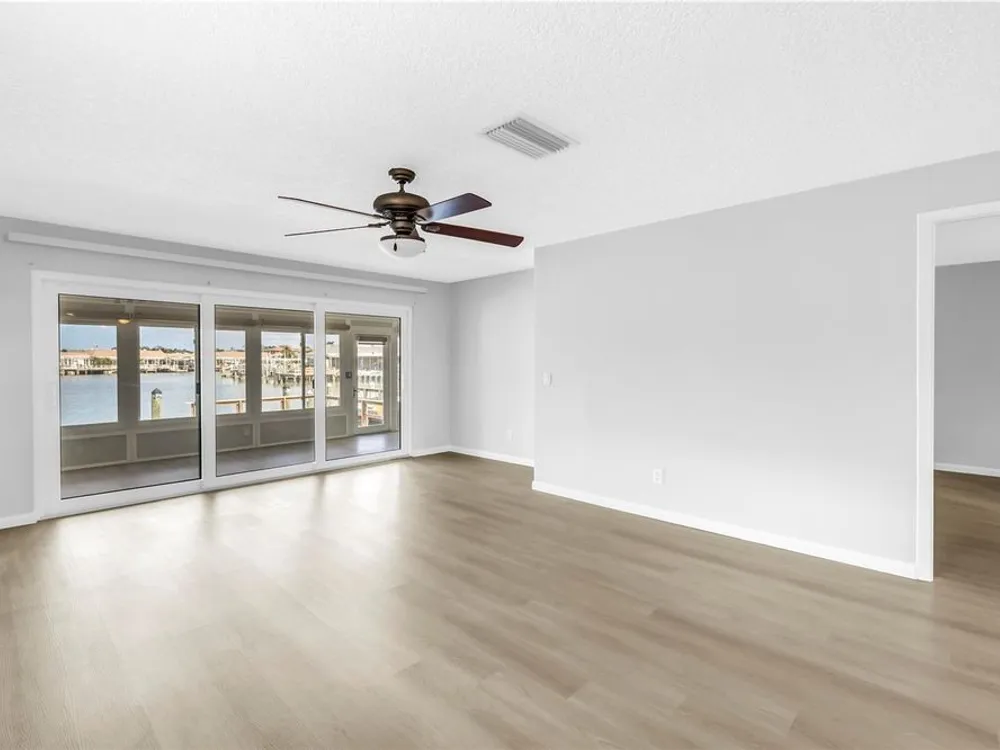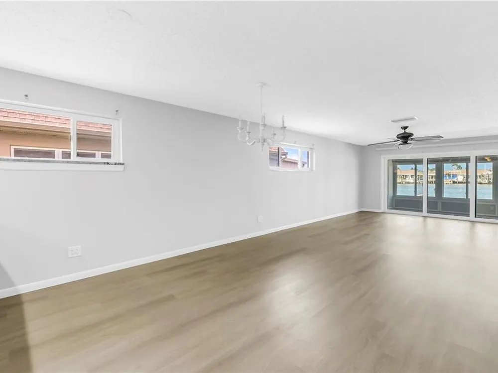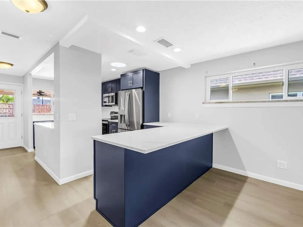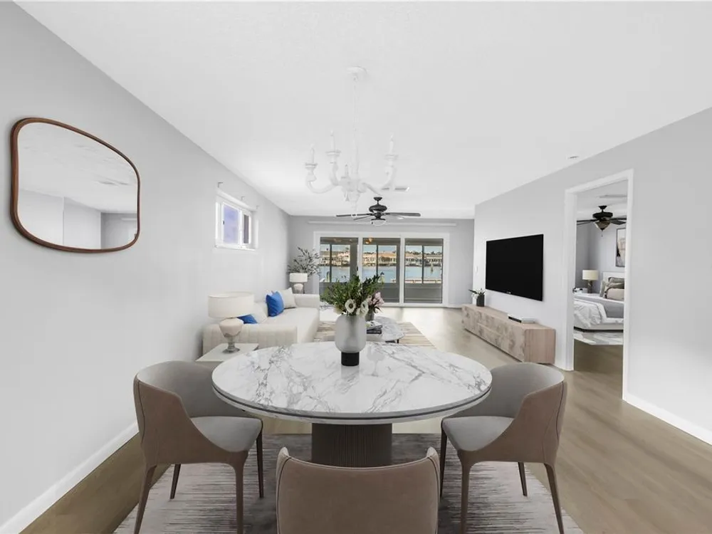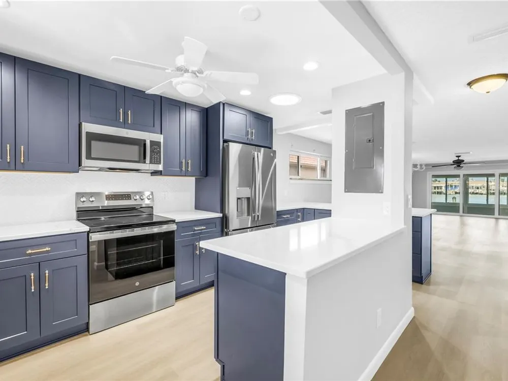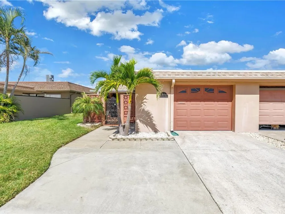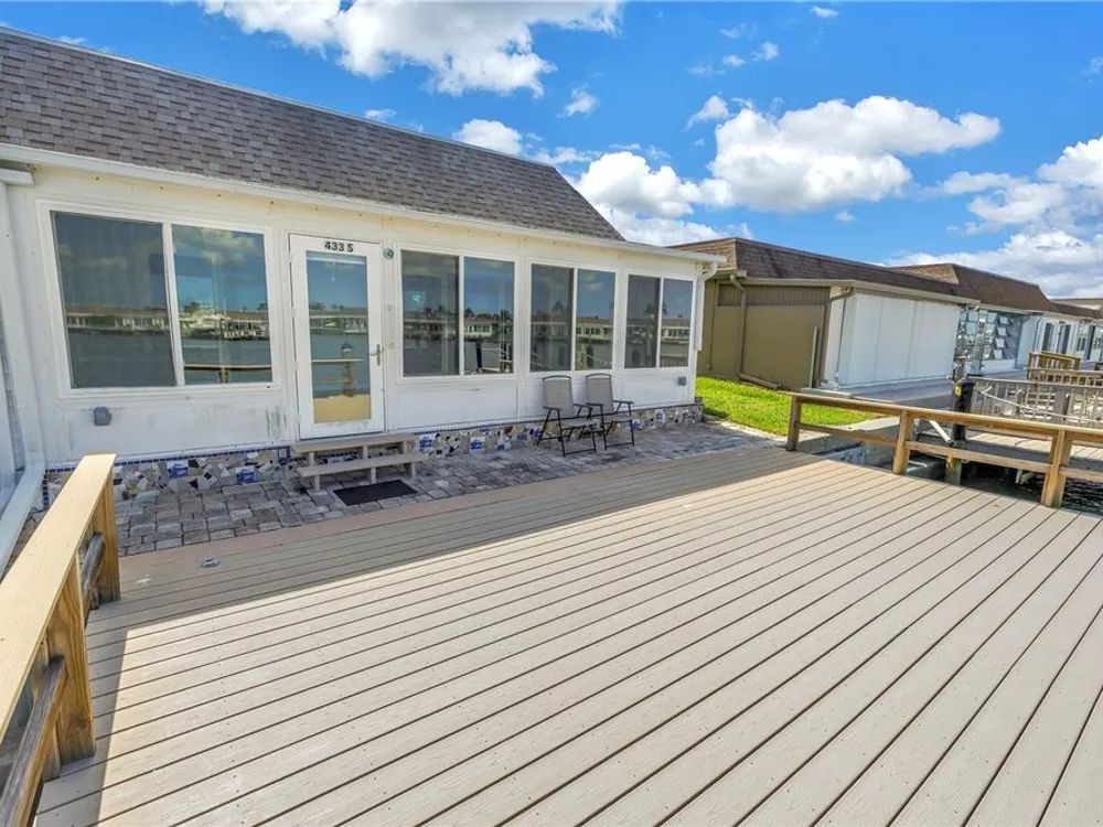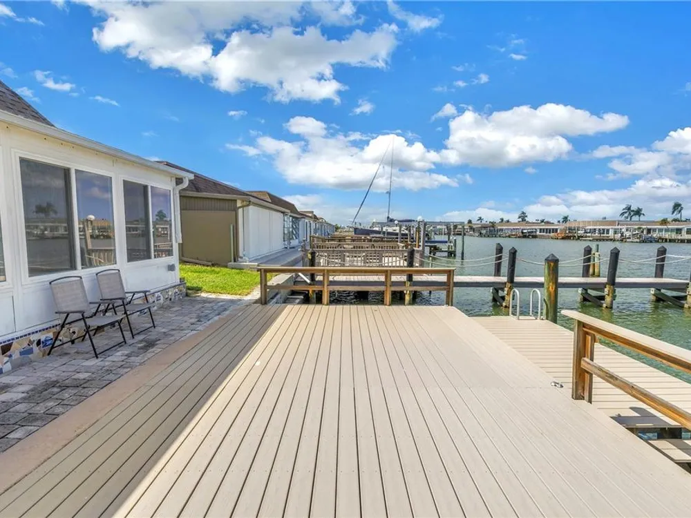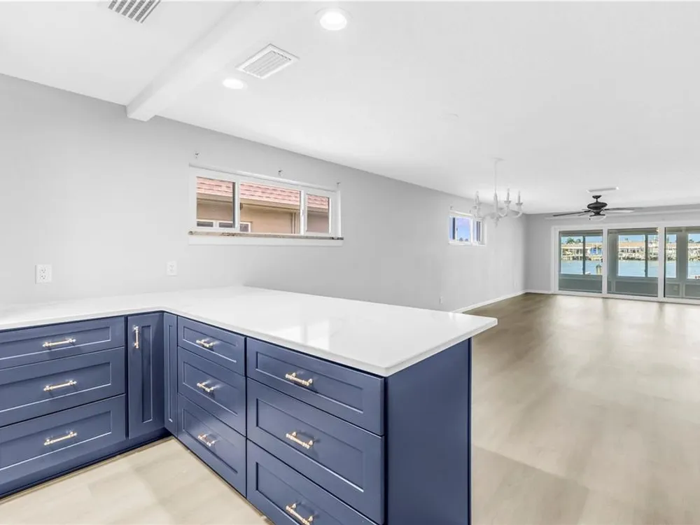 One or more photo(s) has been virtually staged. Welcome to Boca Ciega Point East, the hidden gem of 55+ waterfront living in beautiful Saint Petersburg! This stunning 2-bedroom, 2-bath end-unit villa is fully remodeled and move-in ready with over 1,400 sq ft of heated/cooled space and an oversized 1-car garage. Boasting luxurious wood-tone vinyl flooring, this home showcases designer touches from top to bottom. The kitchen is a showstopper with gorgeous blue wood cabinetry, sleek quartz countertops, gold hardware, stainless steel appliances, and an open layout that flows seamlessly into the dining and living areas. Natural light pours in through extra end-unit windows and glass sliders leading to both a private front patio and a huge back deck with boat dock. Enjoy sunset views, dolphin sightings, and fishing right from your backyard! The primary suite offers deck access, a large walk-in closet, and a luxurious en-suite bath featuring a quartz vanity, subway-tiled walk-in shower, glass doors, and penny-tile flooring. The second bedroom, located at the front of the home, provides direct access to the front patio—ideal for guests or a home office. Enjoy year-round resort-style amenities including a heated/cooled pool, tennis, pickleball, shuffleboard, and bocce courts. Two clubhouses are being fully renovated—one ready for social events by the end of October, and the other with a library, gym, and office space ready by November. Boca Ciega East is a gated, secure community, offering peace of mind and an active, social lifestyle. Don’t miss this rare opportunity to own a waterfront villa with boat access in a vibrant intracoastal community. Whether you're a full-time resident or a seasonal snowbird, this is Florida living at its finest!