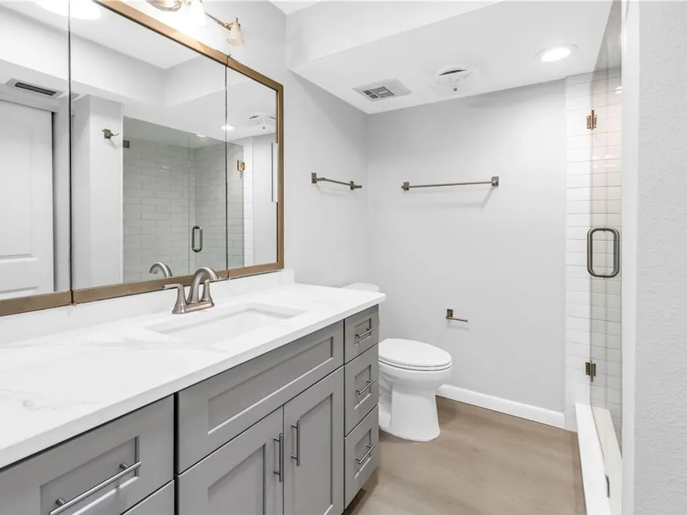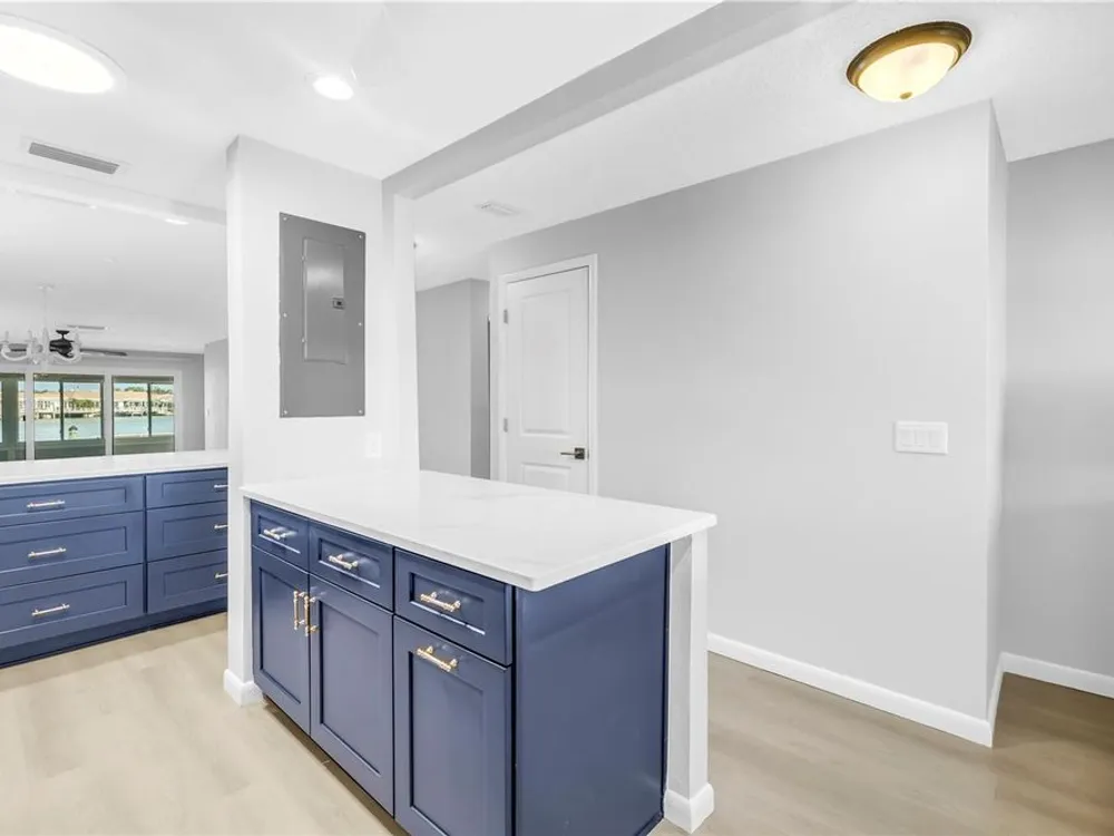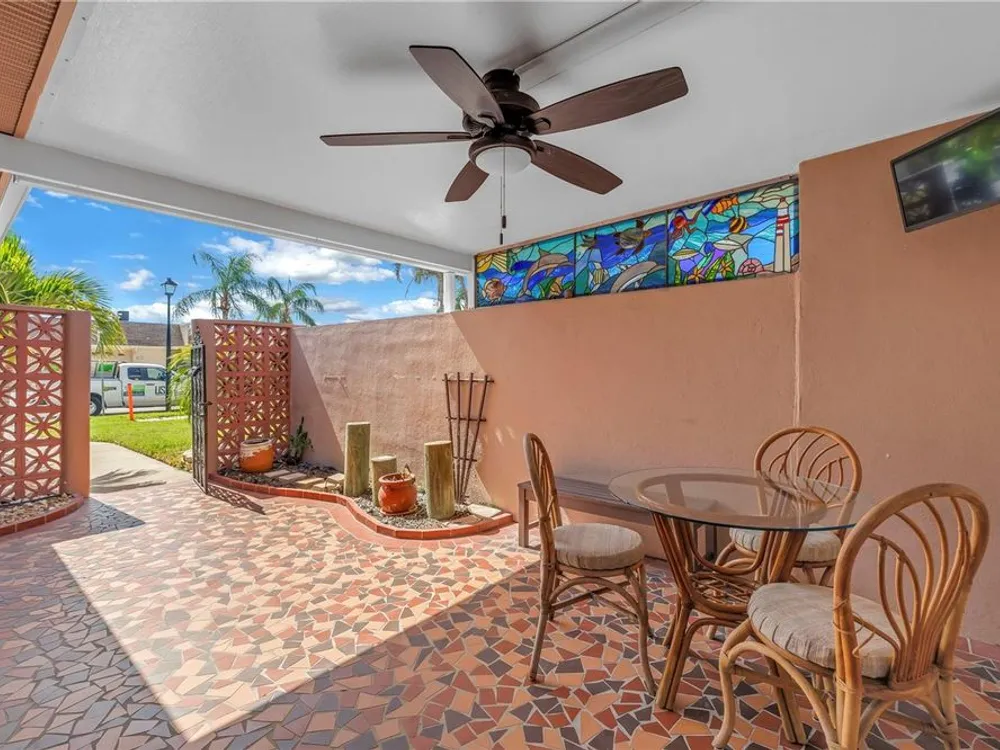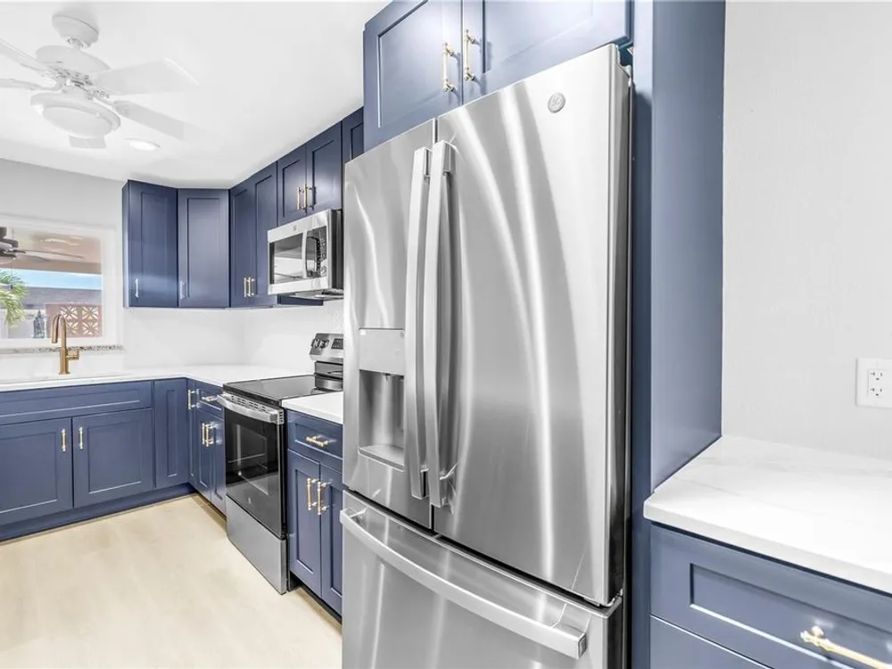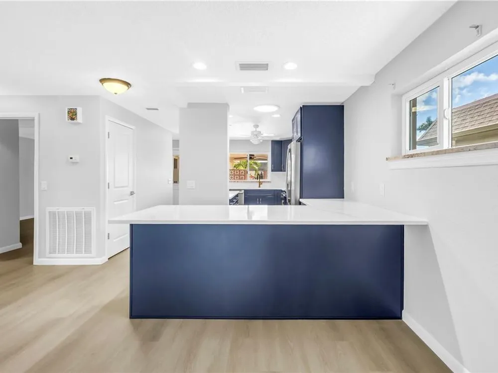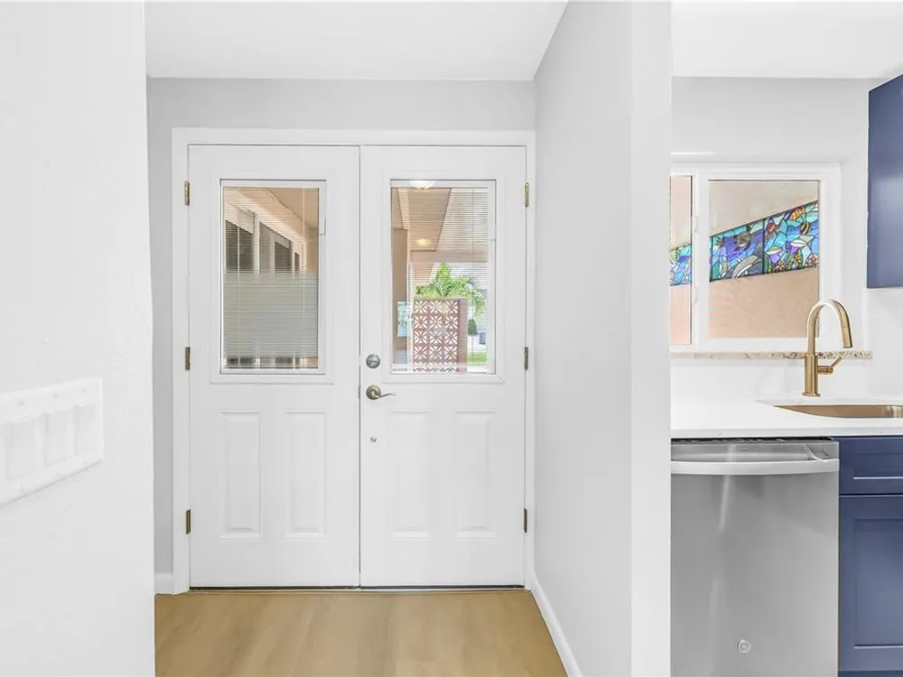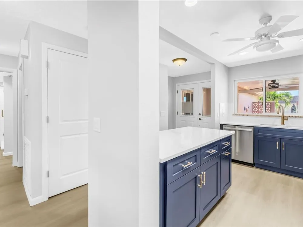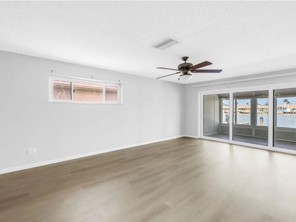 One or more photo(s) has been virtually staged. Welcome to Boca Ciega Point East, the hidden gem of 55+ waterfront living in beautiful Saint Petersburg! This stunning 2-bedroom, 2-bath end-unit villa is fully remodeled and move-in ready with over 1,400 sq ft of heated/cooled space and an oversized 1-car garage. Boasting luxurious wood-tone vinyl flooring, this home showcases designer touches from top to bottom. The kitchen is a showstopper with gorgeous blue wood cabinetry, sleek quartz countertops, gold hardware, stainless steel appliances, and an open layout that flows seamlessly into the dining and living areas. Natural light pours in through extra end-unit windows and glass sliders leading to both a private front patio and a huge back deck with boat dock. Enjoy sunset views, dolphin sightings, and fishing right from your backyard! The primary suite offers deck access, a large walk-in closet, and a luxurious en-suite bath featuring a quartz vanity, subway-tiled walk-in shower, glass doors, and penny-tile flooring. The second bedroom, located at the front of the home, provides direct access to the front patio—ideal for guests or a home office. Enjoy year-round resort-style amenities including a heated/cooled pool, tennis, pickleball, shuffleboard, and bocce courts. Two clubhouses are being fully renovated—one ready for social events by the end of October, and the other with a library, gym, and office space ready by November. Boca Ciega East is a gated, secure community, offering peace of mind and an active, social lifestyle. Don’t miss this rare opportunity to own a waterfront villa with boat access in a vibrant intracoastal community. Whether you're a full-time resident or a seasonal snowbird, this is Florida living at its finest!