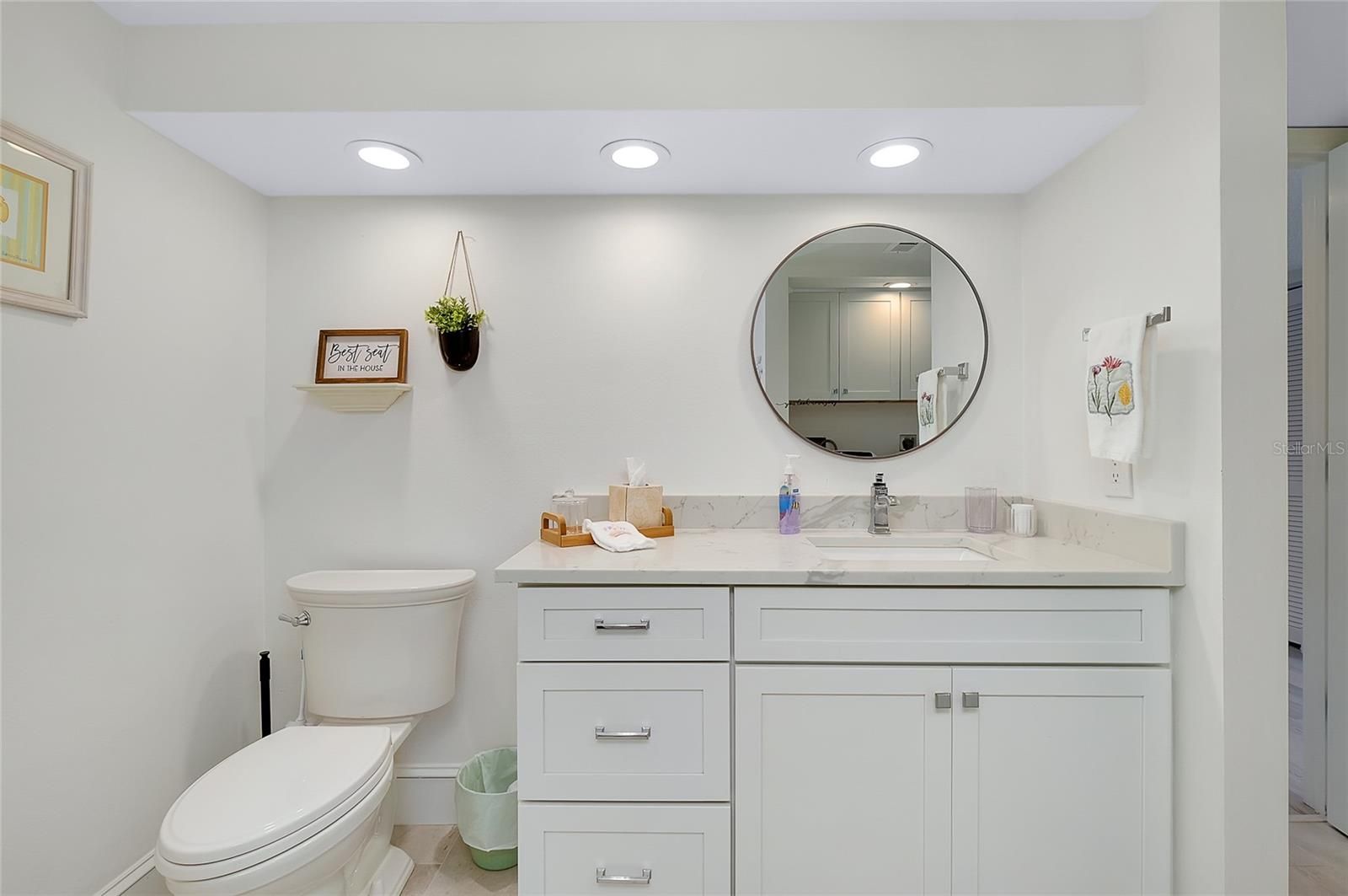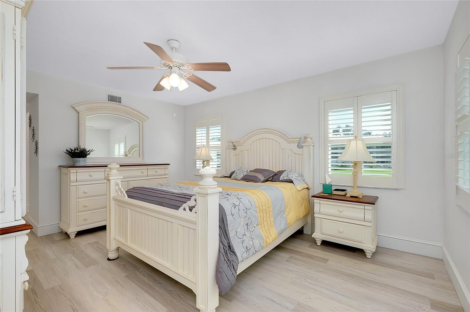 Don’t let this one slip by! This exceptionally renovated, tastefully furnished, and true turnkey residence delivers the Florida lifestyle you’ve been dreaming about. One of the largest floor plans in the community, this 3-bedroom beauty checks every box: in-unit laundry, abundant closet space, and spectacular lake and Bobcat Trail golf course views right from home. Step into the stunning 2022 kitchen remodel — complete with stainless steel appliances, soft-close cabinetry, quartz countertops, a charming garden window, and even hidden toe-kick storage drawers (yes, they’re as cool as they sound). Hosting is a breeze with the open dining-to-living layout designed for seamless entertaining. Both bathrooms received a top-to-bottom upgrade in 2023, featuring premium cabinetry and quartz finishes to match the kitchen. Flooring has been smartly updated as well: ceramic tile in the kitchen and baths and luxury vinyl in living areas — all highlighted by sleek 6” modern baseboards. Impact-resistant windows installed in 2024 provide peace of mind and are dressed with timeless plantation shutters. Outdoor living? Absolutely covered — literally. The spacious lanai features a 2023 Storm Smart hurricane screen, turning the space into your favorite year-round retreat, rain or shine. Major systems are already handled for future comfort: Hot water heater (2020), • A/C (2023), Building exterior painted (2022), Metal tile roof replaced in 2024. Your designated carport includes an attached exterior storage shed — perfect for beach gear, golf clubs, tools and toys — and yes, the shed’s refrigerator stays, so grab a cold drink on your way to the pool. Bottom line? This is a beautifully updated, worry-free, live-in-style home in a prime Florida setting. Just unpack… and start loving life.