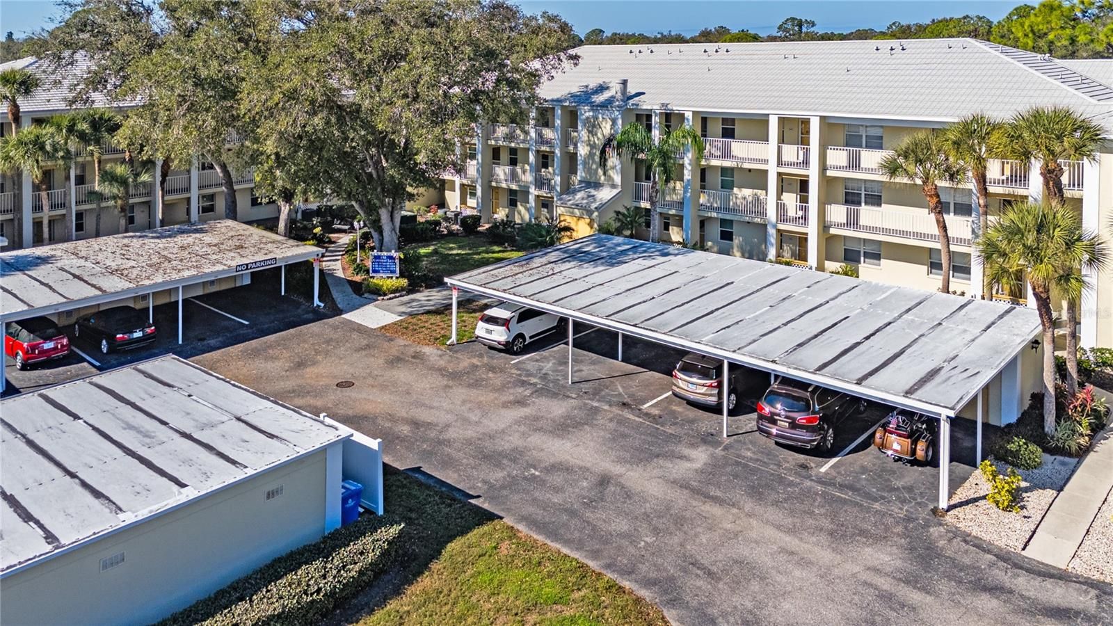 **Resort-Style Living, Top-Floor Condo, Convenient Elevator Access** Beautifully updated and move-in ready, this top-floor condo in Plantation Golf & Country Club offers sweeping golf course views and vibrant sunsets from its private lanai. Located in sunny Venice, Florida, this well-maintained Farmington Vistas building is surrounded by lush green space, mature trees, and abundant wildlife. Once at the entrance a lockable glass storm door welcomes you inside, where high ceilings and plank-style laminate flooring create an open, airy feel throughout the main living area. The well-appointed kitchen includes granite countertops, a Travertine backsplash, stainless steel appliances, Shaker cabinetry with soft-close drawers, plus pull-out shelves and pantry storage—designed for effortless everyday living. Double doors lead to the spacious primary ensuite, complete with a large window, French door to the lanai, ample closet space, and a beautifully updated bathroom with dual vanities, a walk-in shower with tempered glass, and a full-size stacked washer and dryer. The guest bedroom and adjacent full bath are ideally positioned near the entrance, offering privacy for your guests. Whether you’re lounging at the community pool only moments from your door or enjoying the serenity of your top-floor retreat with enhanced privacy and sweeping views. The neighborhood’s quiet character makes it perfect for both unwinding and connecting with neighbors. **Additional highlights include** elevators in building, a covered carport with private storage room, new metal roof, ample guest parking spaces, a 30-day rental policy makes this an excellent option for part-time residents or investors. Optional membership at Plantation Golf & Country Club provides access to two championship 18-hole golf courses, pickleball, tennis, bocce, a state-of-the-art fitness center, dining, and a full calendar of social events. Venice, a charming Gulf Coast town, is known for its beautiful beaches, the Legacy Bike Trail, and a historic downtown filled with quaint shops and cafés—all offering a relaxed coastal lifestyle. With 14 miles of shoreline, the iconic Venice Pier, and endless opportunities for boating, kayaking, golfing, biking this is Florida living at its finest.