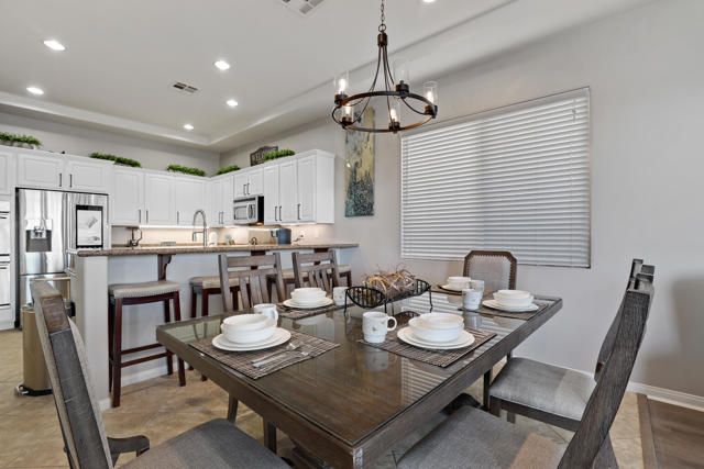 Stunning Home in the TERRA LAGO Community of Indio! This beautifully renovated residence is ideally situated near world-class golf courses, festivals, and an array of dining options. Step outside to your private backyard oasis featuring a sparkling saltwater pool, relaxing spa, built-in BBQ island, fire pit, and spacious outdoor dining area--perfect for entertaining or unwinding under the desert skies. Inside, the chef-inspired kitchen boasts stainless steel appliances, double ovens, and ample cabinetry. The bright and airy living room flows seamlessly into the family room, complete with a pool table and smart TV. Each bedroom offers comfort and convenience with smart TVs and generous closet space, while the bathrooms are tastefully appointed. The luxurious master suite features a king bed, twin pull-out bed, ensuite bath, and direct access to the backyard retreat. The ultimate game room is fully air-conditioned and designed for fun, showcasing a poker table, foosball, basketball game, arcade system, and smart TV. Community amenities include a scenic lake, fitness center, and clubhouse. With over $180,000 in upgrades, this 4-bedroom, 2.75-bath home offers 3,142 sq ft of luxurious living space. Additional highlights include a separate laundry room, 2-car garage plus single-car garage, and a paid-off solar system for energy efficiency and cost savings. This turnkey property is perfectly designed for short-term rental income or as a luxury retreat, making it a rare opportunity to own a high-demand investment home in Terra Lago.
