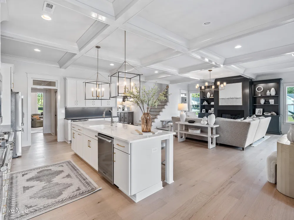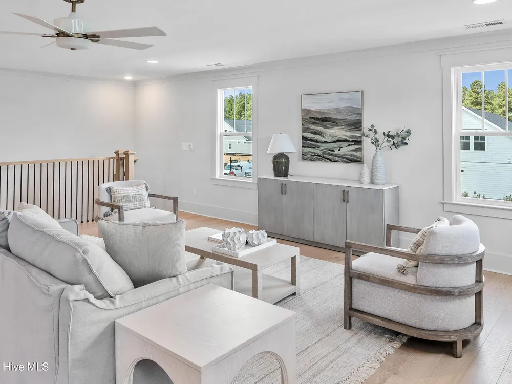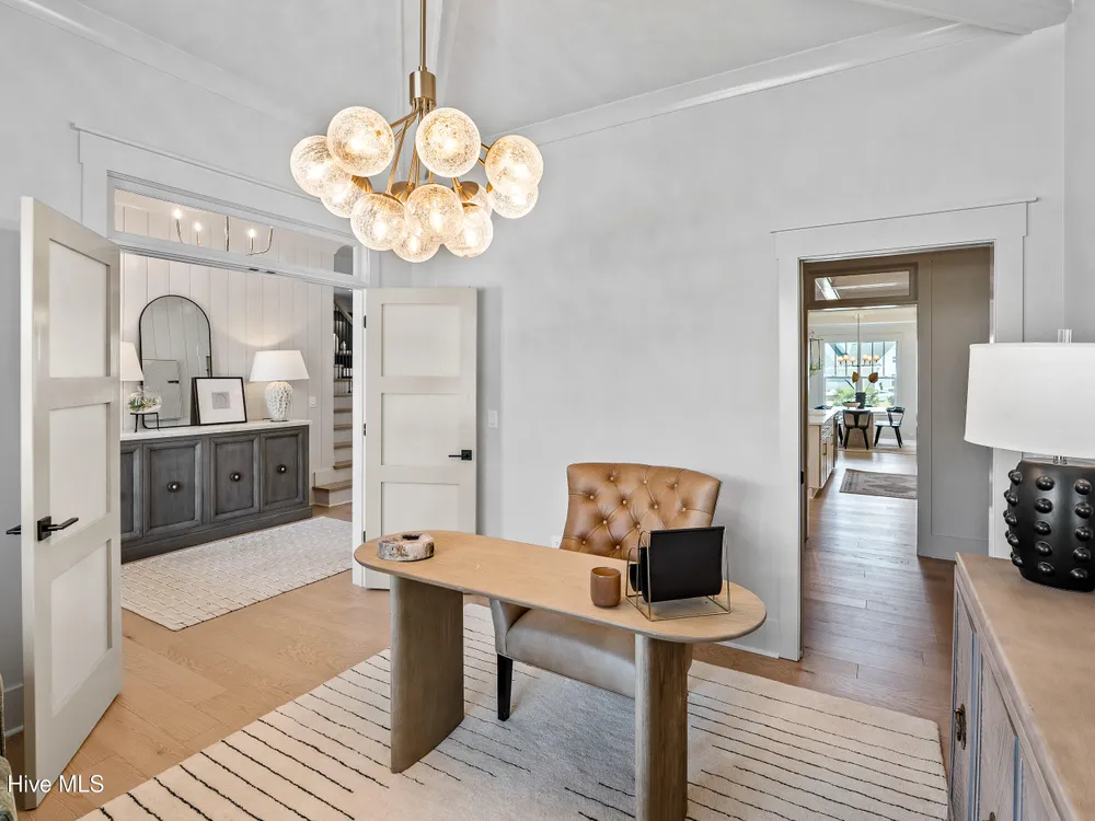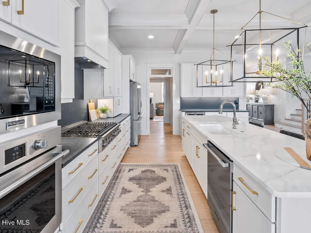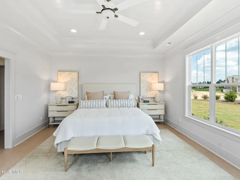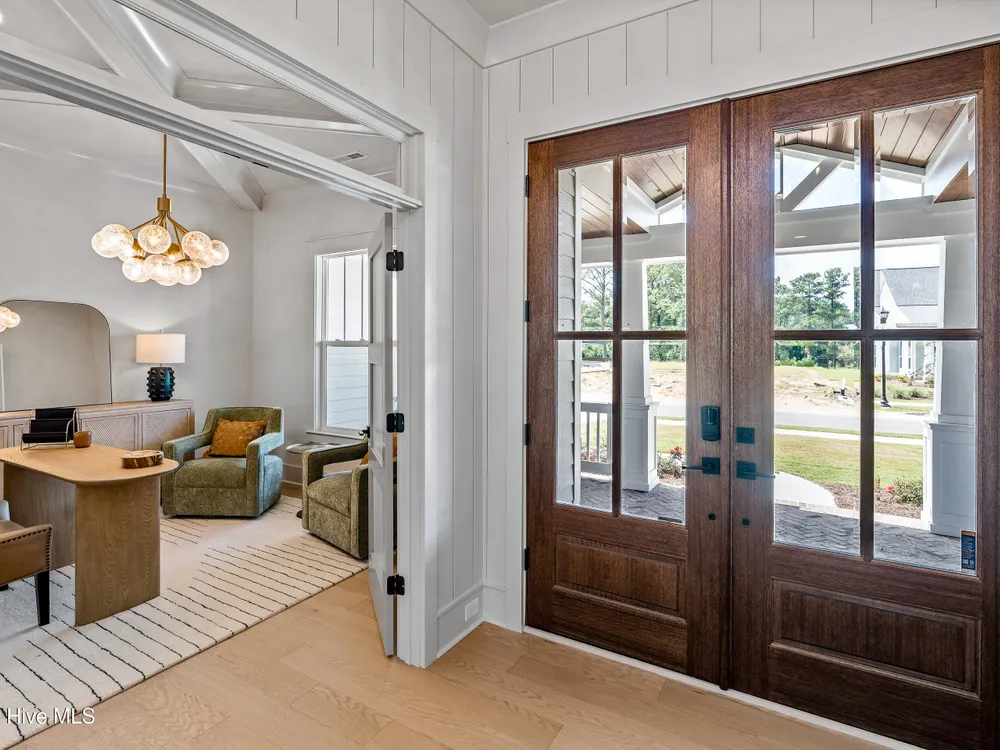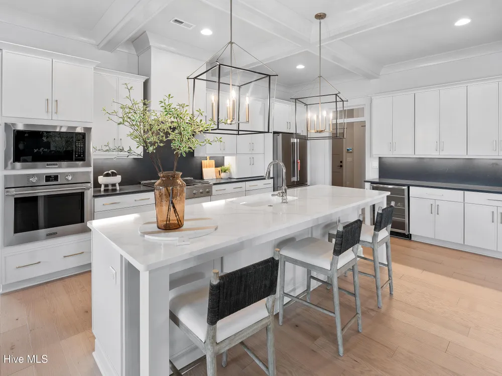Experience luxury living in The Chelsea by Legacy Homes by Bill Clark, an impressive 3,937 sq ft two-story home perfectly positioned on desirable corner lot in the coveted Creek Side at Brunswick Forest. This stunning 4-bedroom, 4.5-bathroom residence showcases an expansive open-concept design with a dramatic great room featuring coffer ceilings and a cozy fireplace, flowing effortlessly into a gourmet kitchen equipped with a large island, premium cabinetry, and walk-in pantry. The main-level owner's suite offers a private retreat with a spa-inspired ensuite, while the second floor provides three additional rooms, two bathrooms, and both a recreation room with a wet bar for endless entertainment possibilities. Outdoor living is elevated with a generous screened porch and expansive patio perfect for year-round enjoyment. Additional highlights include a convenient mudroom, dedicated first floor study, and two-car garage. With hardwood flooring throughout main living areas, sophisticated light fixtures, and premium finishes including quartz countertops and custom trim work, this new construction masterpiece delivers elegance and functionality in Brunswick County's premier community.