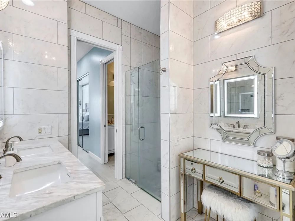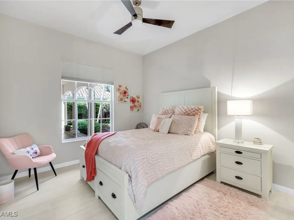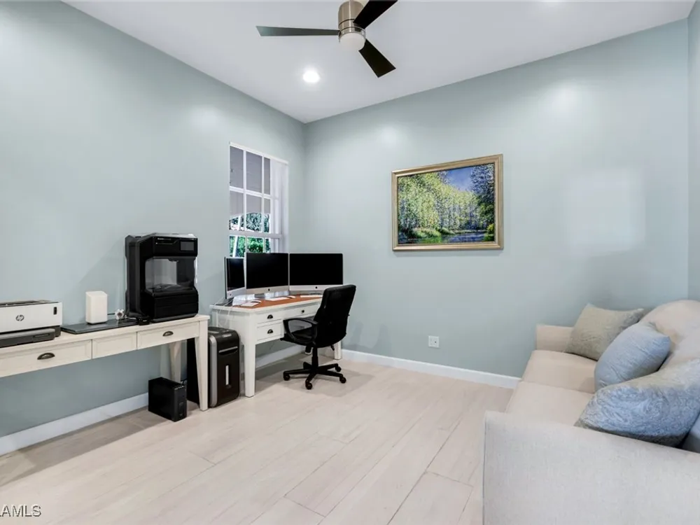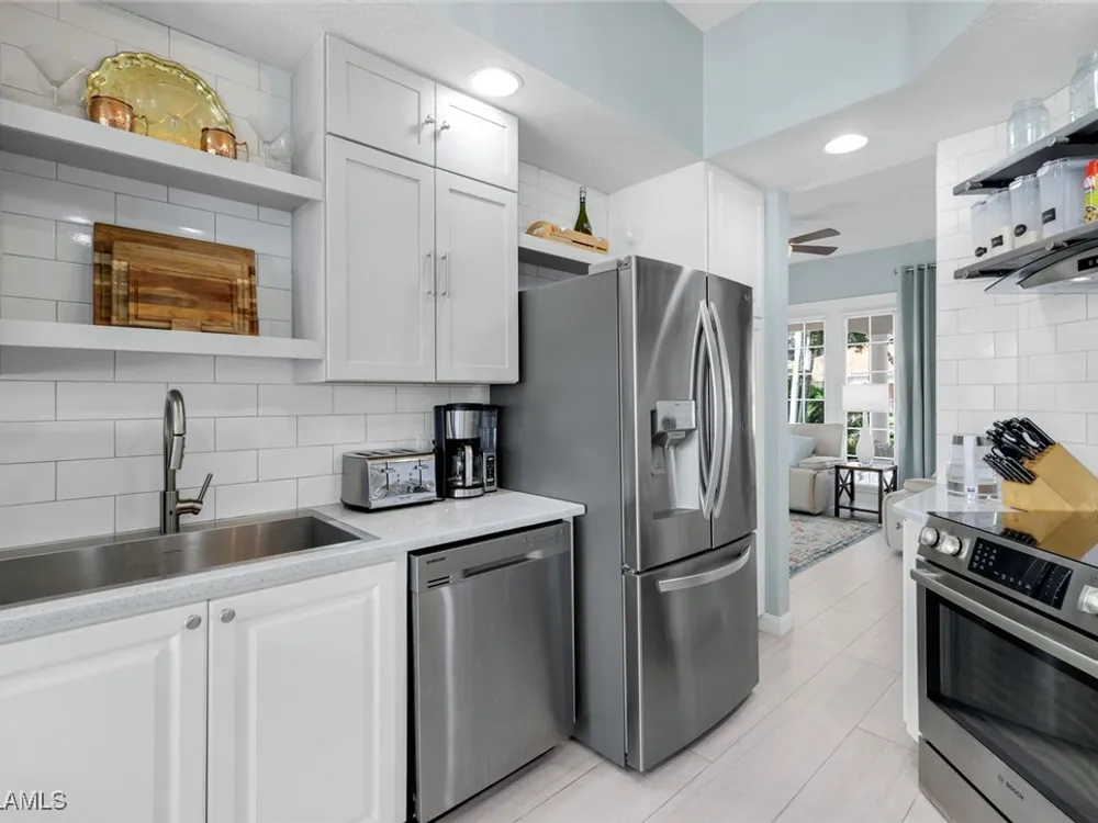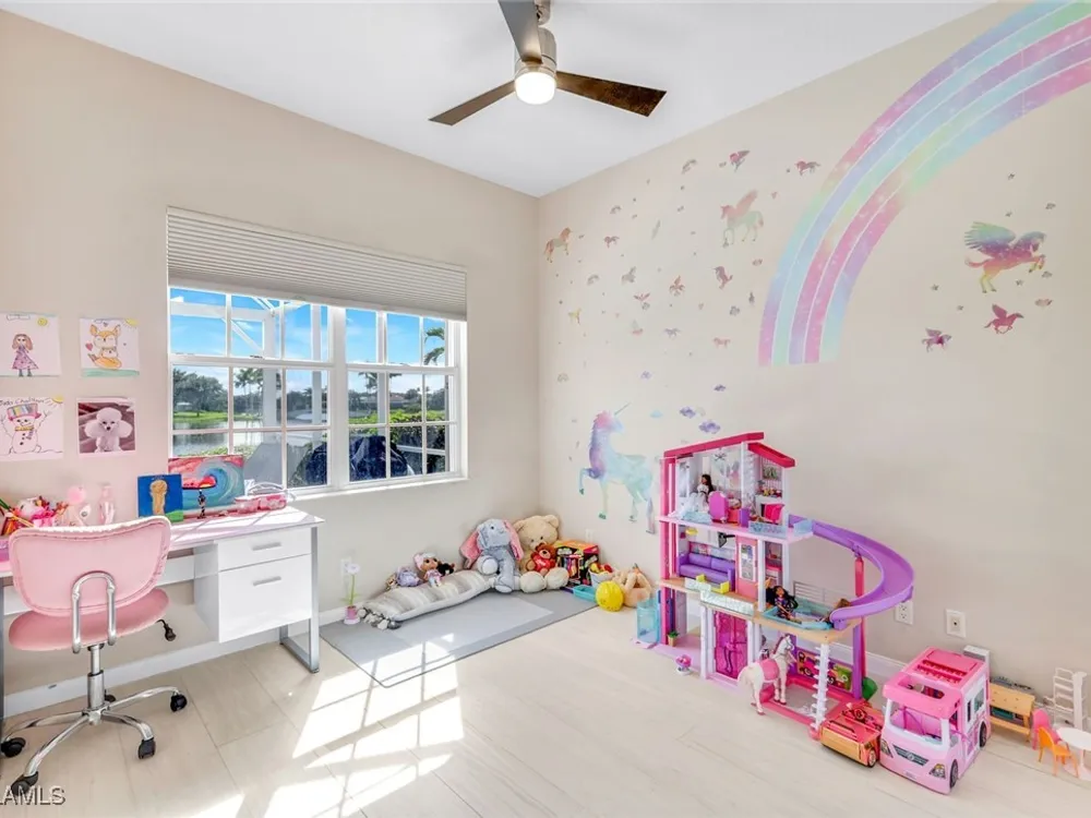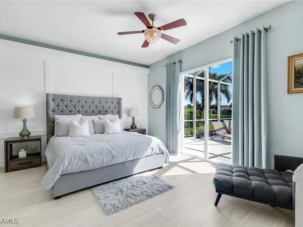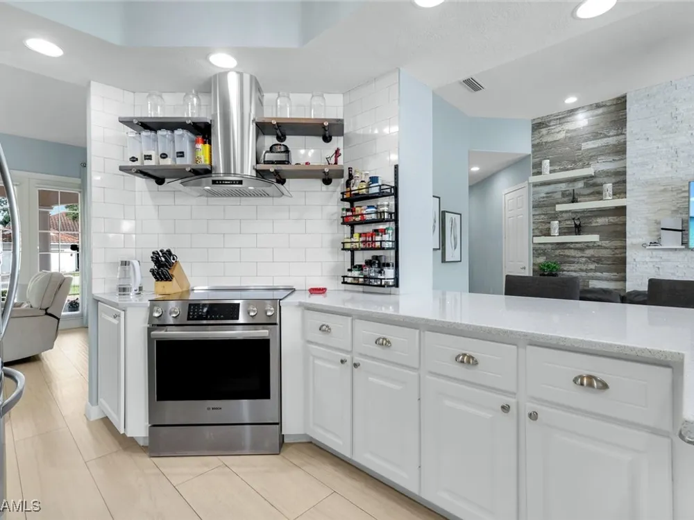 **ONE OF THE BEST HOMES IN ISLANDWALK**SPECTACULAR LAKE-VIEW** This Designer Carlyle Model features stunning, long lake, walking bridge, sunrise views and offers nearly 2500 square feet of elegance and style that will satisfy even the most discerning of buyers. Custom wall of kitchen cabinets! Glamour abounds in this sophisticated gem. The crown jewel of Islandwalk boasts a quartzite brick feature wall with remote controlled fireplace and mounted TV. Sparkling white quartz countertops, Newer Samsung Appliances, Barn door, artisan crafted cabinets and open shelving, European range hood, gray beech hardwood floors throughout. New roof 1-2 years old, New pool heater, pump and filter, Pool deck painted, Garage epoxy floor, Kitchen appliances -3 years. Tesla charger and Generator electric hookup-panel. If you've been looking for a gem with amazing features and you want to move right in with just your toothbrush, then this is the home for you. Award Winning IslandWalk comes with Amenities Galore and is located within easy walking or biking distance to all the Island Walk TownCenter amenities with resort and lap pools, 8 har tru tennis courts, state of the art fitness center, putting green, bocce courts, post office, Fantastic Casa Cotzelli Restaurant, gas station, car wash, hair and nail salons. Come Enjoy Paradise which includes HDTV, High Speed Internet and Lawn Care. Don’t let this one get away… make this Stunning Oasis YOUR address in Paradise !!