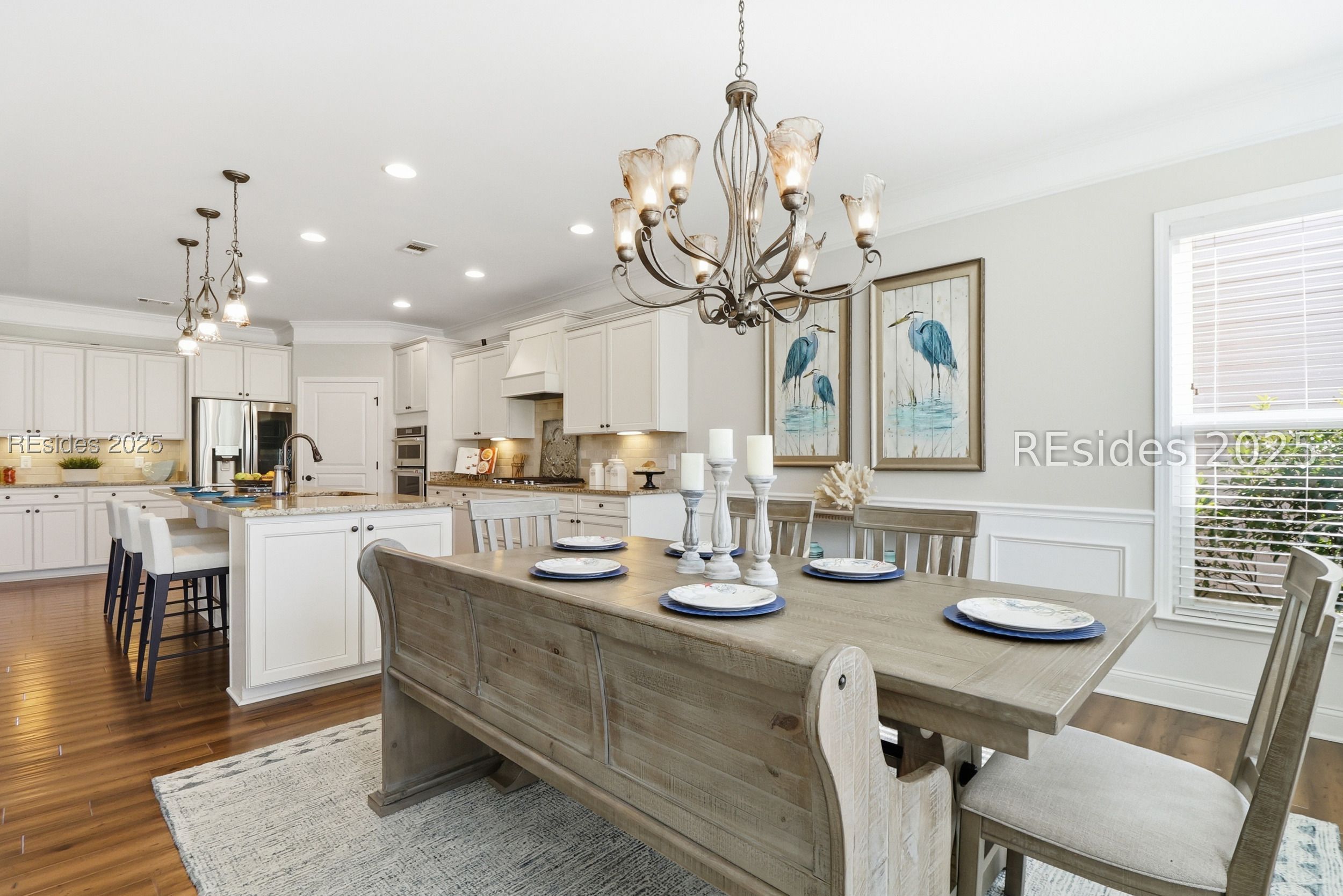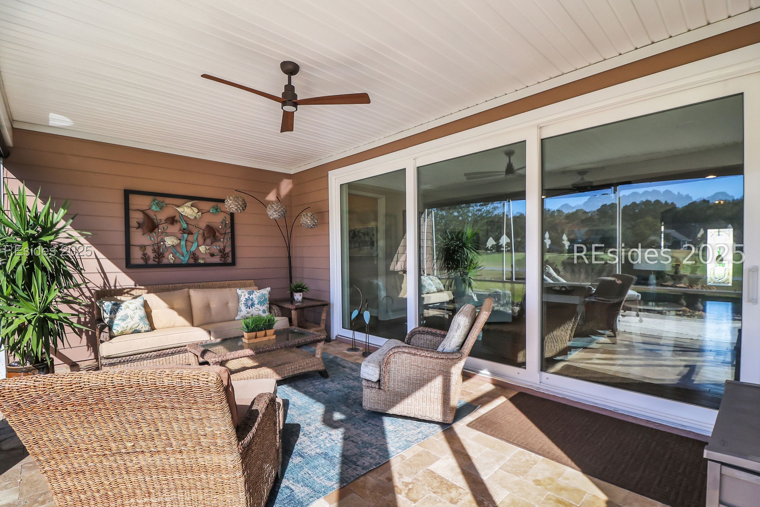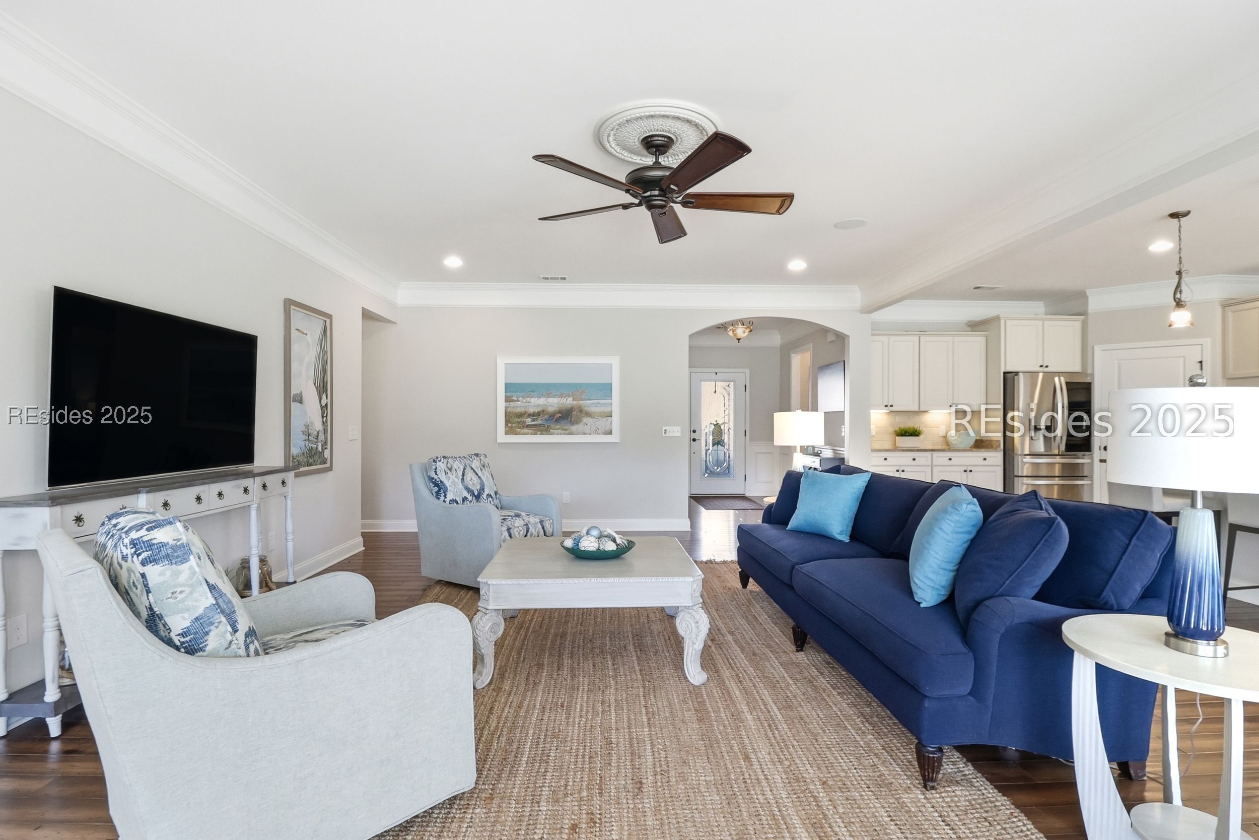 Located in the heart of Sun City Hilton Head, this stunning Dunwoody Way model sits directly on the Argent Lakes Golf Course, offering sweeping fairway views and the relaxed elegance of Lowcountry living. This highly sought-after floor plan features 3 bedrooms, 3 full baths, and a versatile flex/office space-perfect for guests or a quiet retreat. From the moment you enter, you're greeted by an open-concept design that flows effortlessly from the front foyer through the spacious living room and out the oversized patio door to the screened lanai. Large windows frame peaceful golf course vistas, creating a perfect backdrop for entertaining or simply unwinding. Outside you will find a sprawling patio-an ideal setting to enjoy your morning coffee or savor those serene southern evenings after a day exploring all that Sun City has to offer. The gourmet kitchen is a chef's dream with upgraded stainless steel appliances, a cozy dining nook, and elegant finishes throughout. Fine details such as manufactured hardwood flooring, deep crown moldings, wainscoting in the entry, and French doors with transoms add charm and sophistication. Your primary suite is a private haven with a luxurious en suite bath, super shower, a custom walk-in closet, and tranquil backyard views that greet you each morning. For added convenience, the garage features an epoxy floor, golf cart/extra-attached bay, and a full stairway walk-up attic providing ample storage space. Living in Sun City Hilton Head means embracing a vibrant, active lifestyle-with over 150 clubs and social groups, three golf courses, pickleball and tennis courts, fitness centers, and indoor and outdoor resort-style pools. Plus, enjoy easy access to the brand-new, multi-million-dollar amenity center coming soon! Discover why southern hospitality and resort-style living come together perfectly in this exceptional Sun City home.