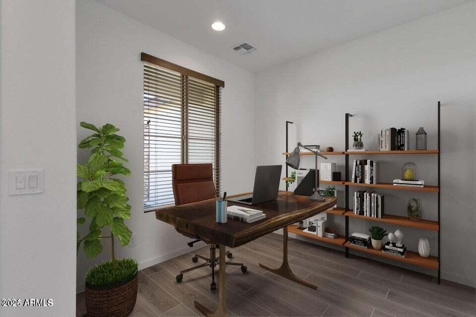 Opportunity is knocking! Built by Shea in 2022 this gently lived in home exudes modern charm while showcasing thoughtful design. The exterior features a sleek façade with a combination of natural stone with a contemporary design inviting you into a warm, welcoming space. A great room floor plan is ideal for entertaining or comfortable family living. The kitchen features sleek modern cabinetry with crisp white quartz countertops, along with stainless appliances to include a GAS range! The island is substantial in size and not only serves as an extra prep space but also offers a place for extra seating. You will also find a dedicated pantry! The primary bedroom is generous in size and offers dual sinks, tons of cabinetry, and oversize walk-in shower, and... walk-in closet! The secondary bedroom is also spacious along with the full bathroom just off the hallway! You will also find a perfect office at the front of the home with tons of natural lighting! The paint and flooring are neutral throughout. You will enjoy sitting on your back patio enjoying your morning coffee. No neighbors behind simply natural desert views! This home comes equipped with window treatments, landscaping, and is an Adobe Hi-Tech Smart home! All you need to do is pack your bags. Enjoy the amenities of Trilogy Wickenburg Ranch Resort, including pools, a spa, weight room, bars, a clubhouse, restaurant, golf courses, and pickleball courts. Don't miss this exceptional home in a vibrant community!