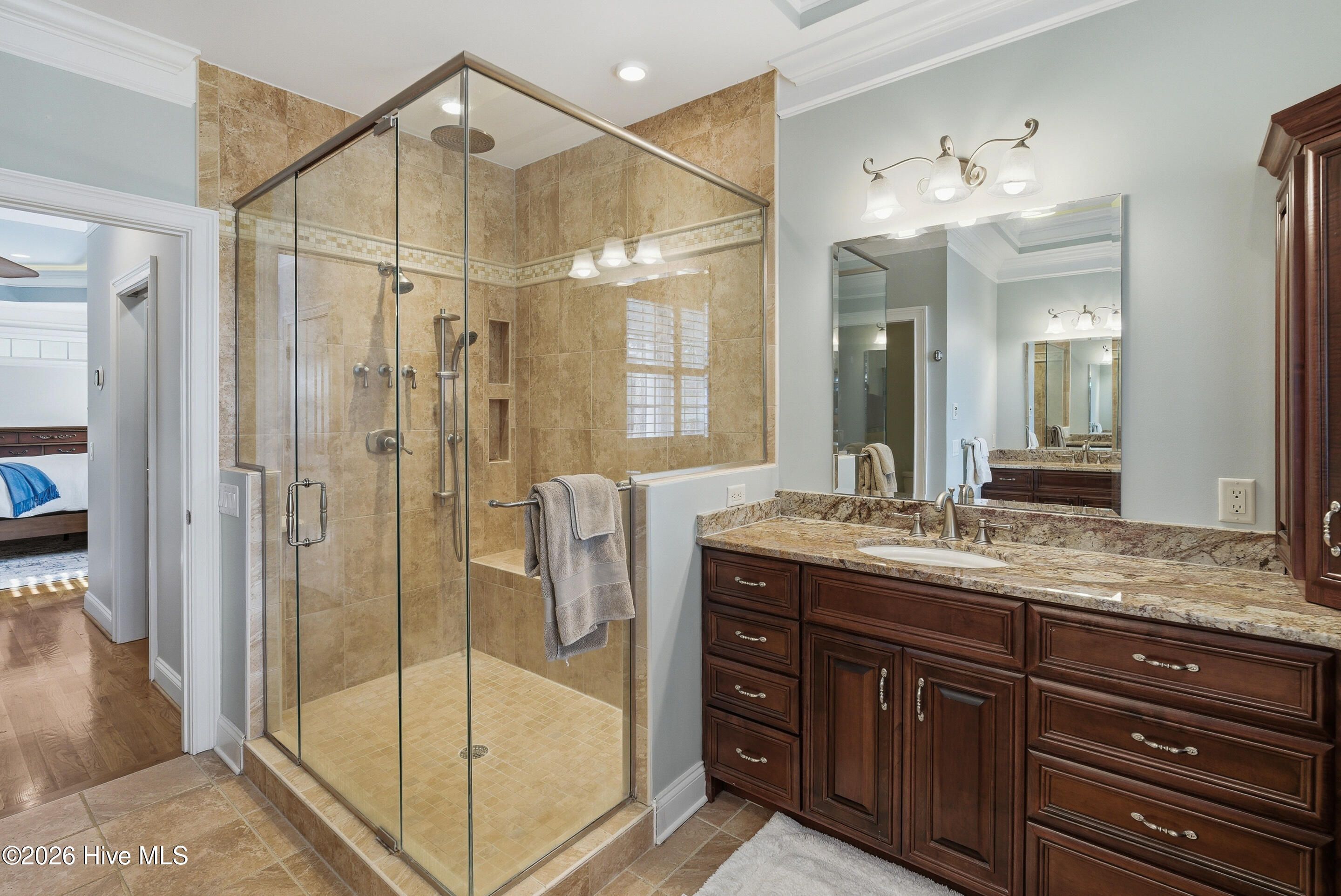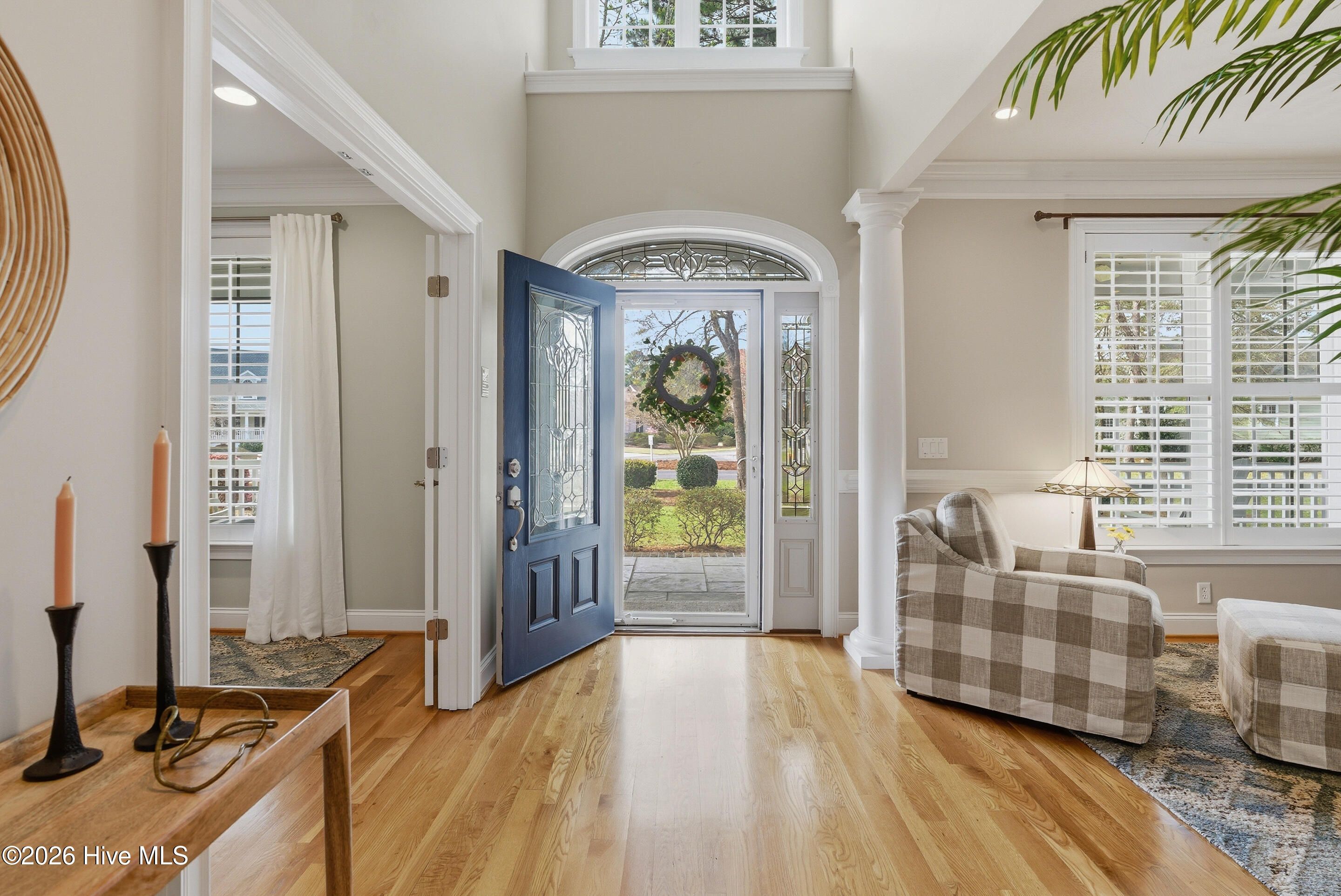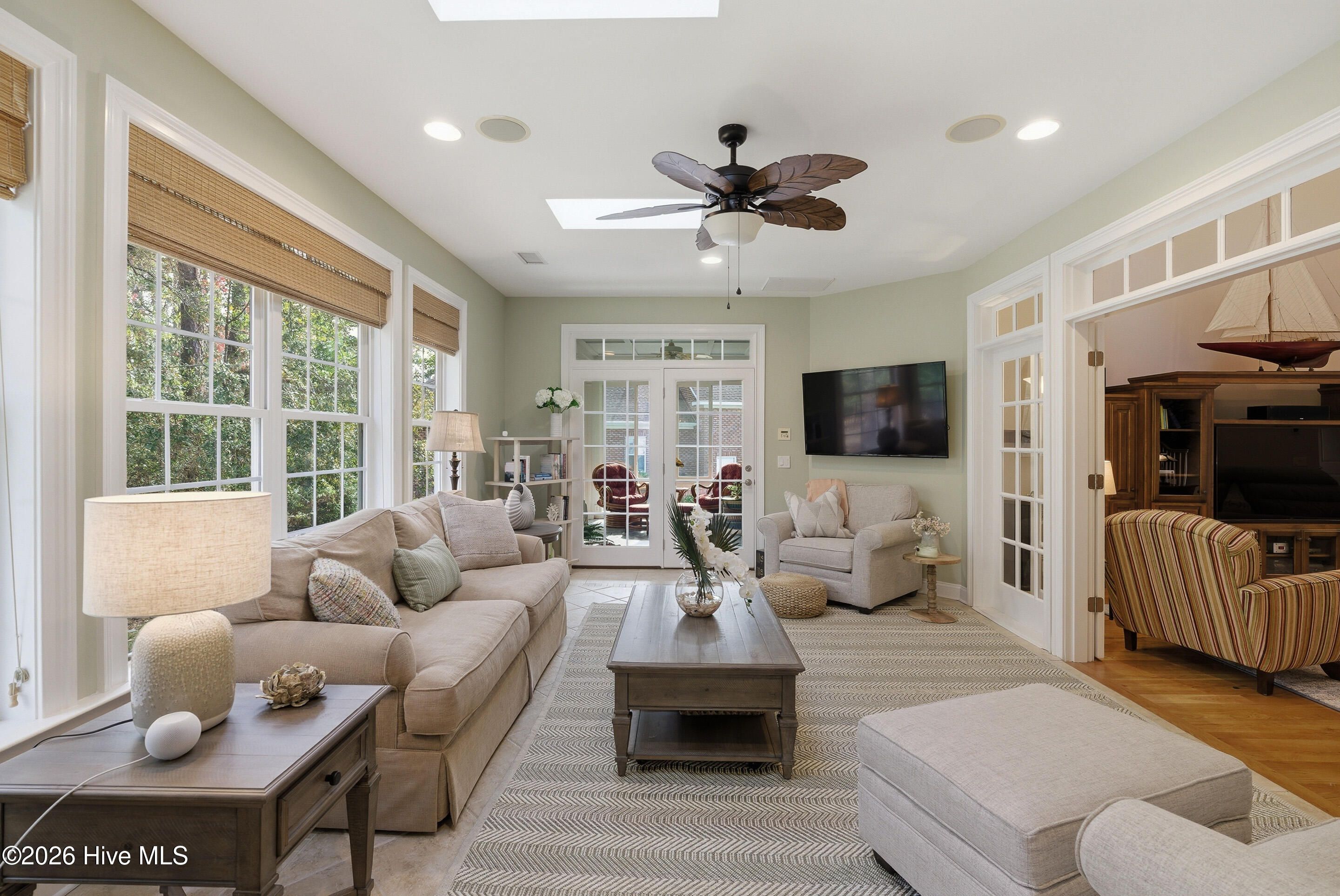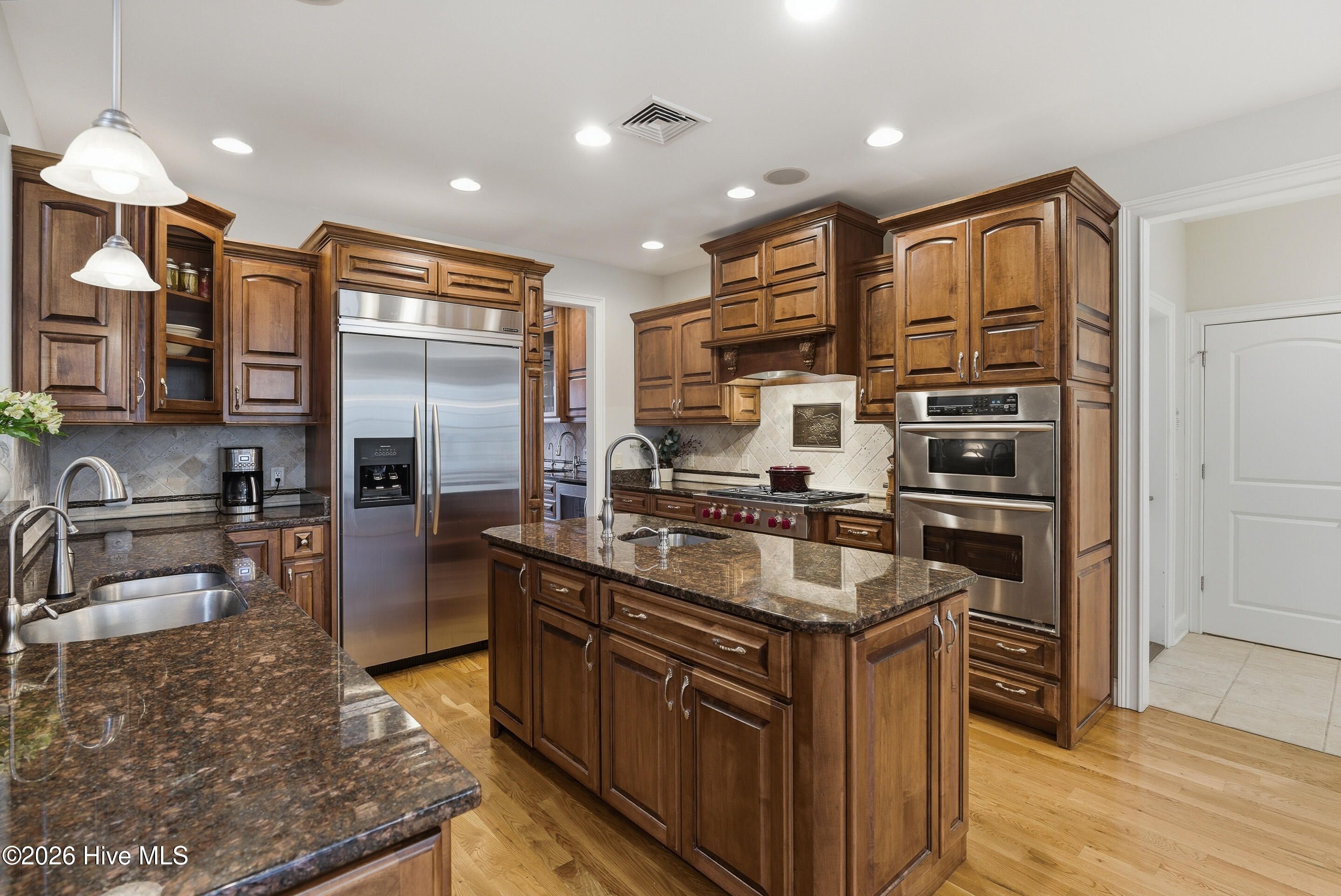 Discover refined, resort-inspired living in St. James Plantation, Southport NC, where every detail is chosen for comfort, ease, and gracious entertaining. This 5-bedroom, 5-bath home spans about 4,600 square feet and sits on a wooded lot with a private backyard and shed, offering tranquility just moments from the coast and the amenities that define this exceptional community. As you enter, you'll feel the effortless flow that makes daily life a pleasure and hosting a delight. The open floor plan centers on a generous great room and two sunlit Carolina rooms, with a dedicated library/office to accommodate quiet work or reading in style. Elegant hardwood floors run throughout, guiding you through spaces that blend timeless charm with modern practicality. The chef's kitchen is a true centerpiece, designed for both daily living and effortless entertaining. You'll find abundant counter space and a island with a sink, cherry cabinetry paired with granite countertops, stainless steel appliances including a six-burner Wolf cooktop, built-in Miele coffee station, wine cooler, and icemaker. A Butler's pantry and a breakfast bar that connects to the living areas complete the culinary hub. Two Carolina Rooms and one Sun Room brings in generous natural light, creating ideal spots for morning coffee, yoga, or winding down with a glass of wine as the day ends. Your primary suite is a true sanctuary that includes its own Carolina Room for private relaxation, a trey ceiling and transom windows that add architectural depth, and a spacious bath with a generous shower and a Jacuzzi tub. Hardwood floors preserve the warm, cohesive feel throughout. Upstairs, the layout continues to impress with a guest suite plus two additional bedrooms sharing a Jack-and-Jill bath, and a versatile bonus room with a full bath, perfect for guests, a media or hobby space. Thoughtful practicalities include a large laundry room with built-in storage, an oversized three-car garage, generator, and a Rinnai hot water heater for reliable comfort. The wooded lot offers a private backyard and a shed for extra storage or projects. Location and lifestyle advantages you'll appreciate: proximity to The Founders Club for golf, social events, and club amenities; nearby Waterway Park for peaceful walks, picnics, and outdoor enjoyment; and a marina nearby offering easy access to boating and waterfront leisure. This home blends luxury and livability in a quiet, private setting while keeping you connected to the refined vibrancy of St. James Plantation. With 5 bedrooms and 5 baths, plus two Carolina rooms, a library/office, and ample entertaining spaces, you have flexible options for work, hosting guests, and savoring downtime.