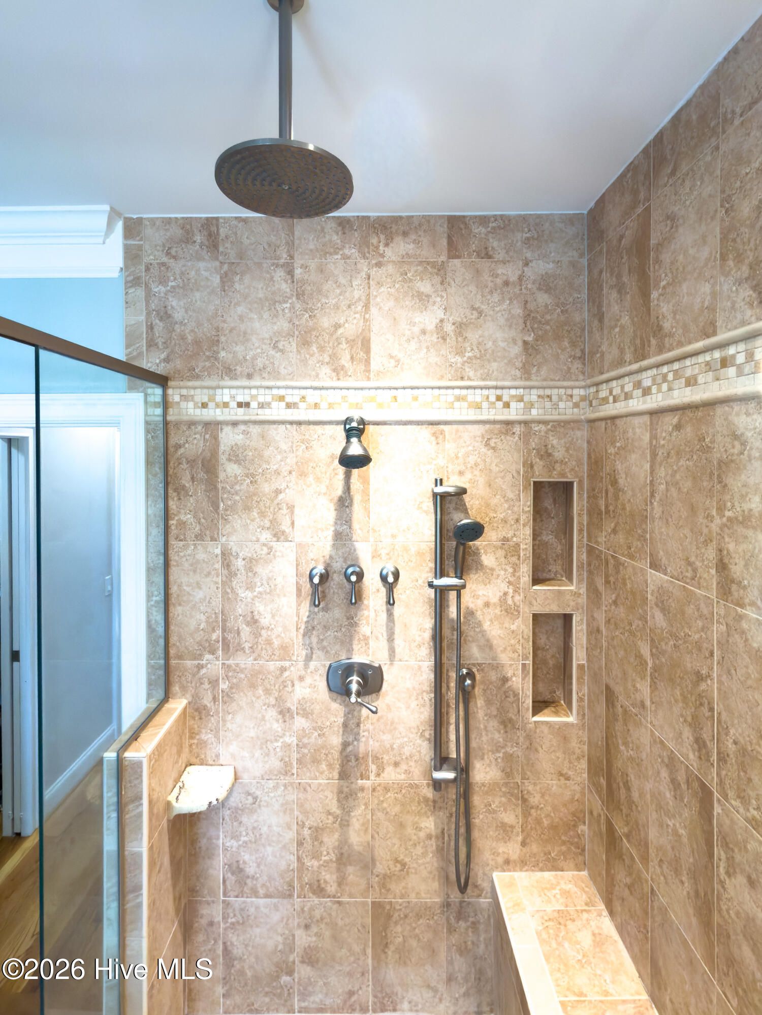 - Master Downstairs, Walk-in Closet(s), Tray Ceiling(s), High Ceilings, Solid Surface, Kitchen Island, Ceiling Fan(s), Pantry, Walk-in Shower, Wet Bar