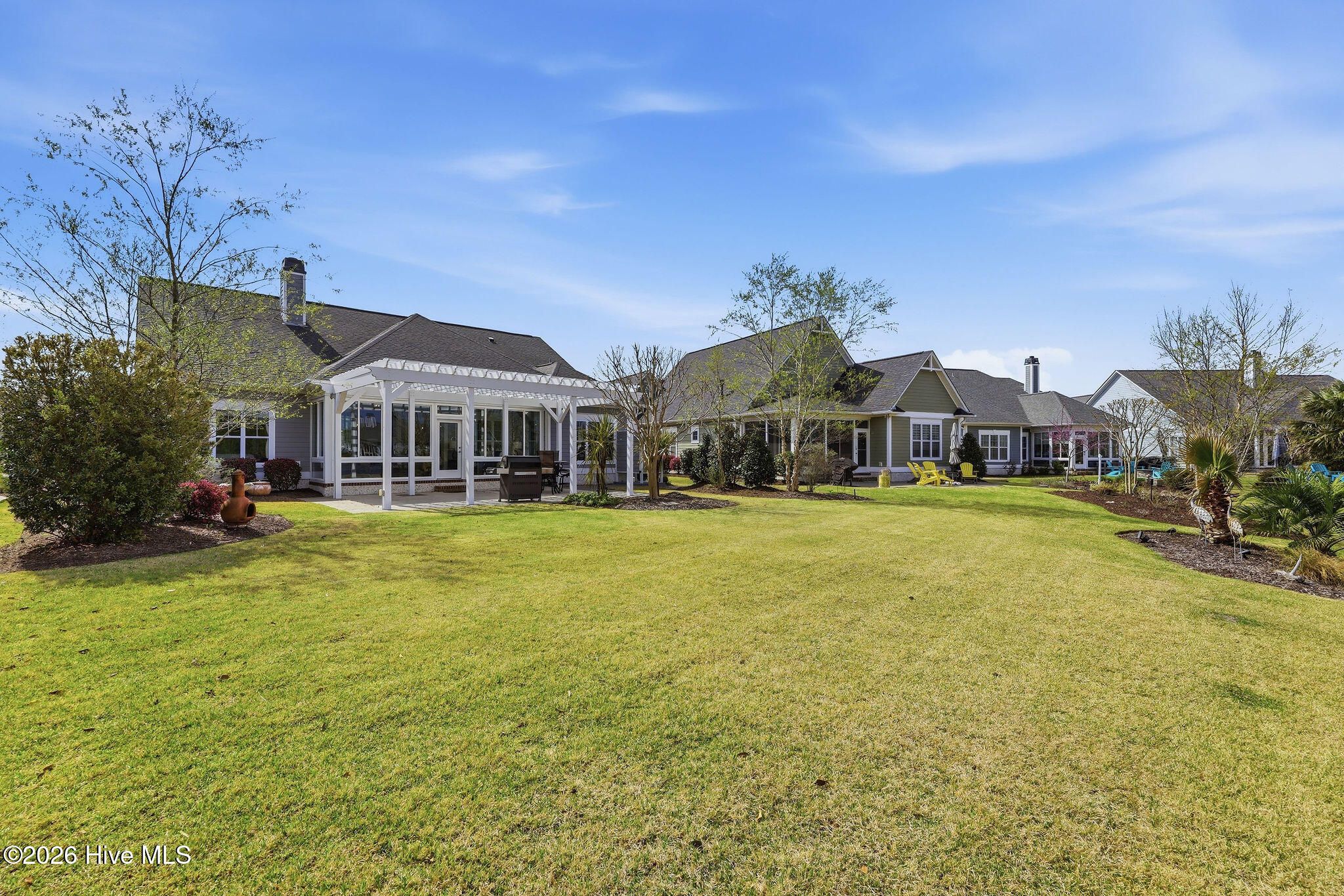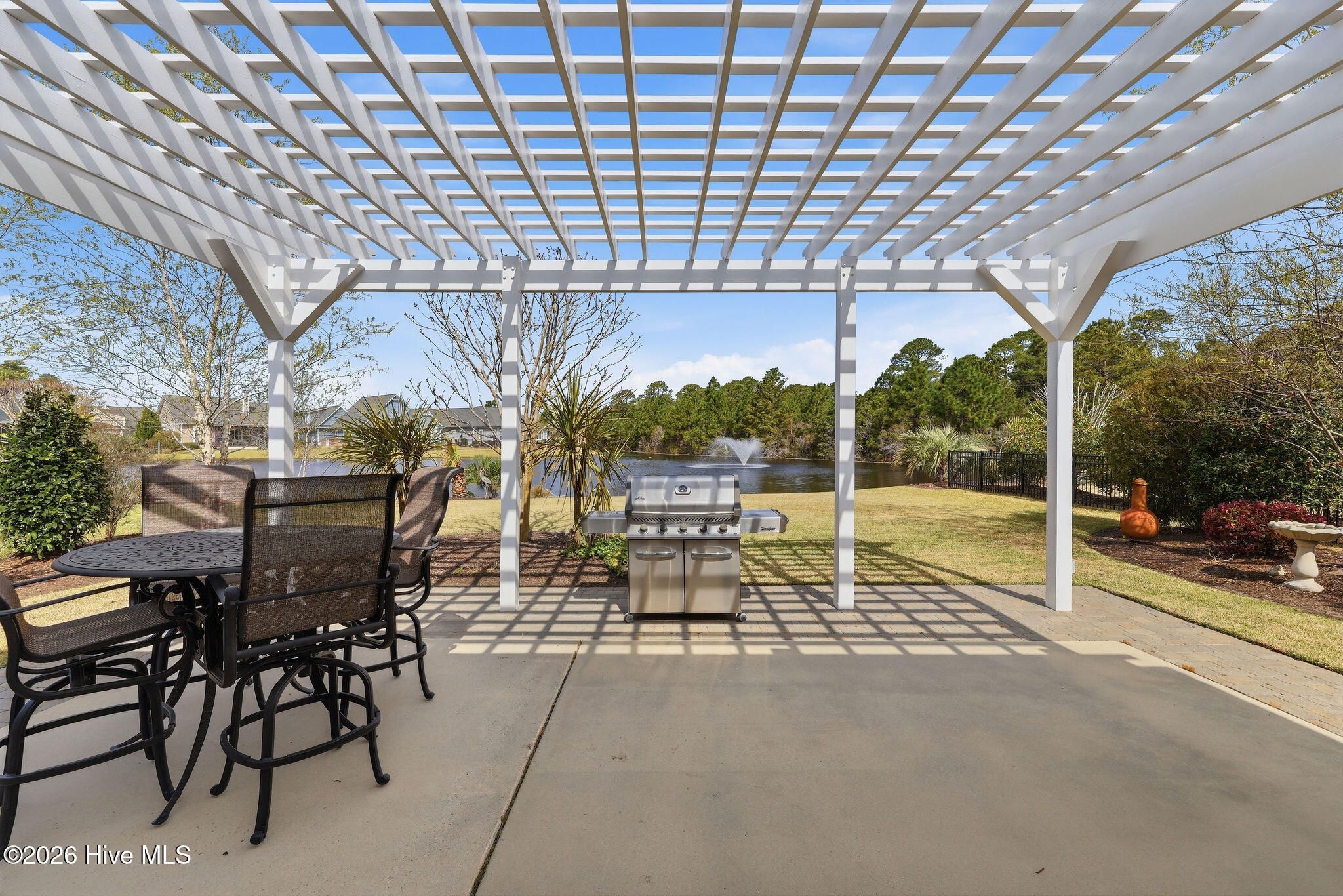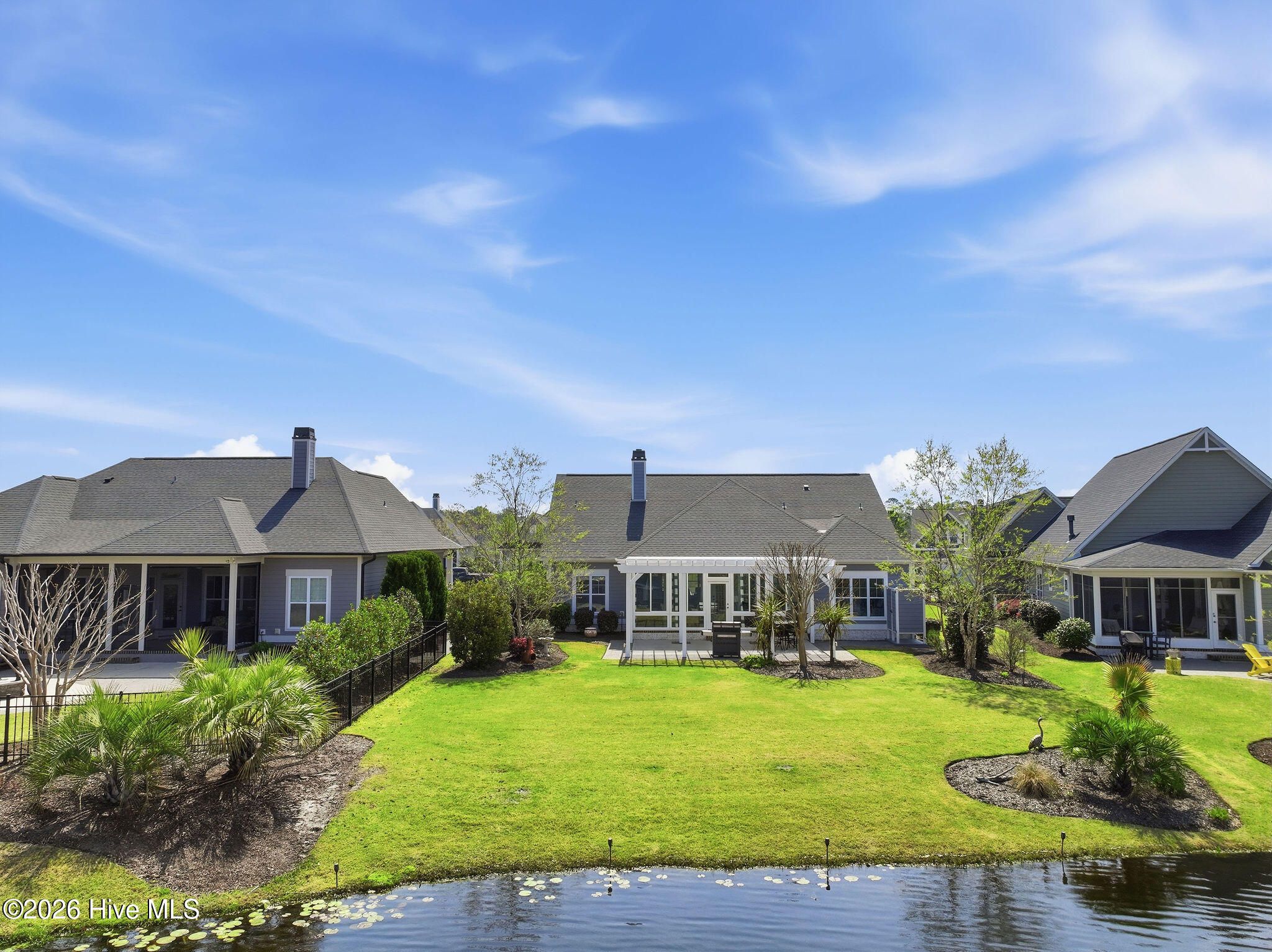 Tranquil pond views, luxurious upgrades, and quality construction are just the beginning of the offerings of this Craftsman style home located just inside the Regency Gate in the Cottages at Regency Lakes neighborhood of St. James Plantation. This 3 bedroom, 3 full bathroom, 2,464 sqft is the perfect blend of extravagance and ease. A courtyard style garage and dormer windows with metal roofing offer extra charm to the front facade. Relax on the covered rocking chair front porch before entering into the home which showcases modern features, upgraded lighting and calming coastal colors. It is hard to ignore the dazzling view of the cascading fountain in the rear pond as you are led into the home along the durable engineered hardwood flooring. The living room showcases a vaulted ceiling, ceiling fan and propane fireplace surrounded by built-in shelving. High ceilings, crown molding and wainscoting grace the formal dining room and the open kitchen with white cabinets, subway tile backsplash and lightly veined white quartz countertops is a chef's dream! Additional glass front white cabinets give opportunity for a coffee bar, dry bar or display area for glassware, dishes or decor. The Viking 6 burner propane cooktop, stainless-steel range hood and stainless steel appliances including Kitchen Aid Cafe double wall ovens, LG refrigerator, Bosch dishwasher and built-in drawer microwave are equal parts fabulous and functional. The 11' kitchen island with extra seat-side storage spaces, deep single sink & disposal provide the perfect spot for culinary creations or for friends & family to gather all illuminated by blown glass pendant lights. A cozy breakfast nook is perfect for casual meals and 2 pantry spaces give even more room for food, small kitchen appliances & cleaning supplies. The Carolina Room/porch is outfitted with a mini split allowing year round usage. It is the perfect setting for morning coffee, happy hour beverages or reading your favorite beach book all while listening to the babble of the pond fountain. The primary bedroom has double entry doors, trey ceiling, Minka Air ceiling fan, two clothes closets & a linen closet all featuring wood shelving, as well as an ensuite bathroom with zero entry tiled shower with glass door, dual sinks, private toilet room and large soaking tub. Two additional bedrooms give plenty of space for guests or a home office. A tiled full hall bathroom with tiled tub/shower service the additional bedrooms. An additional linen closet and laundry room with LG washer, LG gas dryer, laundry sink, quartz countertop & storage cabinets round out the main floor. Travel upstairs via the updated wooden stairs to the bonus space/FROG with new LVP flooring with extra padding. This space is perfect for a 4th bedroom, game room, craft/hobby room or fitness space. The tiled full bathroom is complete with single sink vanity, shower with glass door and storage shelves. A bonus room closet aids with storage as does a walk-in attic door which leads to the new Trane split heat pump 4 ton 16 seer rating HVAC system (2025) with Trane Air Effect whole home electronic air purifier (no more filters!) and added built in wooden shelving for holiday boxes. Outside you'll discover garden beds with thoughtful landscaping and irrigation and a rear patio with pergola and paver patio to the outdoor shower as well as the aforementioned exceptional pond front views. The extended, 2-car garage has a slip resistant polyaspartic garage floor and lower wall (4x better than epoxy!) by Hello Garage, Double tankless hot water heater for continuous hot water, whole house reverse osmosis water filtration system and additional storage. If you are looking for a zen-like retreat of St James you have found it!