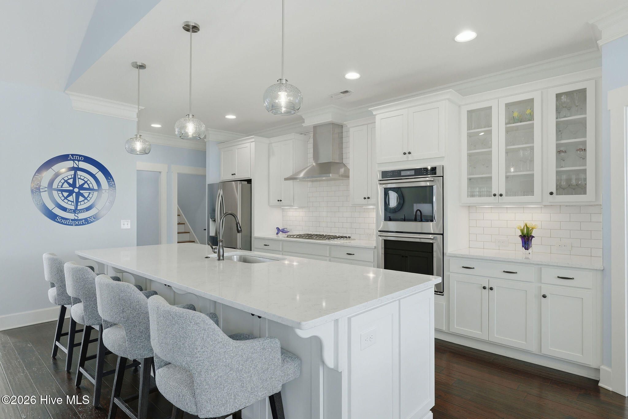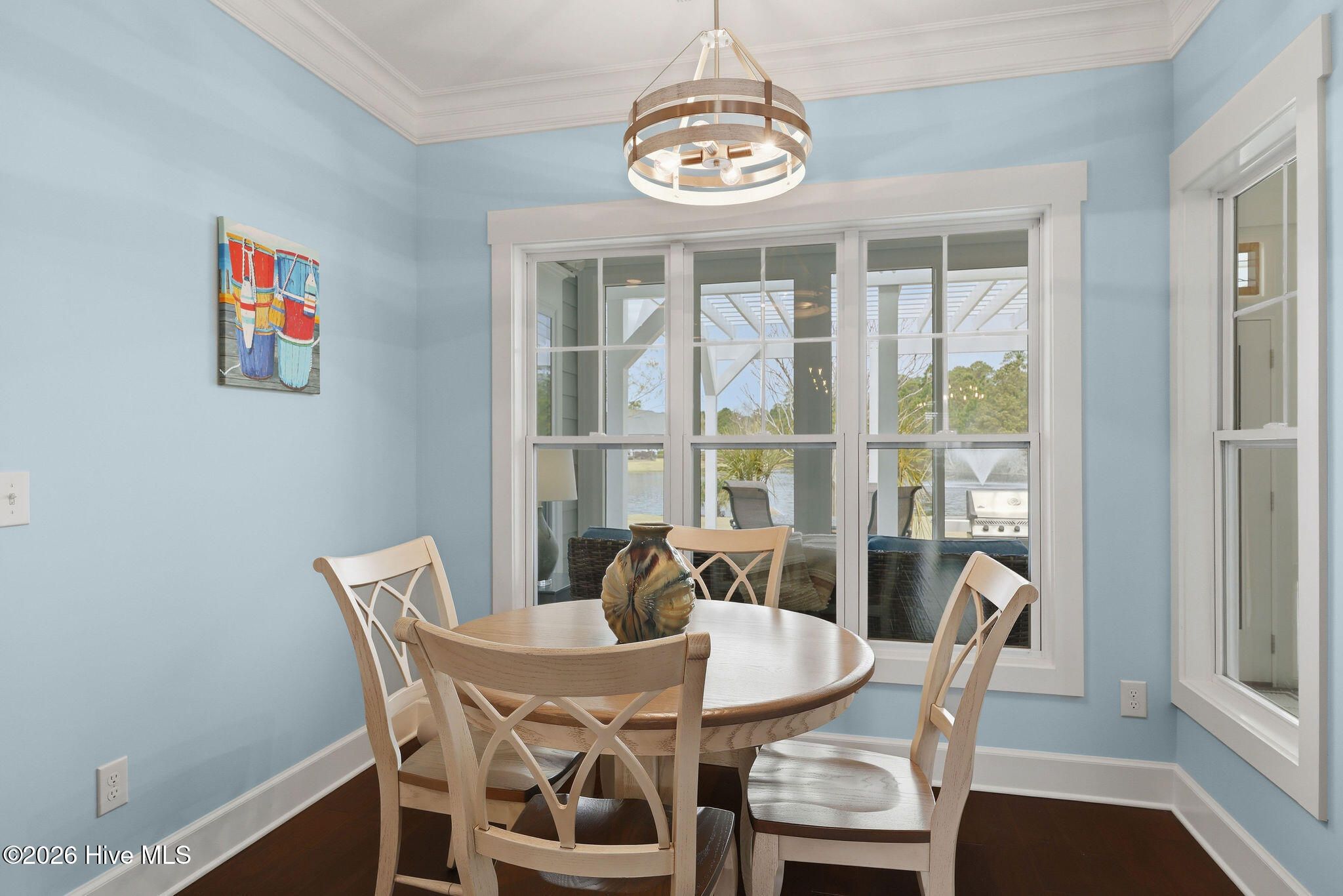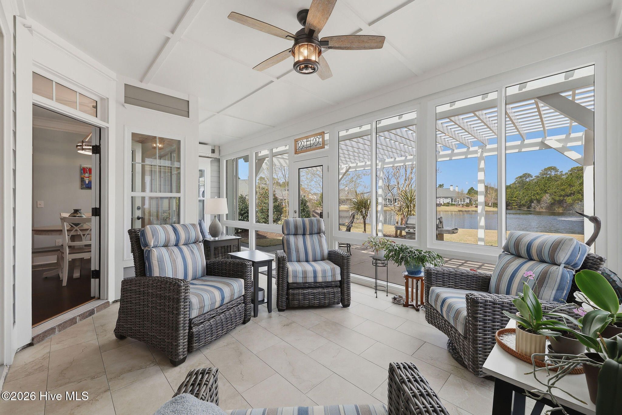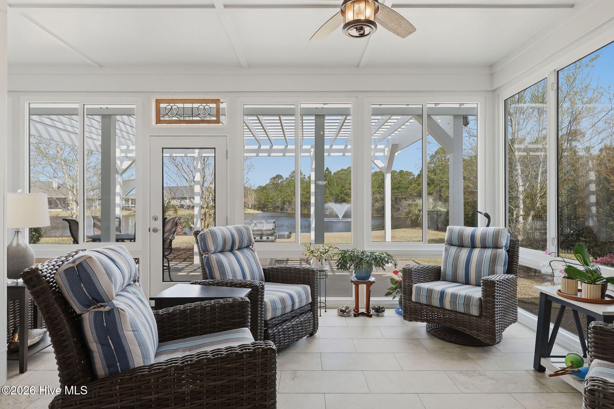 Tranquil pond views, luxurious upgrades, and quality construction are just the beginning of the offerings of this Craftsman style home located just inside the Regency Gate in the Cottages at Regency Lakes neighborhood of St. James Plantation. This 3 bedroom, 3 full bathroom, 2,464 sqft is the perfect blend of extravagance and ease. A courtyard style garage and dormer windows with metal roofing offer extra charm to the front facade. Relax on the covered rocking chair front porch before entering into the home which showcases modern features, upgraded lighting and calming coastal colors. It is hard to ignore the dazzling view of the cascading fountain in the rear pond as you are led into the home along the durable engineered hardwood flooring. The living room showcases a vaulted ceiling, ceiling fan and propane fireplace surrounded by built-in shelving. High ceilings, crown molding and wainscoting grace the formal dining room and the open kitchen with white cabinets, subway tile backsplash and lightly veined white quartz countertops is a chef's dream! Additional glass front white cabinets give opportunity for a coffee bar, dry bar or display area for glassware, dishes or decor. The Viking 6 burner propane cooktop, stainless-steel range hood and stainless steel appliances including Kitchen Aid Cafe double wall ovens, LG refrigerator, Bosch dishwasher and built-in drawer microwave are equal parts fabulous and functional. The 11' kitchen island with extra seat-side storage spaces, deep single sink & disposal provide the perfect spot for culinary creations or for friends & family to gather all illuminated by blown glass pendant lights. A cozy breakfast nook is perfect for casual meals and 2 pantry spaces give even more room for food, small kitchen appliances & cleaning supplies. The Carolina Room/porch is outfitted with a mini split allowing year round usage. It is the perfect setting for morning coffee, happy hour beverages or reading your favorite beach book all while listening to the babble of the pond fountain. The primary bedroom has double entry doors, trey ceiling, Minka Air ceiling fan, two clothes closets & a linen closet all featuring wood shelving, as well as an ensuite bathroom with zero entry tiled shower with glass door, dual sinks, private toilet room and large soaking tub. Two additional bedrooms give plenty of space for guests or a home office. A tiled full hall bathroom with tiled tub/shower service the additional bedrooms. An additional linen closet and laundry room with LG washer, LG gas dryer, laundry sink, quartz countertop & storage cabinets round out the main floor. Travel upstairs via the updated wooden stairs to the bonus space/FROG with new LVP flooring with extra padding. This space is perfect for a 4th bedroom, game room, craft/hobby room or fitness space. The tiled full bathroom is complete with single sink vanity, shower with glass door and storage shelves. A bonus room closet aids with storage as does a walk-in attic door which leads to the new Trane split heat pump 4 ton 16 seer rating HVAC system (2025) with Trane Air Effect whole home electronic air purifier (no more filters!) and added built in wooden shelving for holiday boxes. Outside you'll discover garden beds with thoughtful landscaping and irrigation and a rear patio with pergola and paver patio to the outdoor shower as well as the aforementioned exceptional pond front views. The extended, 2-car garage has a slip resistant polyaspartic garage floor and lower wall (4x better than epoxy!) by Hello Garage, Double tankless hot water heater for continuous hot water, whole house reverse osmosis water filtration system and additional storage. If you are looking for a zen-like retreat of St James you have found it!