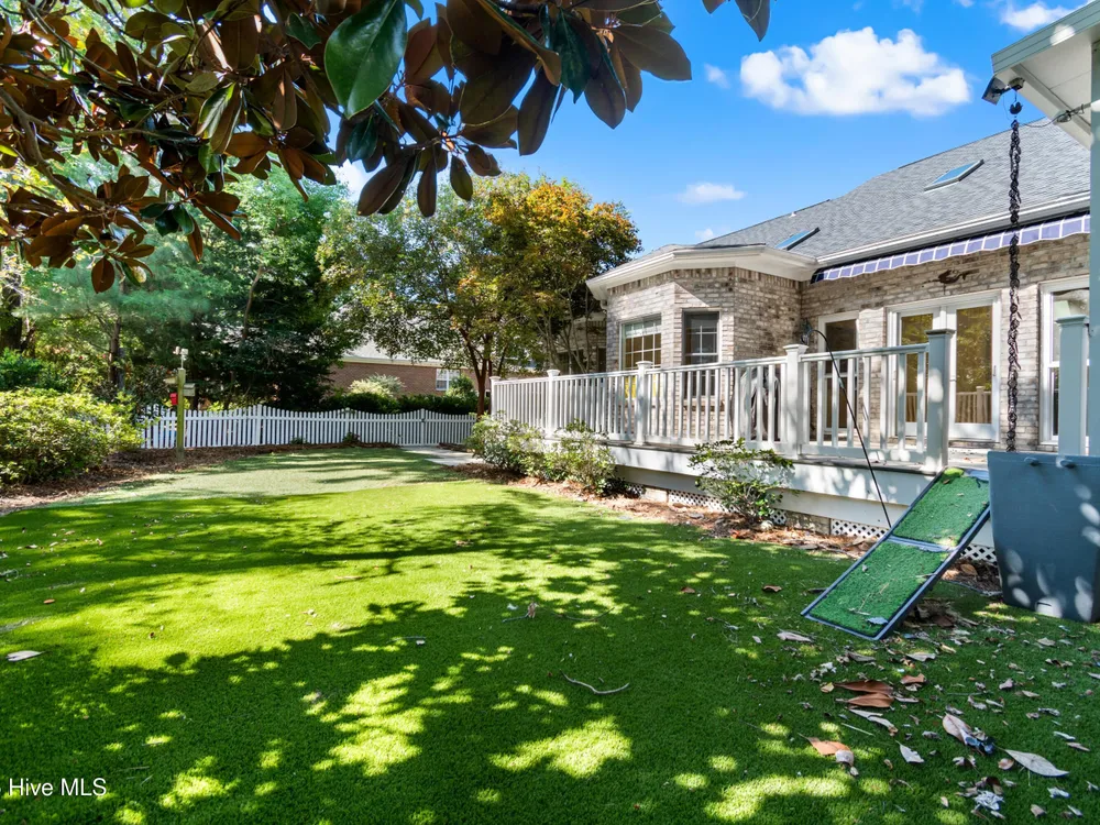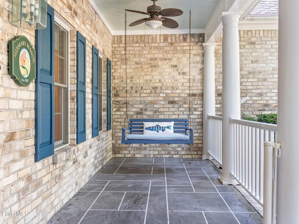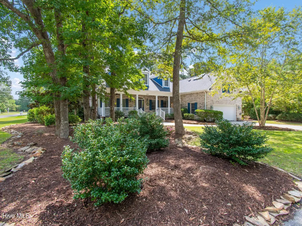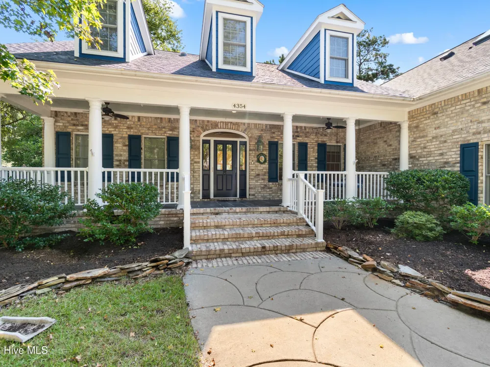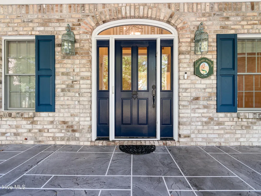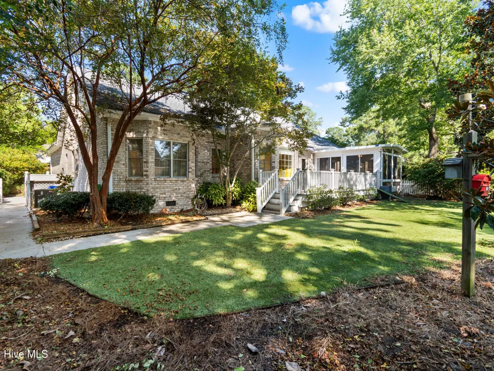 Welcome to Mermaid Manor in the heart of the historic district of St. James, NC. Surrounded by mature trees, 4 golf courses, tennis courts, and pools, you will be delighted by this all-brick home. Come sit and enjoy the beautiful front porch with slate-look concrete or enjoy the back Trex deck. Or even sit in the wonderful three-season room surrounded by screens and large windows to enjoy the evening stars. The backyard is dog-friendly and very little upkeep for its owners, including a white picket fence and dog grass. No mowing required. Mature plantings surround the house and the National Wildlife Garden designation has been earned by the owner. Camellias, azaleas, and Magnolias surround this 5-bedroom house.Inside, enjoy a large, well-lit living room, a spacious bonus room upstairs, and three and a half baths. Meticulously maintained and thoughtfully updated, this home features newer systems, flooring, kitchen and baths, solar panels, and a range of functional and stylish improvements throughout. Skylights throughout with protective film, a large primary bedroom closet, jacuzzi tub, and new countertops add comfort and style.The large two-car garage includes a tiled laundry area, perfect for shaking out sandy towels and bathing suits before stepping onto the hardwood floors downstairs. Upstairs carpeting in two bedrooms and laminate floors throughout make cleaning easy. The kitchen offers propane instant hot water, water filtration system, gas cooktop, and an electric stove for ease of cleaning. A fireplace warms the living room, and the encapsulated crawl space with a dehumidifier adds peace of mind. Leaf guard gutter covers minimize maintenance.This maintenance-free home lets you spend more time at the beach, playing tennis or golf, and enjoying all your new friends in St. James.