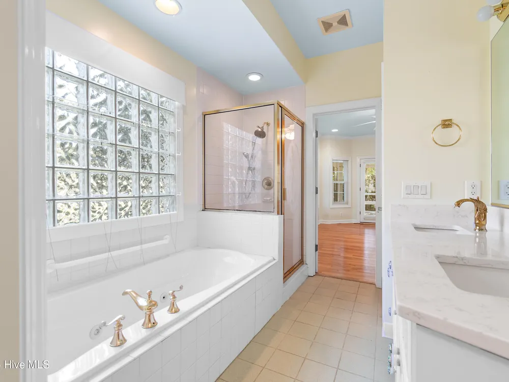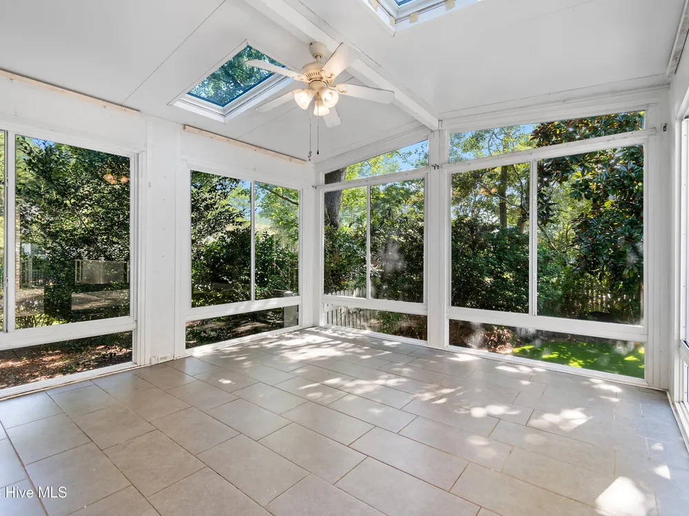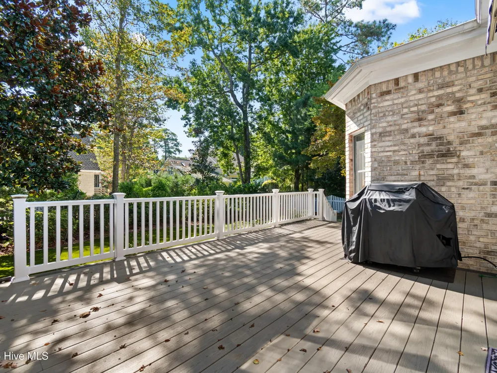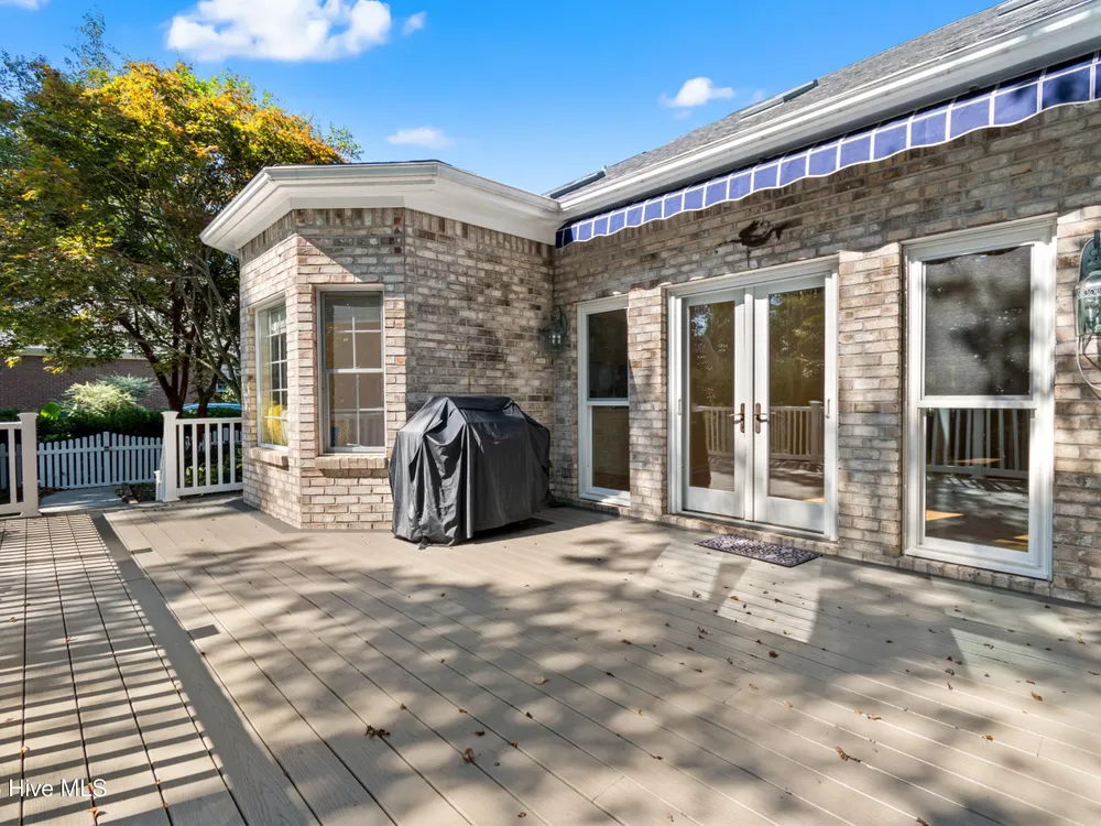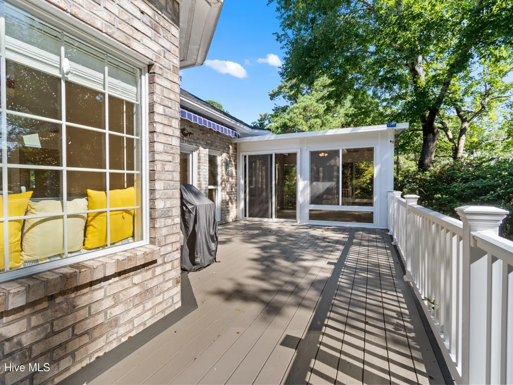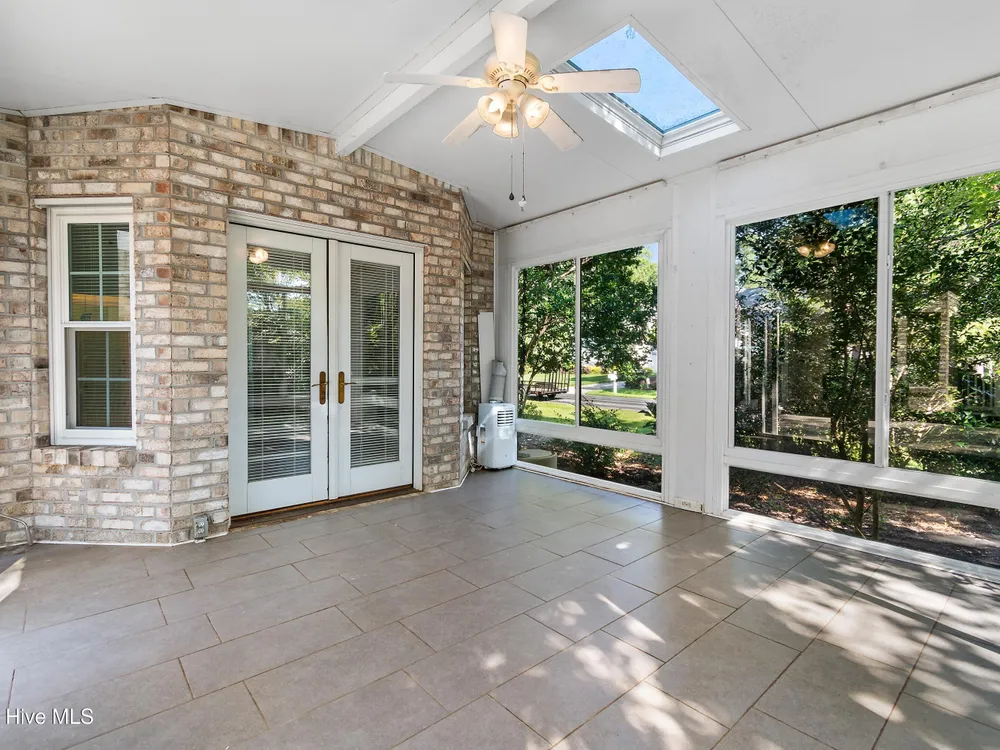 Welcome to Mermaid Manor in the heart of the historic district of St. James, NC. Surrounded by mature trees, 4 golf courses, tennis courts, and pools, you will be delighted by this all-brick home. Come sit and enjoy the beautiful front porch with slate-look concrete or enjoy the back Trex deck. Or even sit in the wonderful three-season room surrounded by screens and large windows to enjoy the evening stars. The backyard is dog-friendly and very little upkeep for its owners, including a white picket fence and dog grass. No mowing required. Mature plantings surround the house and the National Wildlife Garden designation has been earned by the owner. Camellias, azaleas, and Magnolias surround this 5-bedroom house.Inside, enjoy a large, well-lit living room, a spacious bonus room upstairs, and three and a half baths. Meticulously maintained and thoughtfully updated, this home features newer systems, flooring, kitchen and baths, solar panels, and a range of functional and stylish improvements throughout. Skylights throughout with protective film, a large primary bedroom closet, jacuzzi tub, and new countertops add comfort and style.The large two-car garage includes a tiled laundry area, perfect for shaking out sandy towels and bathing suits before stepping onto the hardwood floors downstairs. Upstairs carpeting in two bedrooms and laminate floors throughout make cleaning easy. The kitchen offers propane instant hot water, water filtration system, gas cooktop, and an electric stove for ease of cleaning. A fireplace warms the living room, and the encapsulated crawl space with a dehumidifier adds peace of mind. Leaf guard gutter covers minimize maintenance.This maintenance-free home lets you spend more time at the beach, playing tennis or golf, and enjoying all your new friends in St. James.