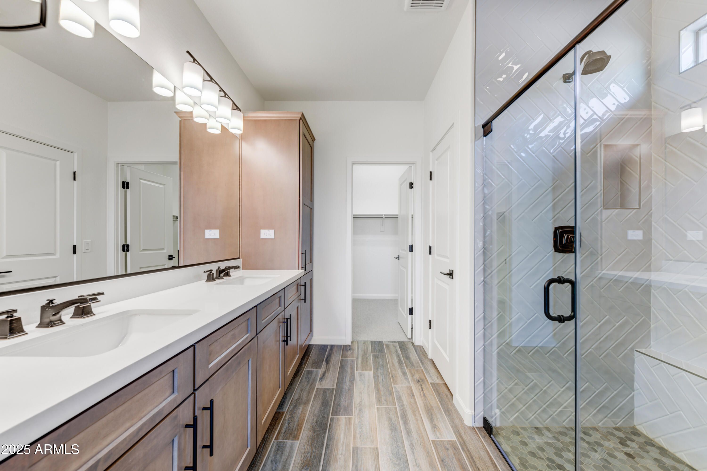 Stunning Shea-built Dream plan located in the sought-after Homestead neighborhood of Wickenburg Ranch! This 1,648 sq ft home offers 2 beds, 2 baths + den & showcases premium upgrades throughout. Enjoy the gourmet kitchen w/Profile induction built-ins, Hana Sky quartz, Mocha Spirit maple cabinets, LED undercab lighting, pendant prewires & multi-slide door to an extended patio. Designer tile flooring, quartz bath counters, heavy glass shower, & Boardwalk bronze fixtures elevate every detail. Includes 4' garage extension, custom landscaping, AV prewires & Belgard Sierra pavers. A beautiful blend of Shea quality & Homestead charm!