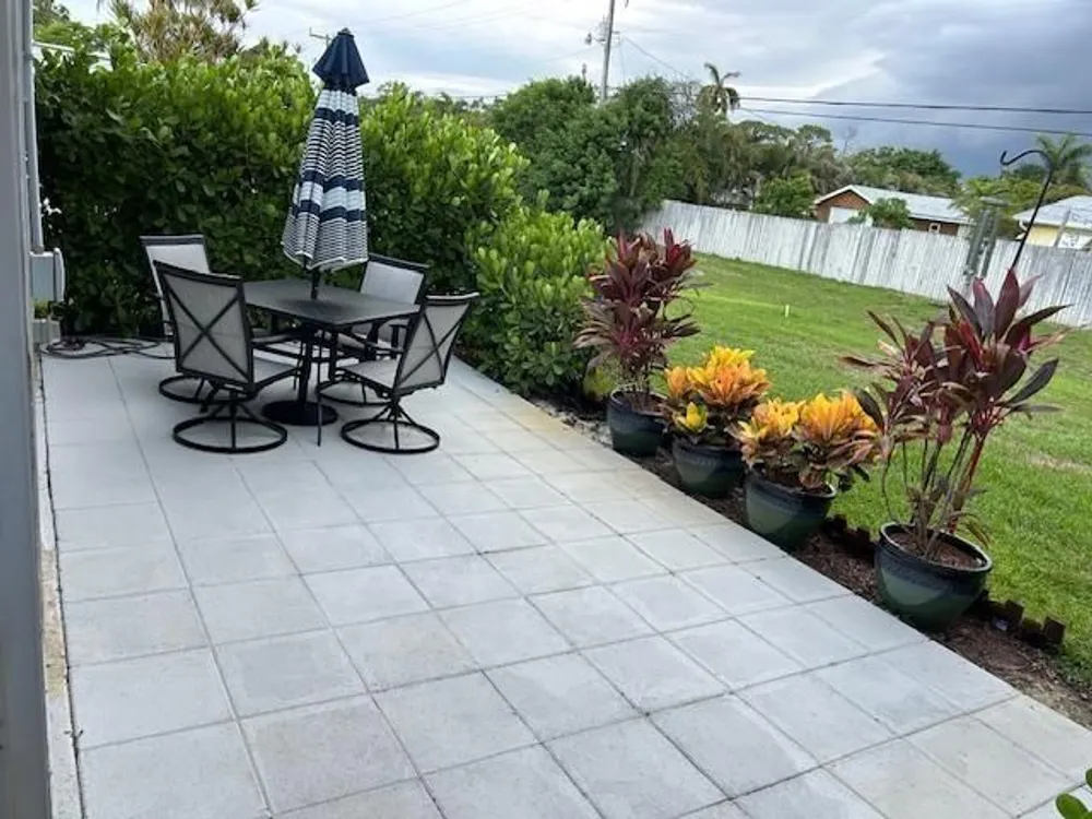Please see this amazing home right away ! It is the best home in the area ! Move in and go to bed, nothing to do !!All new flooring, new appliances, new roof, AC only a few years old, All new electrical box inside and outside. This home has French doors that lead to a huge outside screened patio with brand new fans that have lights. This leads out to a huge outside patio with privacy plants and overlooks a huge community back yard. Walk in closets, updated baths and full size washer and dryer. Come home and relax in this peaceful and warm community. Great neighbors and a great community. Go down the street and take a dip in the pool or use the community building for your big parties. As a Bonus, Accordian Shutters on all windows and Sliding glass doors. Minutes from Beach and dining.