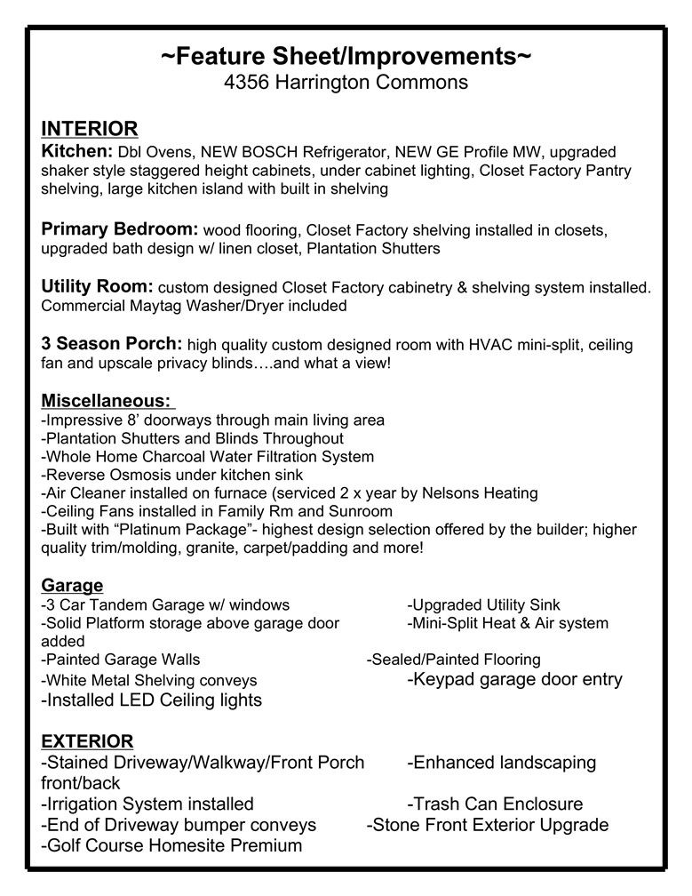 Welcome Home! Easy to see why the sought after Berkeley is so popular. Built with the highest design package offered by the builder and part of the largest series of homes built in Colonial Heritage. Located in the middle of the community and situated on one of the best golf course settings you'll find. A stunning stone front exterior, a large front porch and 8' front door leads you into a convenient & stylish layout...all on one floor. "The Kitchen"- it's the best, dbl ovens, generous granite countertops , upgraded cabinetry, NEW BOSCH Refrigerator, NEW GE Profile MW, a large pantry with Closet Factory system, a large & inviting island with eat-in-kitchen area just to the side. A lovely Primary BR with plenty of extras and a private guest bedroom with its very own bath. A spacious sunroom and custom 3 seasons room (includes Mitsubishi mini-split heating/air) provides a great spot to relax, entertain and enjoy the picturesque golf course setting. Enjoy the outdoors on the large custom paver patio surrounded by ambient lighting and enhanced landscaping. Three car tandem garage offers plenty of storage and is conditioned w/ a mini-split too. Well maintained and Move-in-Ready!