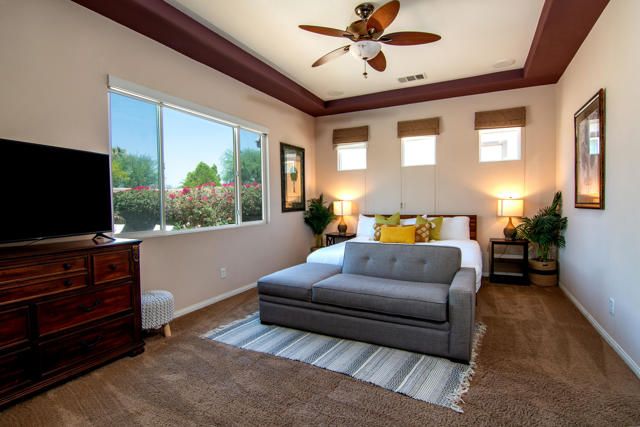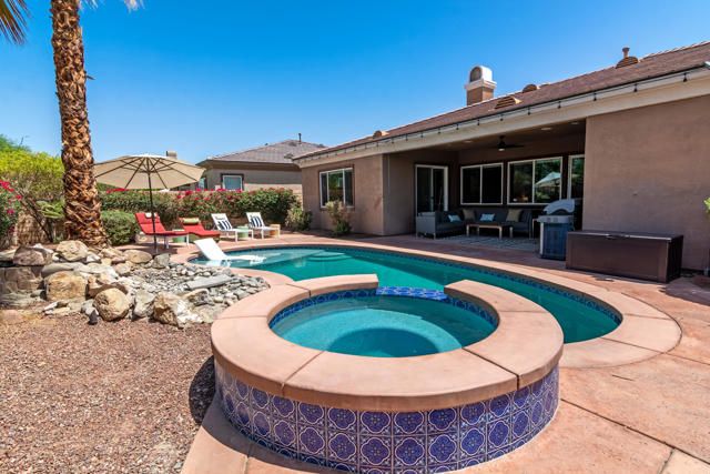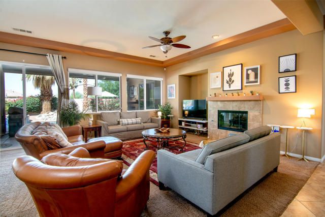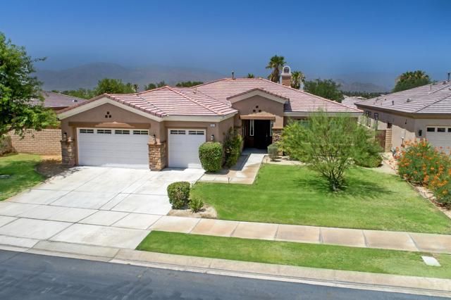Beautiful Terra Lago Pool/Spa home offers4 bedrooms, 3 baths. Spacious Great Room with Fireplace, Slider and Windows for Natural Light. Spacious Cook's Kitchen... you'll Appreciate this Efficient Kitchen w/Granite Breakfast Bar, lots of Countertop & Cabinetry Space! Refrigerator Included! Double Oven, 5 Burner Cooktop. Dining area off Kitchen with direct access to Covered patio/pool area. Family room and/or Dining off Kitchen w/Slider door to access Covered Patio, Private Pool & Spa! You'll love the versatility of this spacious, Open floor plan! King Sized Primary Suite w/ Slider door to covered patio. Enjoy Peak Mountain Views! Oversized closet. Primary bath w/Dual Sink Vanity, Separate Tub & Shower. Two Guest Bedrooms are generously sized with En-suite baths! 2nd Primary Suite w/private bath, King Sized Bedroom! 4th Bedroom off Great Room with peak Chocolate Mountain View! Laundry Room w/deep sink, storage cabinets, Washer & Dryer Included! 3 car garage. Backyard w/extended concrete. Large Pool & Spa, Gas Fire Pit, plenty of space for lounging & Entertaining on this oversized lot! This home features 3 slider doors to access the covered Patio, Pool & Spa! Gated Terra Lago allows Short Term Rentals. Check out adjacent Golf Club at Terra Lago for Golf (former homes to the Skins Games) Enjoy nearby Lake, Clubhouse, 24 hour access to Community Fitness Center, Community Parks. Great Location, close to Hiking, Shopping, Dining, Dynamic Entertainment... Acrissure Arena, Fantasy Casino & More!