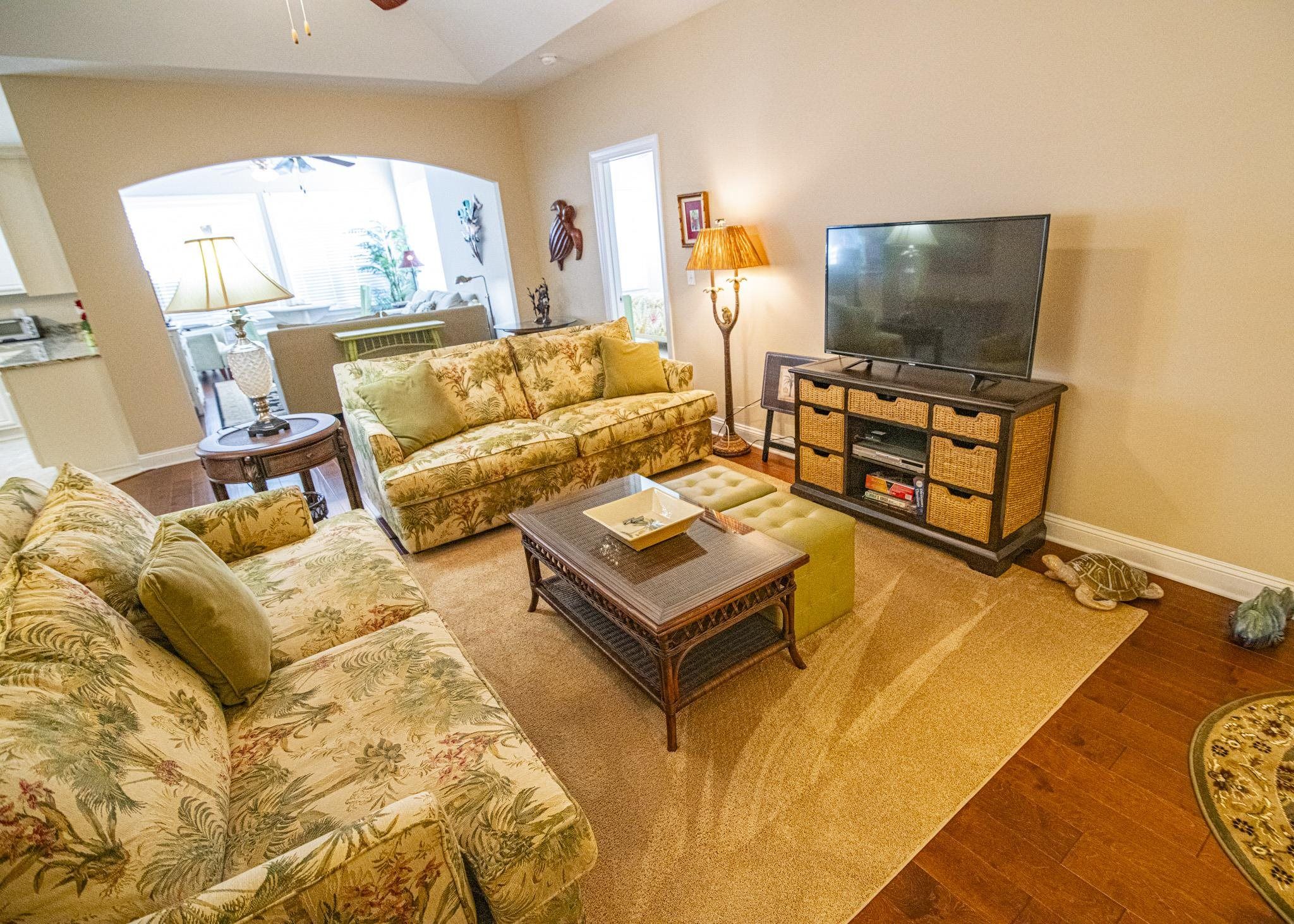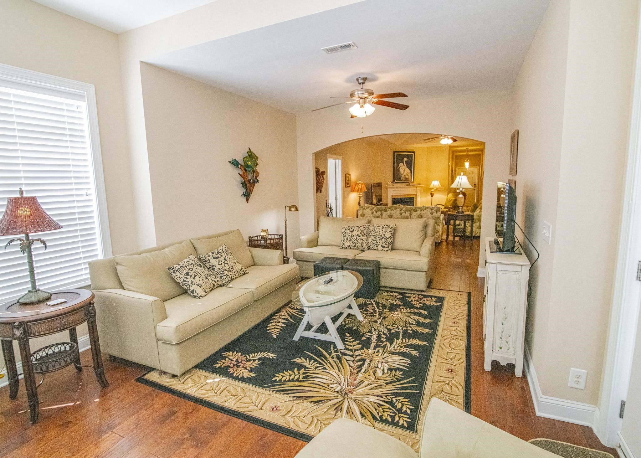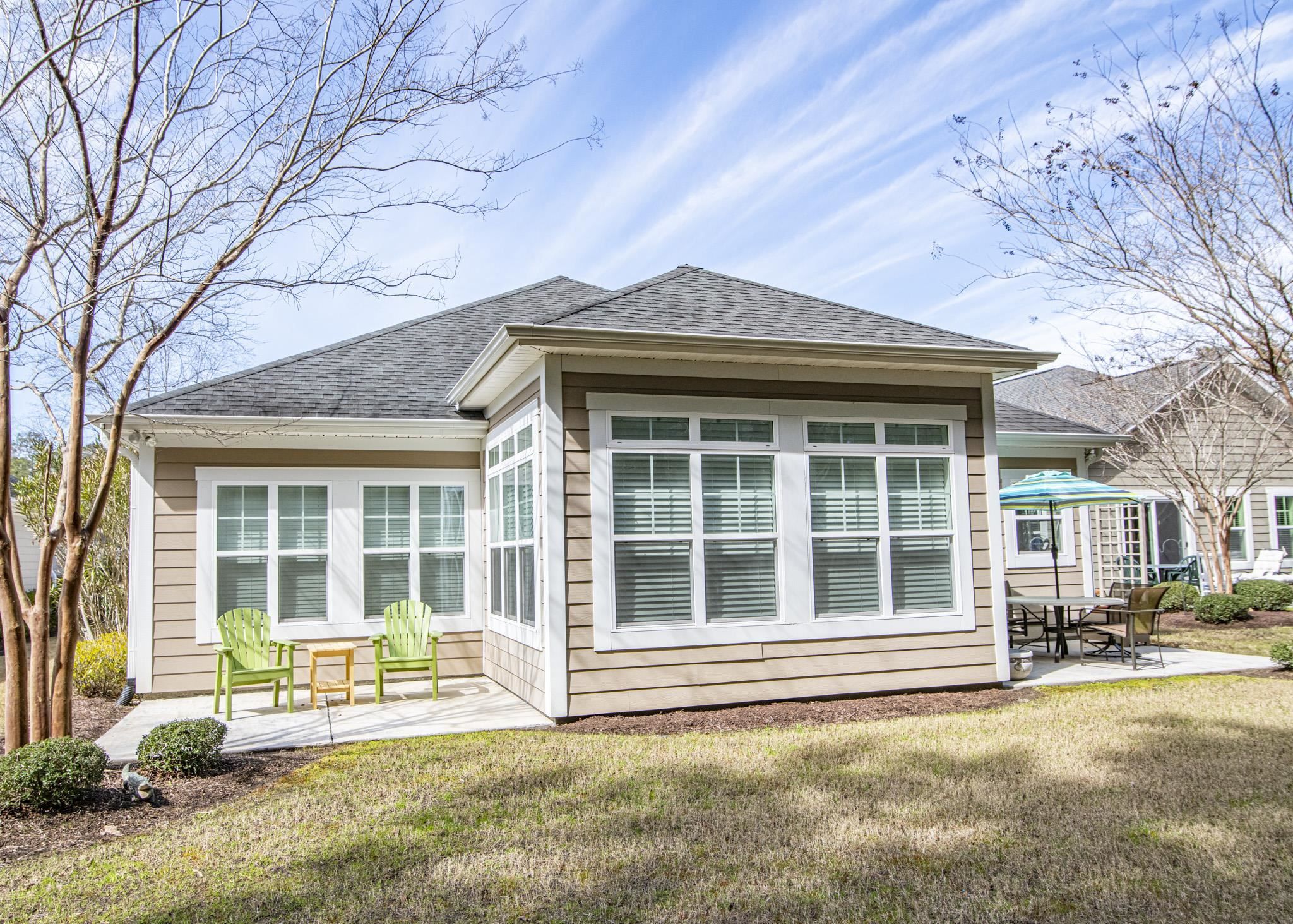 Welcome to this beautifully maintained ranch-style home offering spacious one-level living with exceptional natural light throughout. This 3-bedroom, 2-bath property features an inviting family room complete with a gas-log fireplace and ceiling fan, perfect for cozy evenings at home. A separate dining room with an elegant, coffered ceiling provides an ideal setting for gatherings and entertaining. The kitchen is designed for both functionality and style, showcasing stainless steel appliances, a work island, custom cabinetry, granite countertops, a large pantry, and a dedicated coffee bar—perfect for morning routines. Just off the main living area, the bright and airy Carolina room provides a relaxing space with abundant windows, a ceiling fan, and views of the backyard. The owner’s suite is thoughtfully positioned for privacy and includes a tray ceiling, two spacious closets, and an en-suite bath featuring a garden tub, tile shower, double-sink vanity, and generous natural light. The two additional bedrooms are located on the opposite side of the home and include ceiling fans, large closets, and easy access to the second full bath. A large two-car garage leads into a convenient mud room and laundry area. Enjoy outdoor living with a welcoming front porch ideal for sunset watching and two rear concrete patios perfect for morning coffee or quiet relaxation. Monthly HOA dues include trash pick-up, landscape maintenance, and access to community recreational facilities, offering low-maintenance living and excellent amenities. This home’s location provides easy access to championship golf courses, dining, shopping, healthcare, and the beach—everything you need to enjoy the best of the area. Filled with comfort, thoughtful details, and natural light throughout, this home is ready to welcome its next owners.