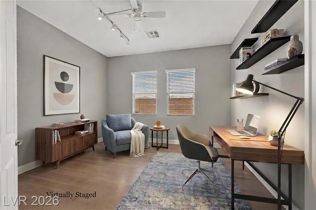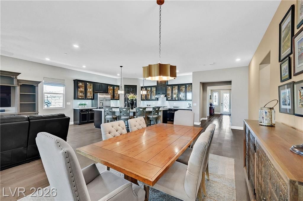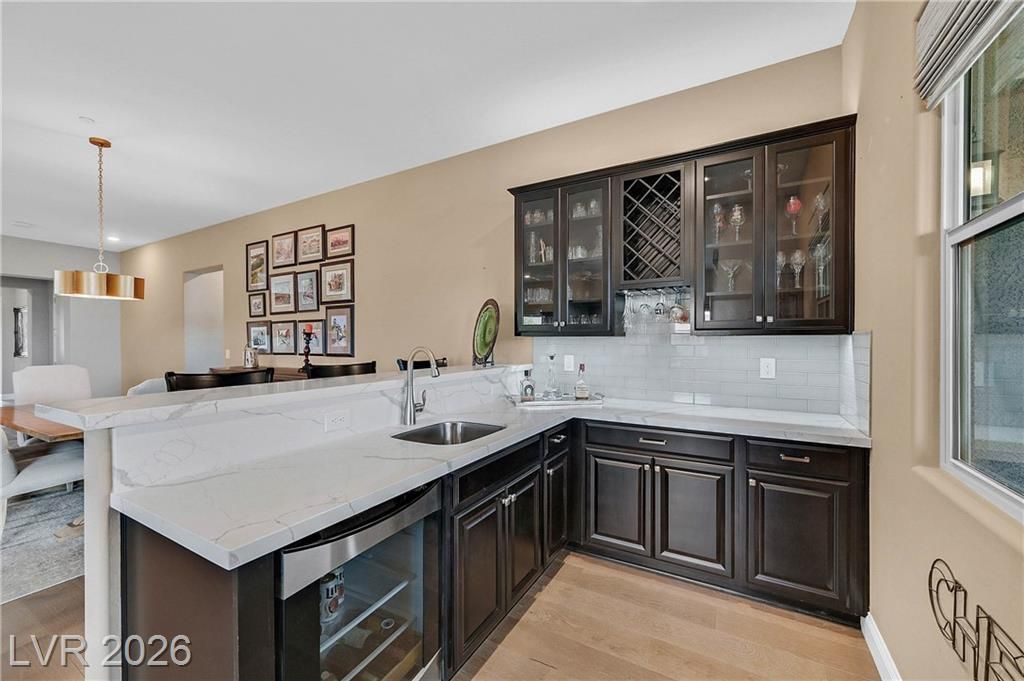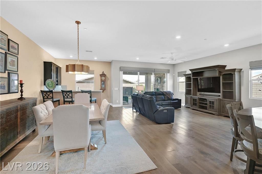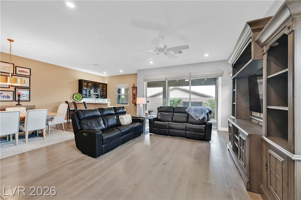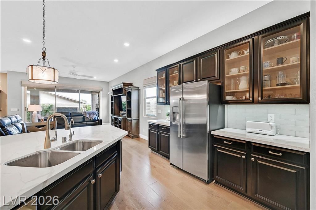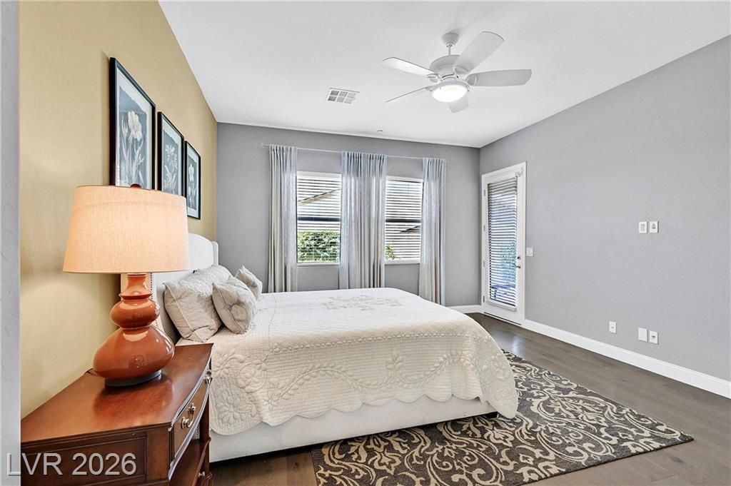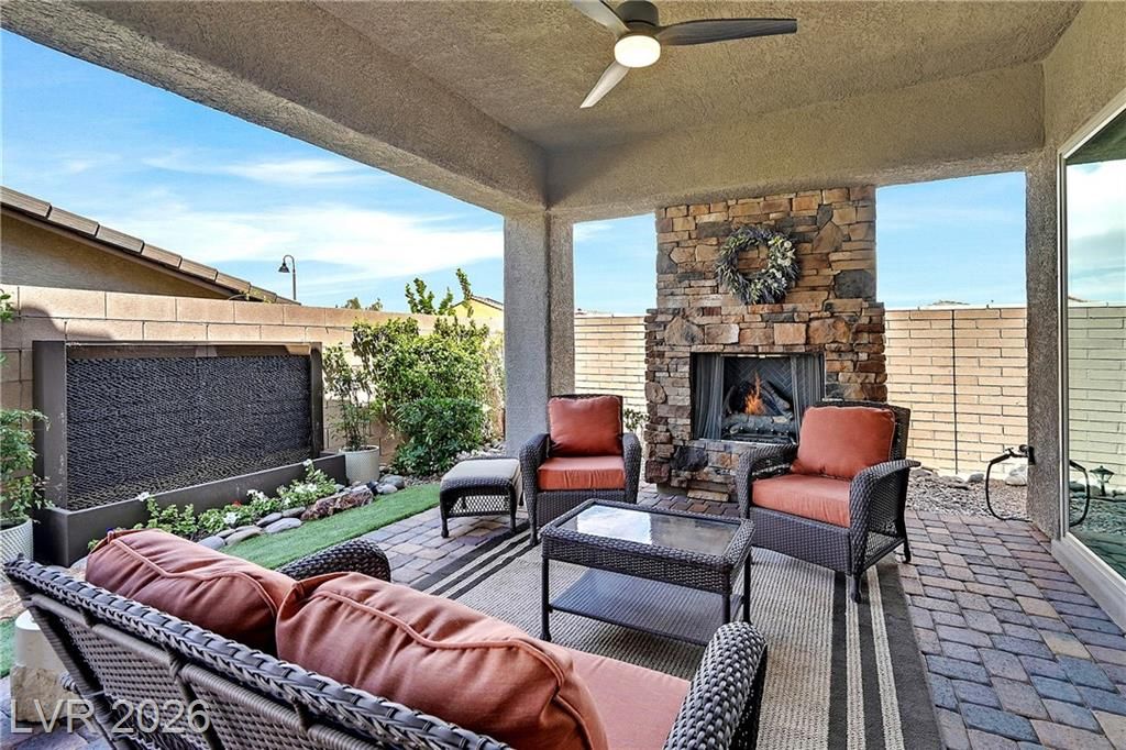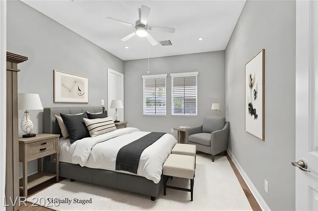 Beautifully upgraded Henderson home at 436 Lake Run Ave! This open-concept floorplan features manufactured hardwood flooring, 6” baseboards, and custom Levelor shades throughout. The kitchen is a showstopper with GE Café appliances, 5-burner double oven, Zephyr hood, Thermador drawer microwave, Carrara-style quartz island, black cabinetry, and full subway tile backsplash. Spacious primary suite fits a Cal-King and offers a luxurious bath with dual showerheads, bench, and large walk-in closet with built-ins. Private guest suite plus office with custom track lighting. Laundry room includes ample cabinetry, quartz counters, and utility sink. Enjoy a fully landscaped backyard with artificial turf, pavers, drought-tolerant landscaping, and custom water feature. Stone-wrapped fireplace, front columns, and hardwired landscape lighting. Built in 2019 with smart home features including Ring doorbell and ADT wiring. Move-in ready, highly desirable Henderson location near parks and shopping.