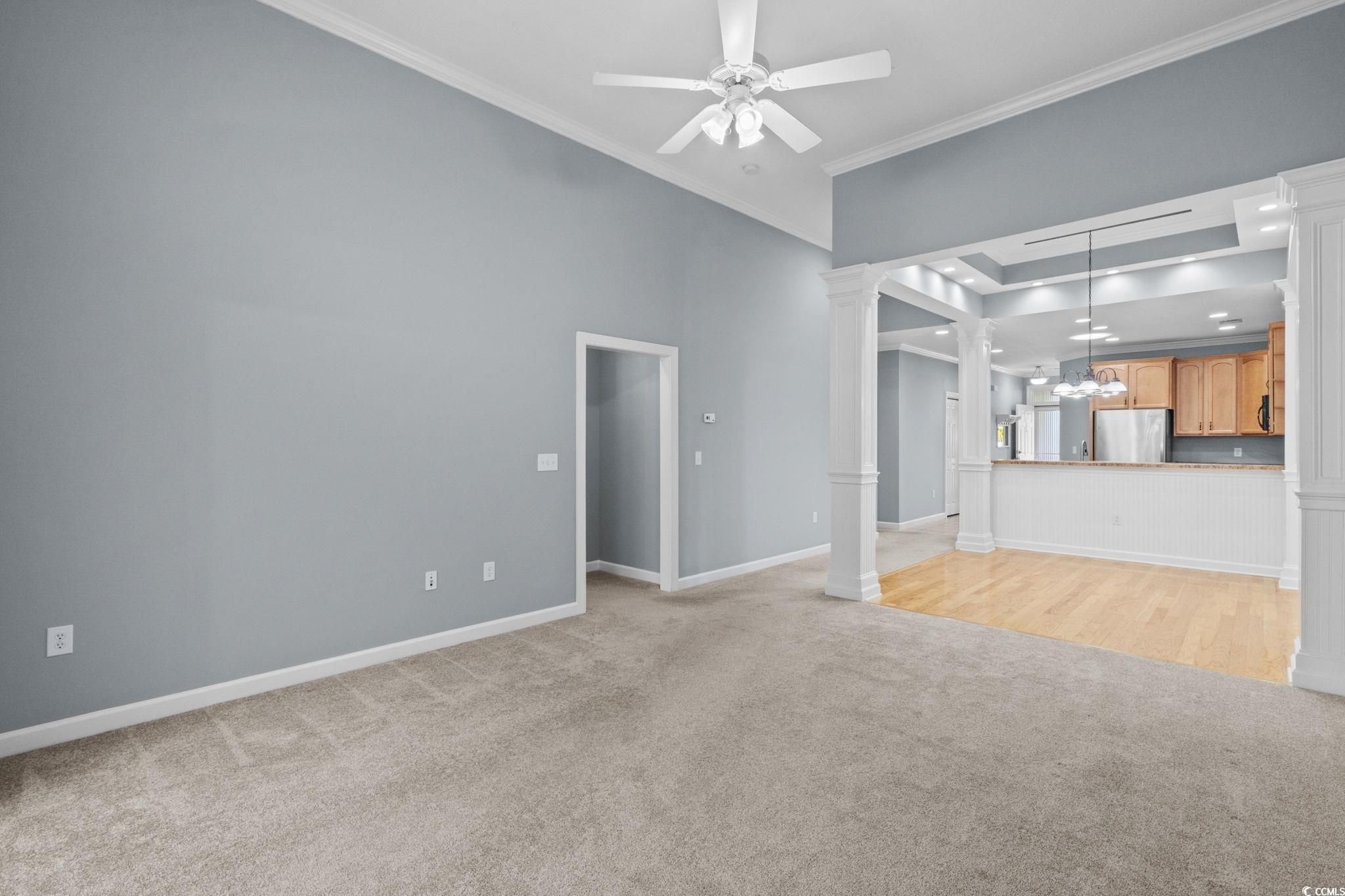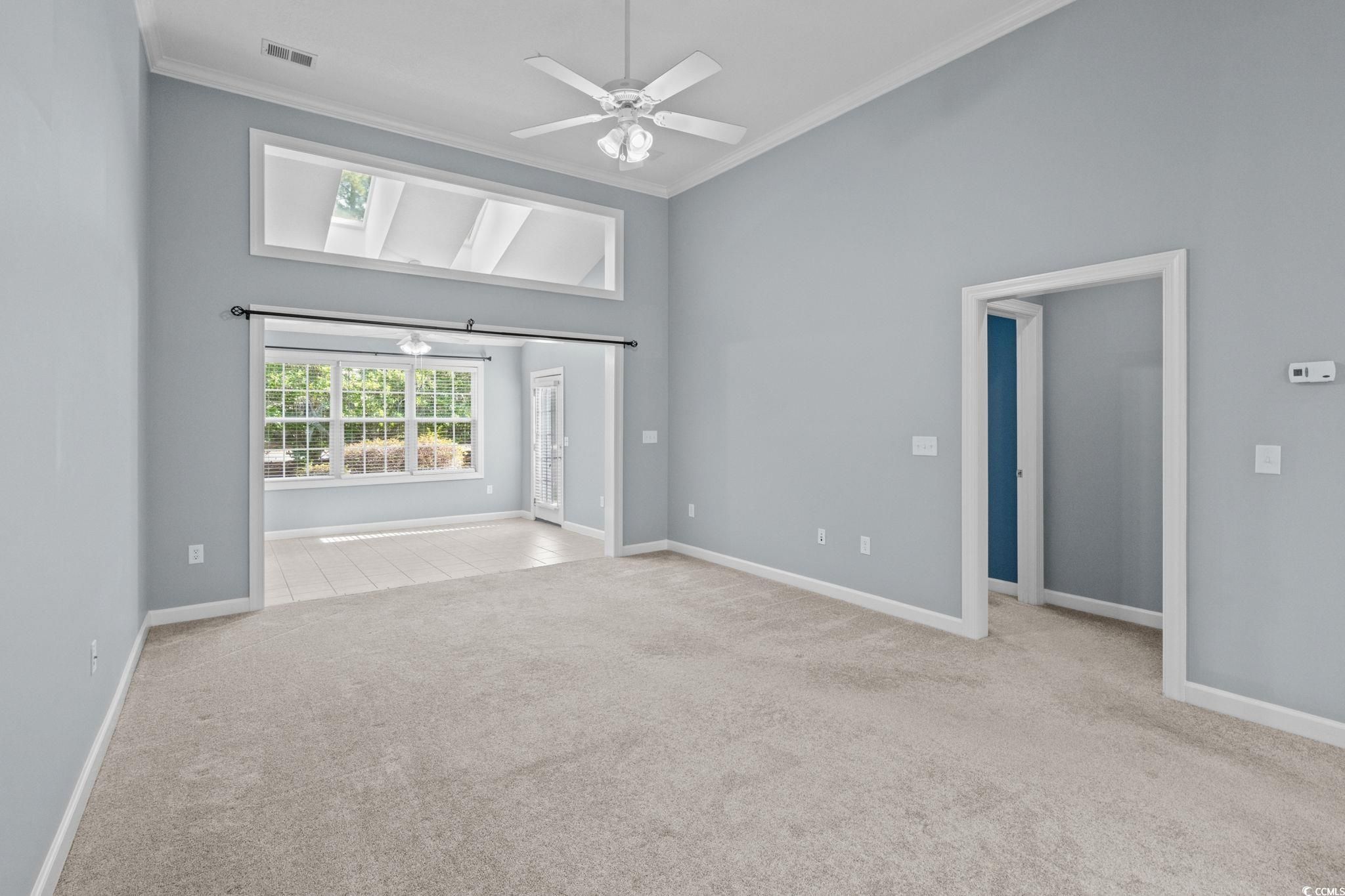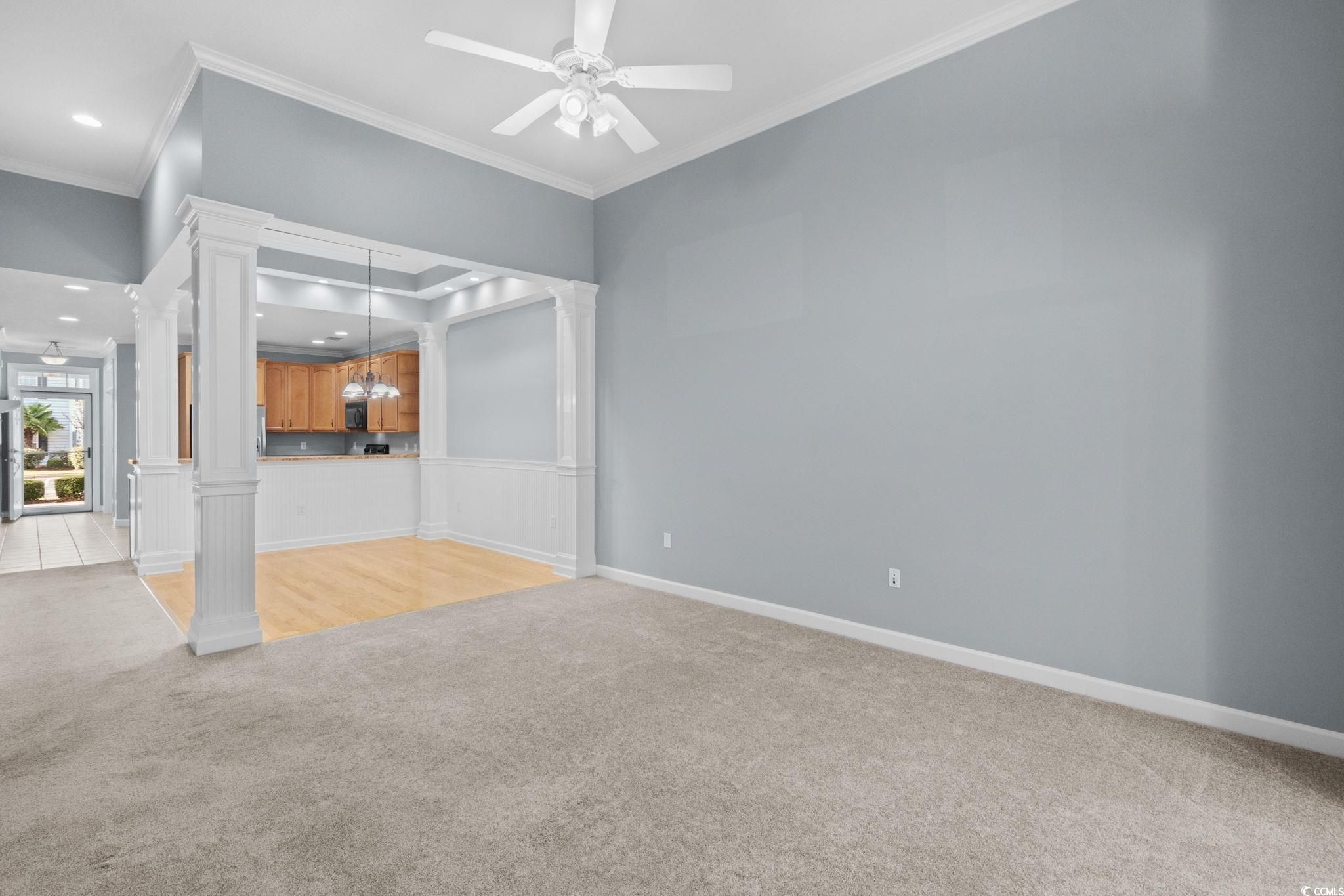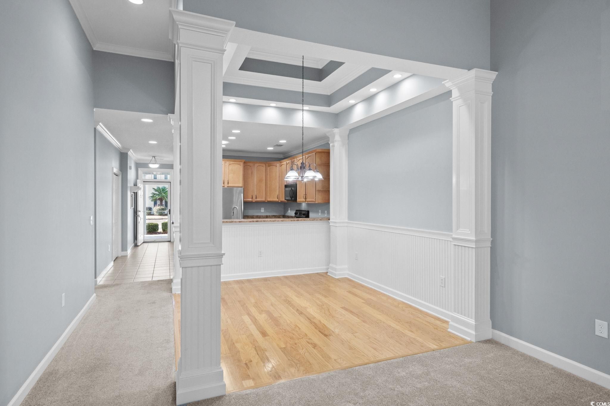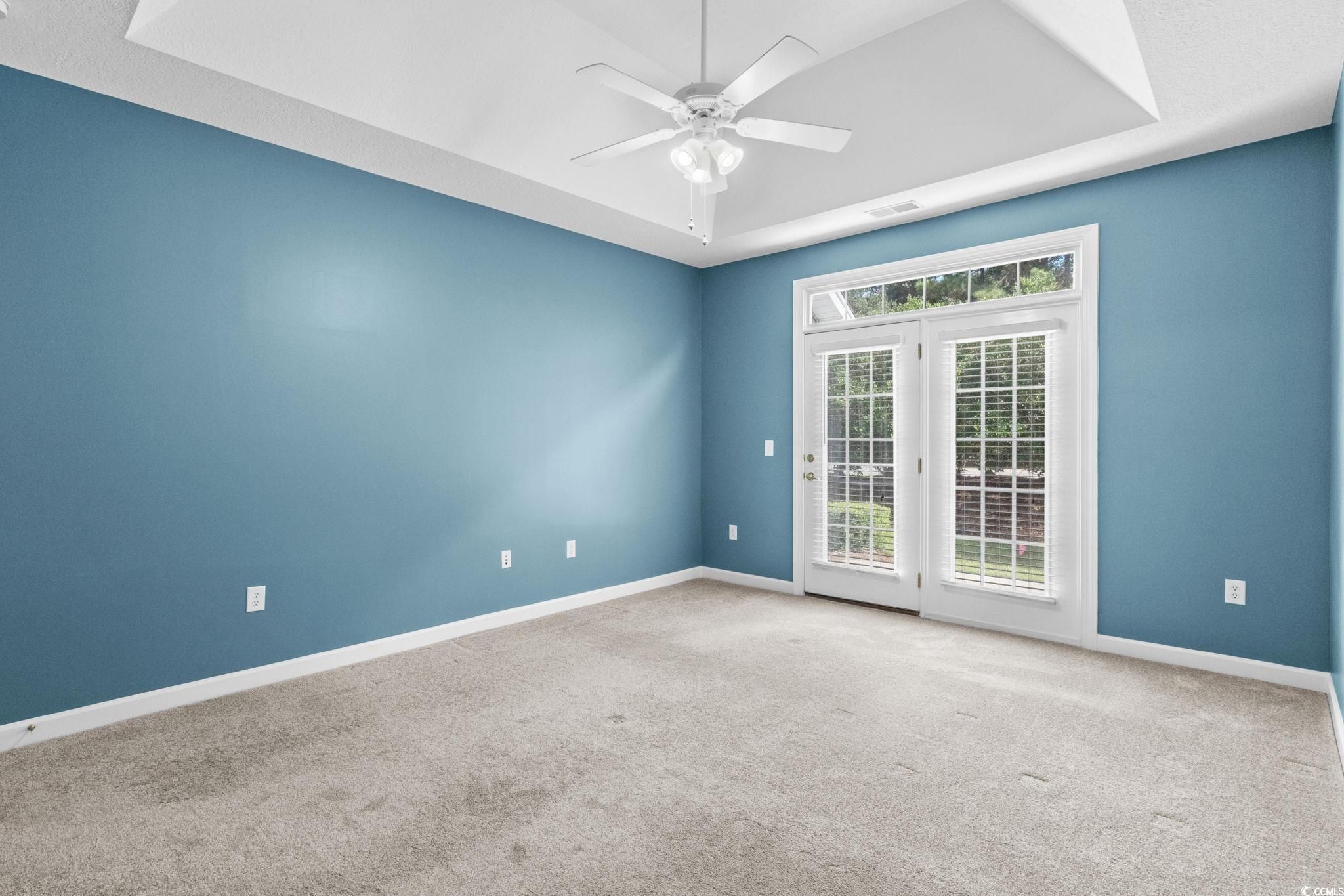 This rare all one-level townhouse offers 3 bedrooms, 2 full bathrooms, and a 2-car garage in a prime location. Inside, you’ll find an ideal floor plan with an office/bonus room, an open-concept kitchen overlooking the dining and living areas, and beautiful architectural details, including tray and vaulted ceilings. A bright Carolina room provides flexible living space, while the spacious primary suite features a tray ceiling, a massive walk-in closet, and a spa-like bath with double sinks, soaking tub, and separate shower. Guest bedrooms are generously sized, and the home also includes a large laundry room for added convenience. Enjoy your private backyard from the roomy patio, perfect for grilling or relaxing. The 2-car garage even has room for a golf cart, making it easy to enjoy nearby restaurants, grocery stores, and the Gary Player–designed Blackmoor Golf Course.