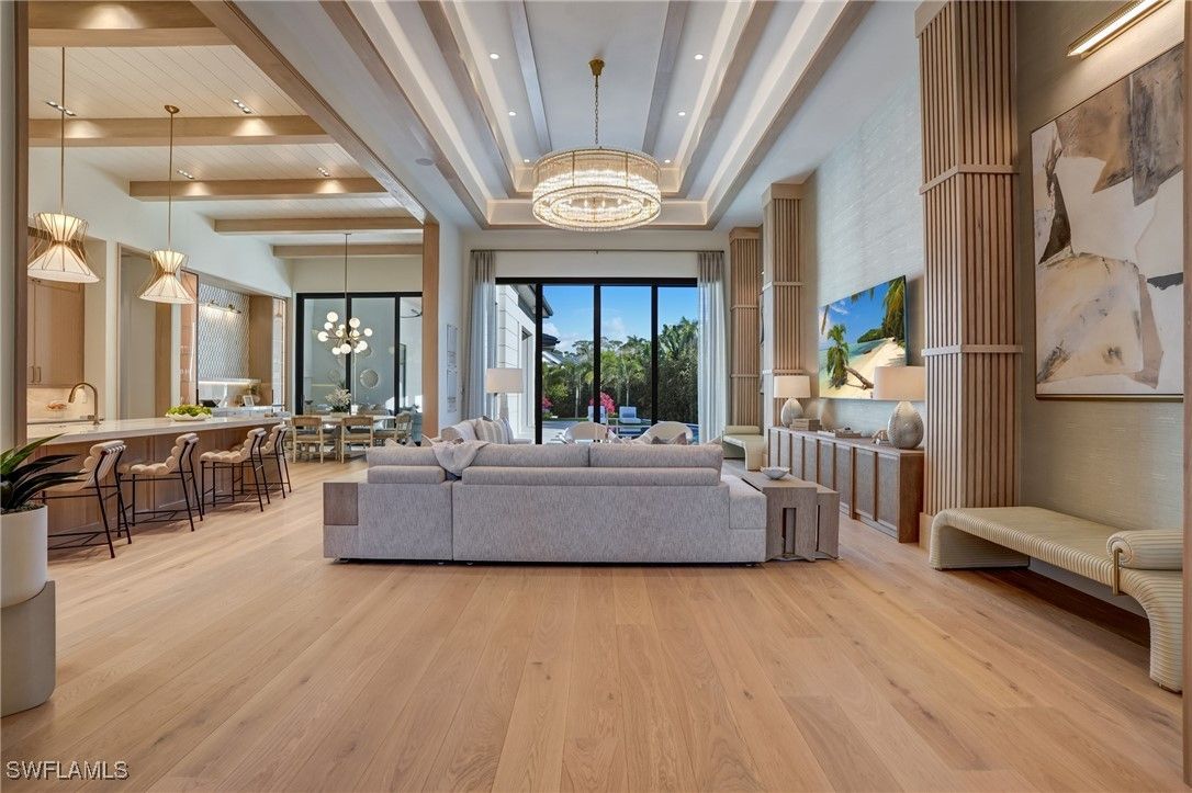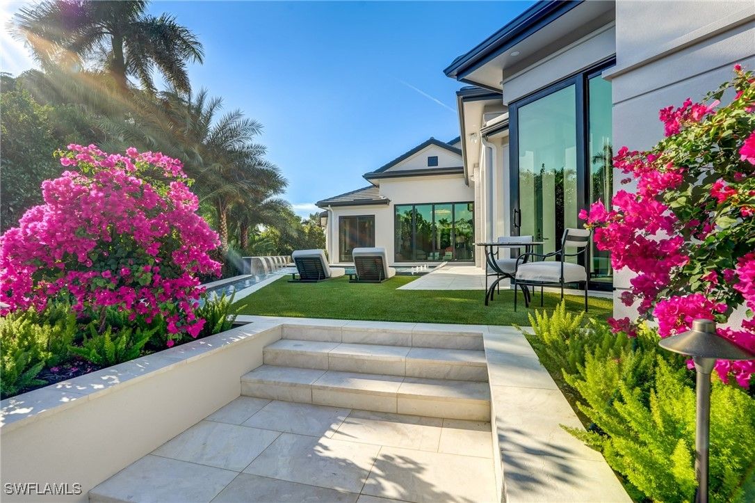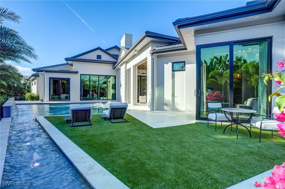 Introducing an extraordinary new construction estate in The Moorings—crafted by Borelli Construction, one of Naples’ longest-standing family-owned luxury builders. Designed by Unique Hite Designs with interiors and furnishings by R & Co. Designs, this single-level residence offers 5,156 square feet of impeccably curated living space on nearly a half-acre cul-de-sac homesite. A sense of arrival begins before entering the home, where custom water features and lush landscaping create a serene first impression. Inside, the home showcases European wide-plank white oak flooring, Samsung Frame TVs, Crestron Home automation, and a level of bespoke detail rarely found—every space thoughtfully layered with custom wall treatments, woodwork, or lighting selections. The floor plan features five en-suite bedrooms with fully built-out closets, plus a stunning home office wrapped in bleached walnut millwork with integrated LED lighting. The chef’s kitchen centers around a book-matched quartzite stone island with waterfall edges and includes a 60" Wolf range with double griddle, full Sub-Zero refrigeration, a full-size wine column, and a butler’s pantry equipped with additional Wolf appliances. The primary suite is a private retreat with a sitting room overlooking the pool and tranquil backyard. Designer window treatments include hardwired, Crestron-integrated shades throughout. The outdoor living experience is exceptional. An oversized pool and spa with custom pebble finish, sun shelf with in-water loungers, expansive grassy yard, and a massive outdoor kitchen in the covered lanai, protected by retractable screens and hurricane shutters, create the perfect setting for relaxation and entertaining. Additional features include three garage spaces plus a dedicated golf cart garage, thoughtful storage, and a location moments from The Moorings Golf & Country Club and minutes to downtown Naples. A rare offering with unmatched craftsmanship and design—this home is truly one of one and an absolute must-see.