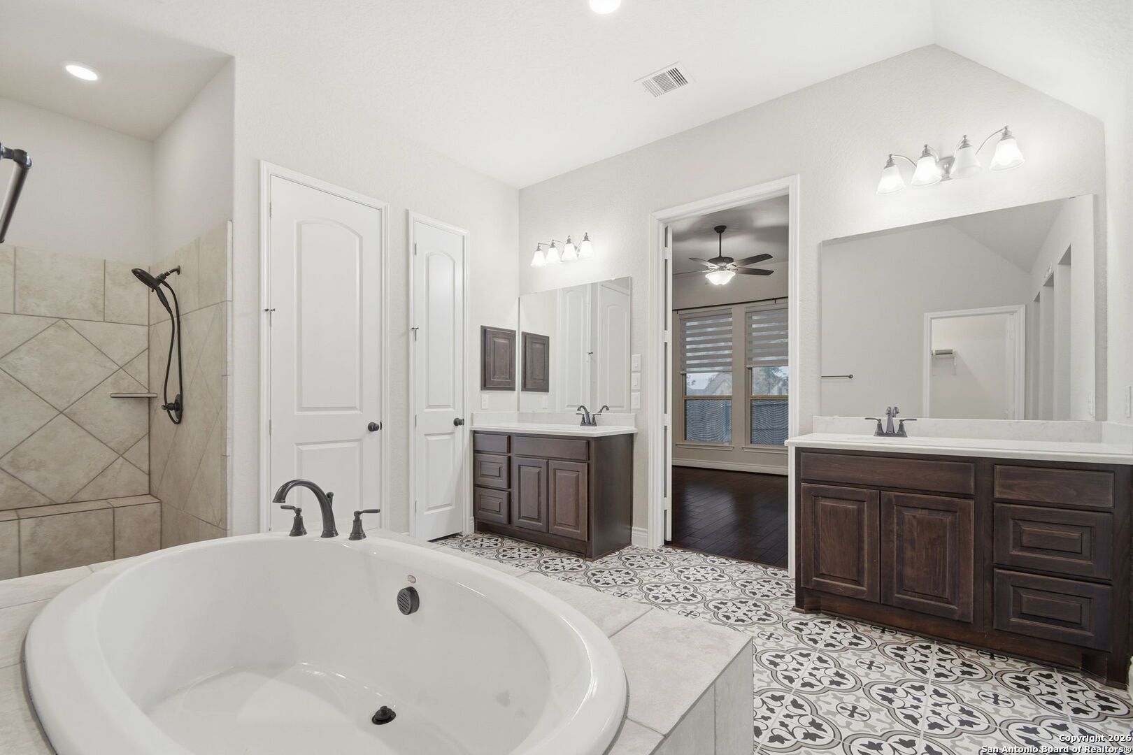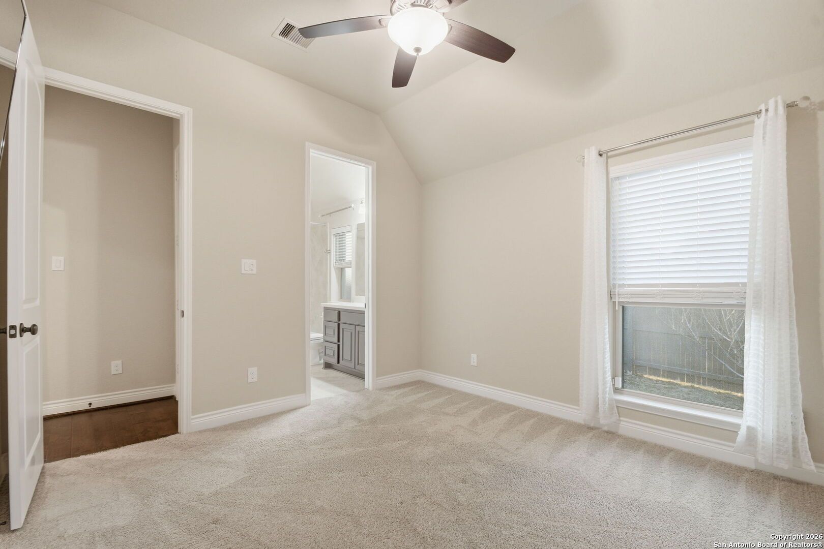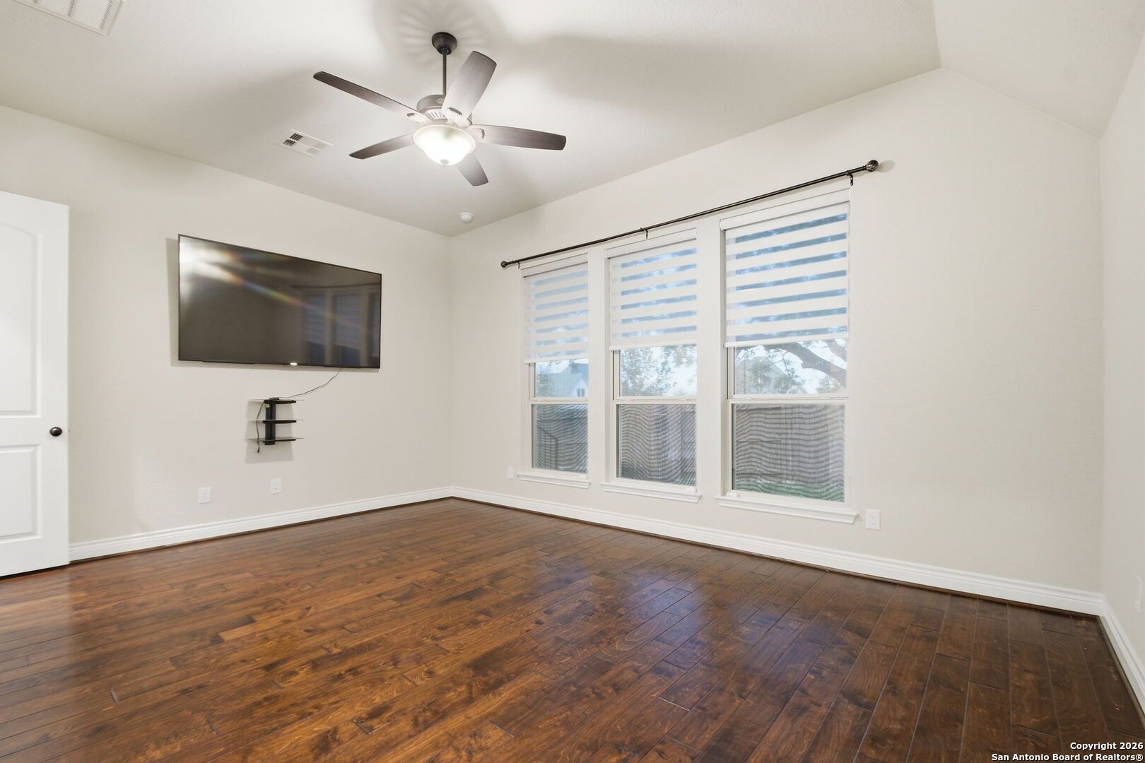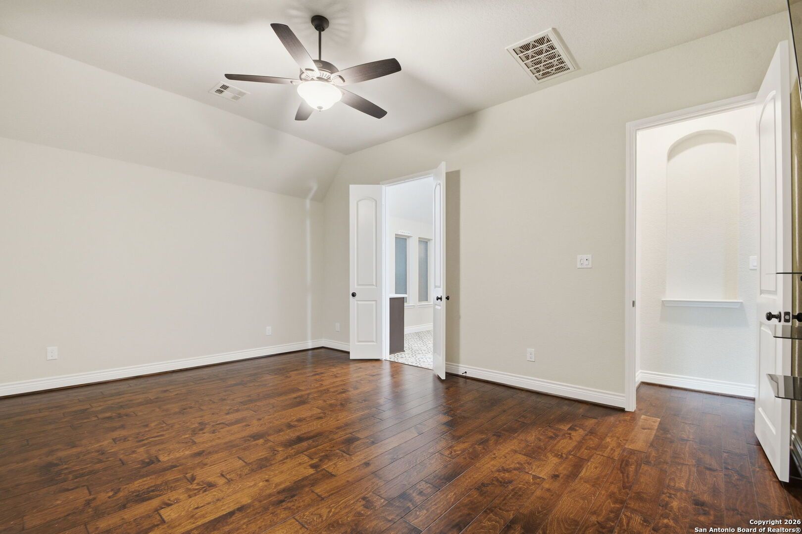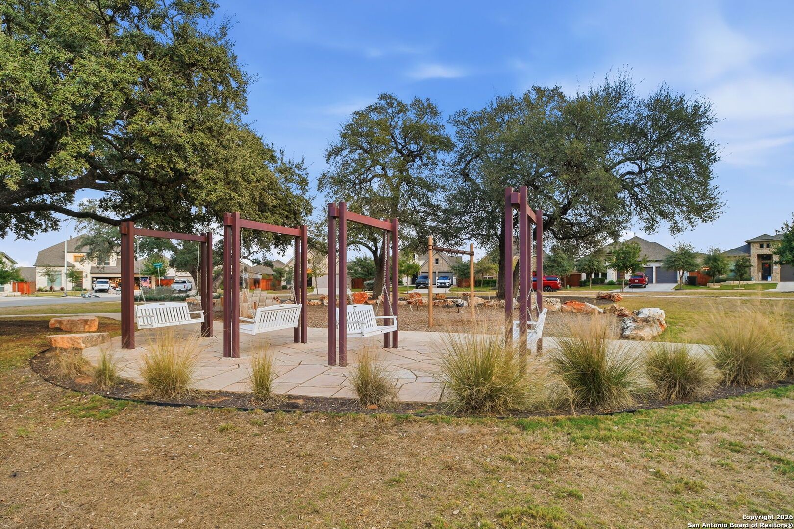 Beautifully maintained 4-bedroom, 3-full-bath home with a dedicated office in the sought-after Veramendi community, ideally positioned on a premium corner lot near one of Veramendi's pocket parks. Compared to similar Veramendi homes, this property offers a larger lot footprint, providing extra space, privacy, and curb appeal that truly sets it apart. Inside, the home feels lightly used and exceptionally well preserved, featuring upgraded wood flooring throughout the main living areas. Thoughtful enhancements include solar screens for improved energy efficiency and a water softener. One of the bedrooms offers a private ensuite bathroom, making it ideal for guests, multigenerational living, or a flexible secondary primary suite. The residence has seen minimal day-to-day occupancy in recent years, contributing to its like-new condition while reflecting pride of ownership. Located just steps from Emerson Park, this home provides easy access to walking trails, green space, and the signature lifestyle Veramendi is known for. A rare opportunity to own a move-in-ready home on a larger corner lot in one of New Braunfels' most desirable master-planned communities.