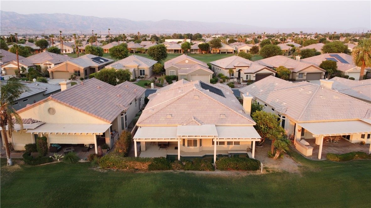 Don't miss your chance to own a stunning home in one of the most coveted locations within Heritage Palms, an exclusive 55+ gated golf course community. Perfectly positioned along the 5th fairway, this residence combines privacy, comfort and breathtaking views. A welcoming stone entry opens to a bright foyer and spacious open concept living area. The large kitchen boasts abundant cabinetry, a pantry, and plenty of counter space, flowing seamlessly into the living room with cozy fireplace. With 2 bedrooms, 2 bathrooms, and versatile den with double doors - ideal as an office or guest room - this home offers both flexibility and function. The primary suite is thoughtfully located on the west side of the home, keeping mornings cool and comfortable. Recent flooring upgrades make this home completely move in ready and truly turnkey. A two-car garage with an additional nook for your golf cart ensures both convenience and practicality. Step outside to a backyard designed for relaxation and entertaining. Enjoy your own sparkling pool, spa, and fruit trees while taking in the panoramic mountain views. With a west-facing yard, you'll witness some of the most beautiful sunsets in the desert - all from the privacy of your own retreat. Best of all, while you're right on the golf course, this home has had no stray balls in over five years of ownership. Whether you're sipping morning coffee as birds and early golfers pass by, or winding down at night under the glowing skies, this home offers a lifestyle that feels worlds away - yet right in the heart of Heritage Palms.