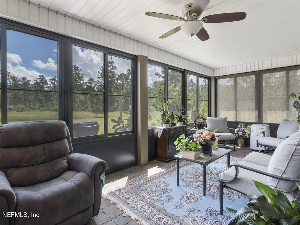 Welcome to easy living in Azalea Ridge's Freedom 55+ gated community! Built in 2019, this 3-bedroom, 2-bath home sits on a spacious half-acre lot that's beautifully maintained by the HOA, so you can enjoy the privacy and open feel without the upkeep. The home backs up to peaceful water and preserve views, giving you a daily dose of nature right from your windows. Inside, you'll find an open floor plan with plenty of natural light, connecting the living, dining, and kitchen areas seamlessly. A flex room with French doors makes a great office, hobby space, or extra bedroom. Upgrades include shed, wood-look tile in the main areas, durable, commercial grade vinyl flooring in the bedrooms, a large walk-in shower with a bench in the primary bath, and a laundry room with cabinets for extra storage. The sunroom is the perfect spot to relax year-round, soaking in the views and natural light. This home blends comfort, style, and convenience in a welcoming community designed for enjoying life. Home Features Include: water softener whole house gutters extended patio pavers arbor for swing stone bench 10x12 shed preserve/pond view 1/2-acre lot 9.2x22 Sunroom Partial Fence Wood look tile in wet & living areas Commercial grade glue down waterproof luxury Vinyl in bedrooms 42 inch cabinets with pulls cabinets in laundry room with W/D Refrigerator Kitchen 2- walk in tile showers primary with bench seat Turner pest/ termite bond Ring door bell Vivint Security with camera in front and back flex room with French doors HOA maintained lawn Amenity Center director: pool, bocce ball court and dog park. Plus Access to the main Azalea Ridge Amenities