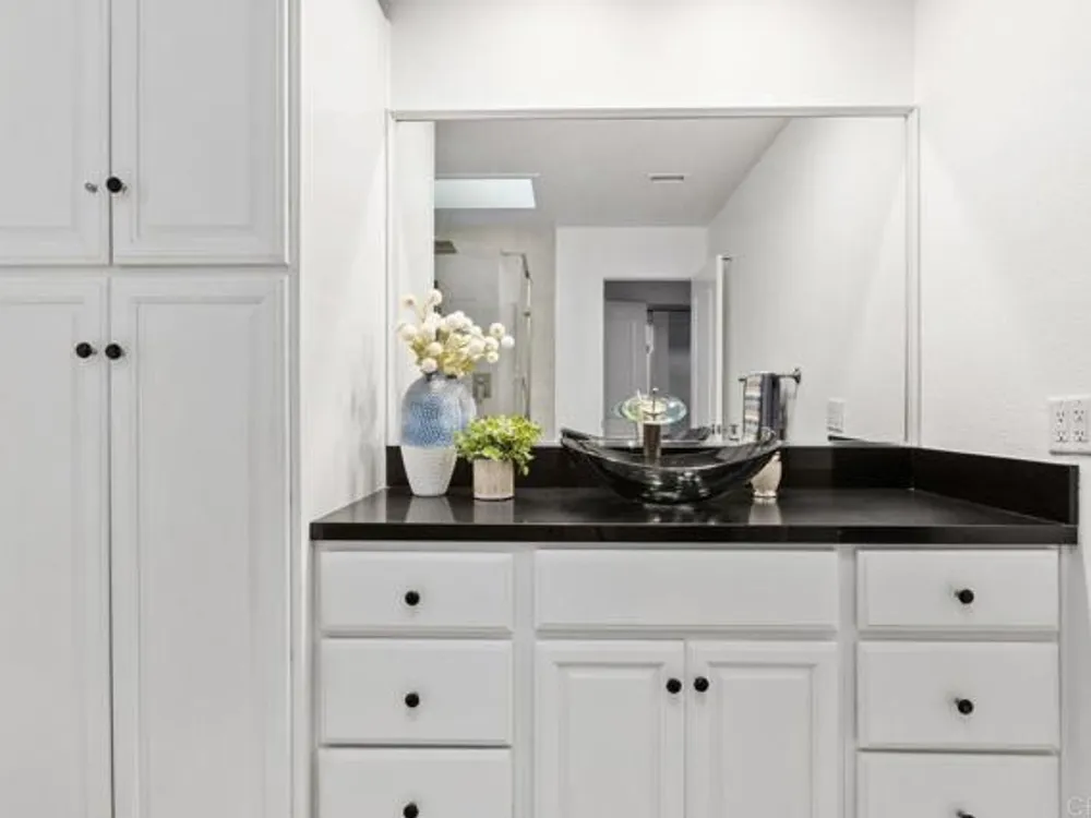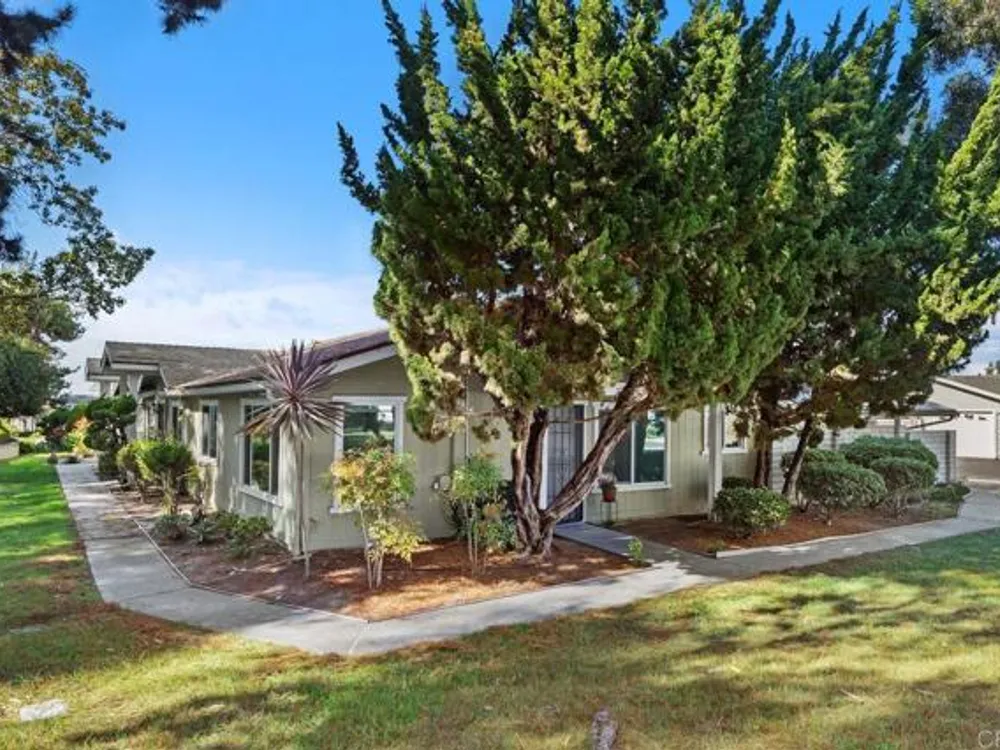 Oceana Mission IV – Retirement Living at Its Finest! This beautifully updated single-story end unit offers tranquil views of a lush, park-like greenbelt and is completely move-in ready with fresh paint, newer dual-pane windows with blackout shades, wood laminate flooring throughout, mirrored closets with built-ins, and a guest bath featuring a wheelchair-accessible walk-in shower. Modern upgrades include a newer HVAC system, water softener, and a Ring security system covering both the patio and driveway. The attached one-car garage and vinyl-fenced carport-patio area provide ideal space for pets and outdoor enjoyment. Perfectly located near Oceanside's top conveniences, you'll enjoy easy access to El Corazon Senior Center, Mission San Luis Rey, grocery stores, dining, medical facilities like Tri-City Hospital, and recreational destinations including downtown Oceanside, scenic lakes, and the harbor. The HOA offers a clubhouse, billiards, fitness center, pool, and spa-everything you need for active, comfortable retirement living.
