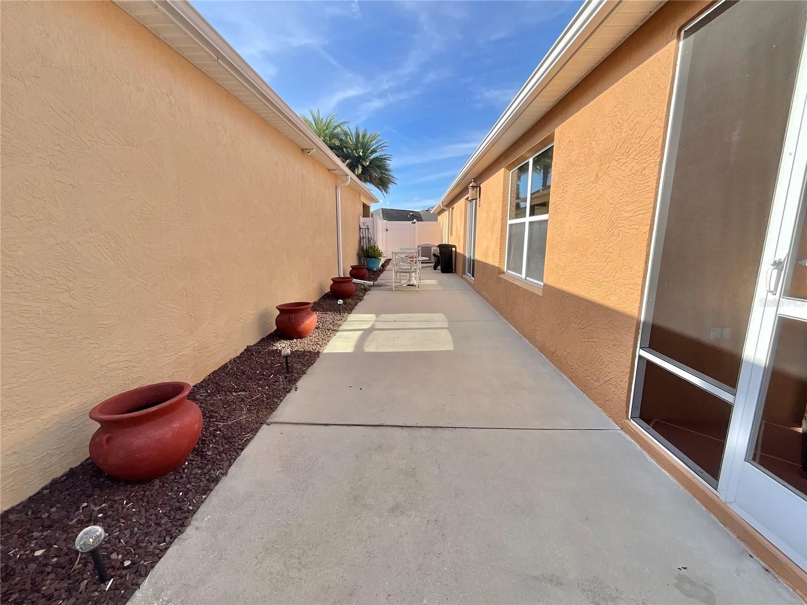 One or more photo(s) has been virtually staged. Welcome to this gem in the Village of Sumter Hacienda of Mission Hills, ideally located between Spanish Springs and Lake Sumter Landing. This charming 2-bedroom, 2-bath Courtyard Villa features an open floor plan and is situated on a large fenced corner lot, creating your own private outdoor oasis with plenty of room for a pool or space for your fur babies to play. Enjoy added privacy with no rear neighbors and incredible outdoor living potential perfect for relaxing or entertaining. Inside, you’ll find vaulted ceilings throughout, plus a tray ceiling in the spacious primary bedroom, creating an open and inviting feel. The home also features an extended large 1.5-car garage and side-by-side driveway parking for added convenience. Incredible sale price includes golf cart, this home is ready for you to start enjoying The Villages lifestyle right away.