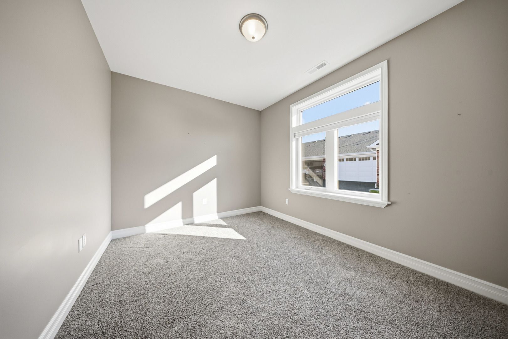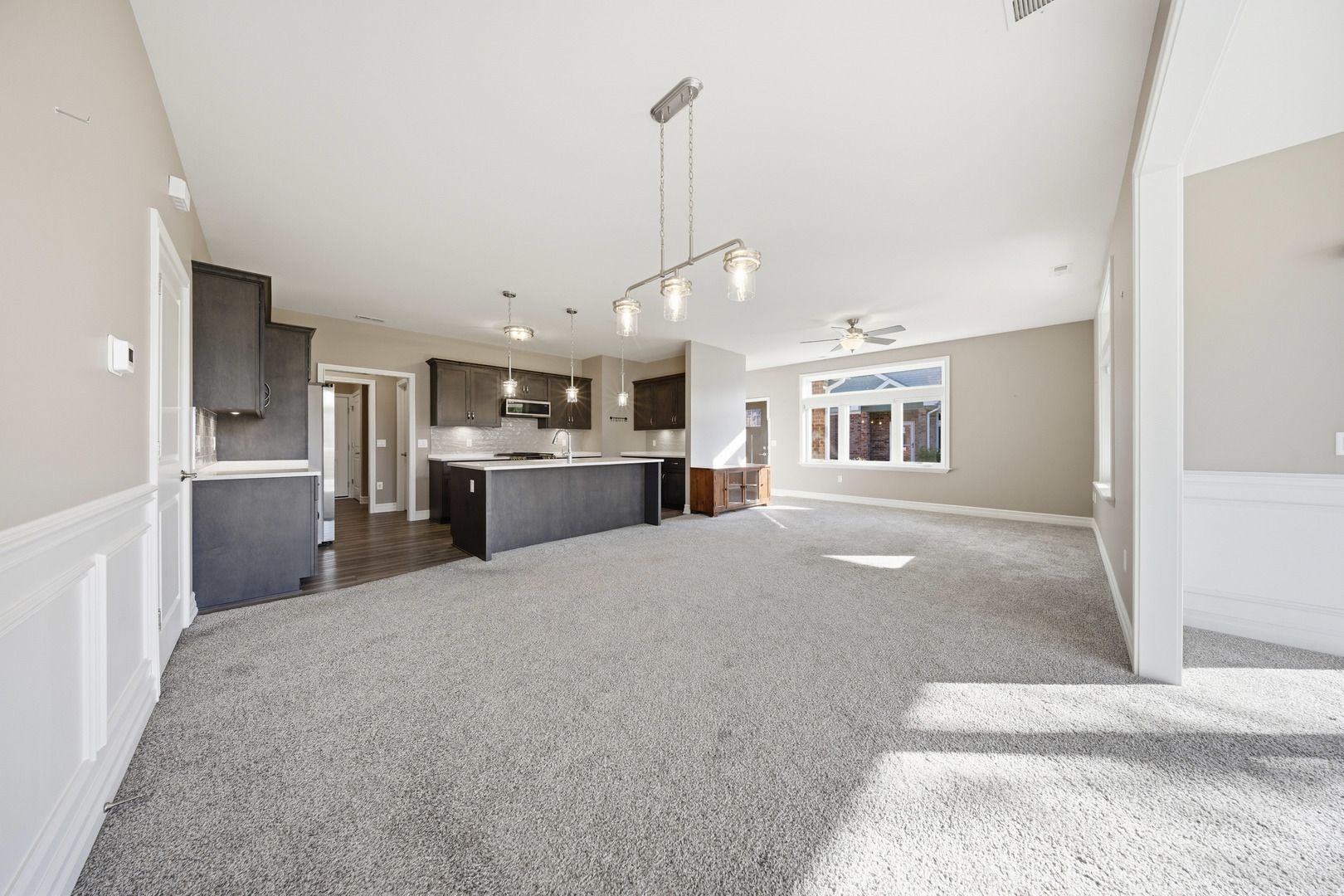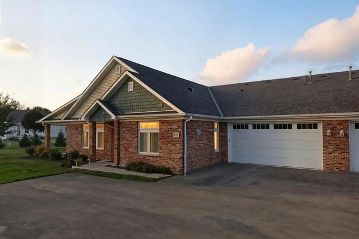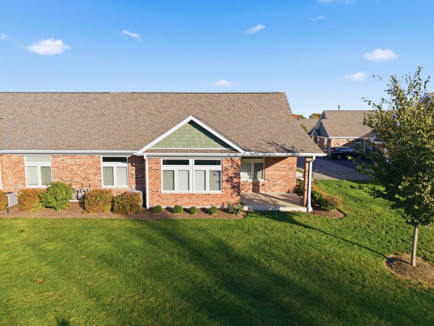 Here is your opportunity to own a condo in the Riverbend 55+ Community in Genoa. This 2 bedroom, 2 full bath, over 1800 sq. ft., ranch condo has a sunroom, a covered patio, and 3-car garage. Brand new clubhouse with a game room, kitchen, meeting area with fireplace, indoor pickle ball court and exercise room. You will find true old world craftsmanship showcased with modern farmhouse style custom details such as chair-rail high wainscoting in dining area and sunroom and oversized solid wood trim, windowsills, & crown molding throughout. Open floor plan with 9-foot ceilings and a vaulted sunroom ceiling. Open kitchen featuring quality, high-end Brakur Custom Cabinetry with under-cabinet lighting, quartz countertops and a large island where there can be seating for 4 to gather around. There are Pocket doors between mud room/hall and bedroom. French doors leading to the office. The primary bedroom suite has a stunning tray ceiling with crown and additional picture frame molding; large main bath has double sinks, ceramic flooring, 9' 6" x 4', no-step, ceramic shower with teak bench; linen closet, and huge, 10' x 8', walk-in closet. A covered patio to enjoy peaceful nights and views. Immediate occupancy.