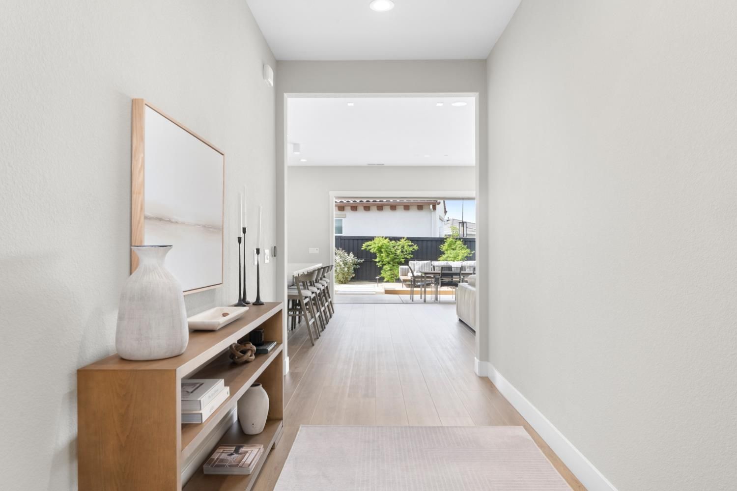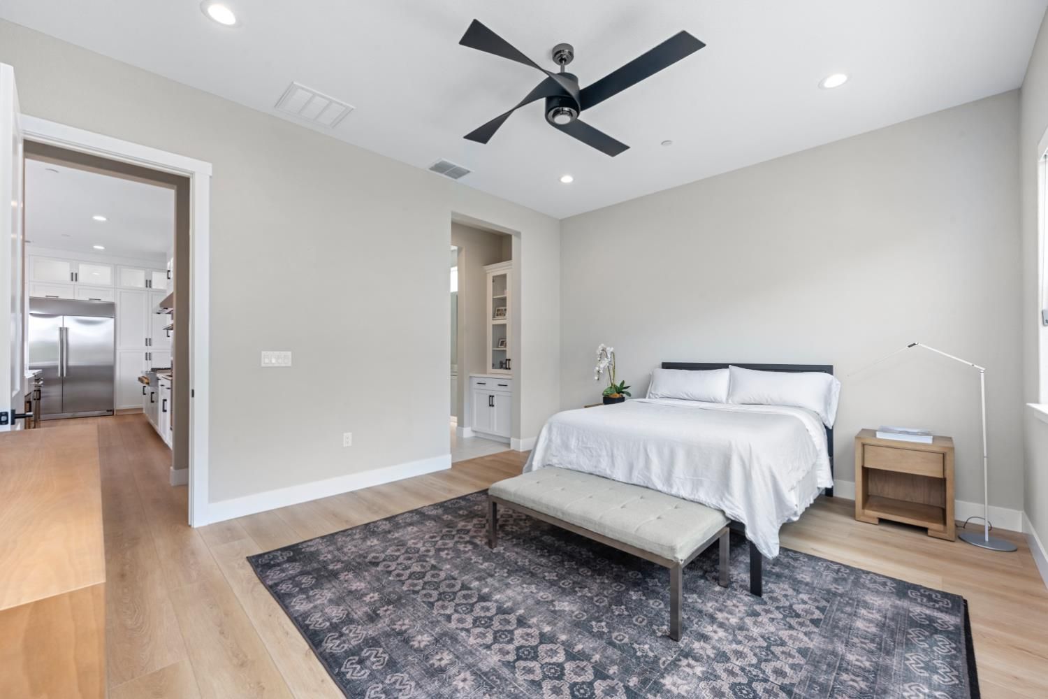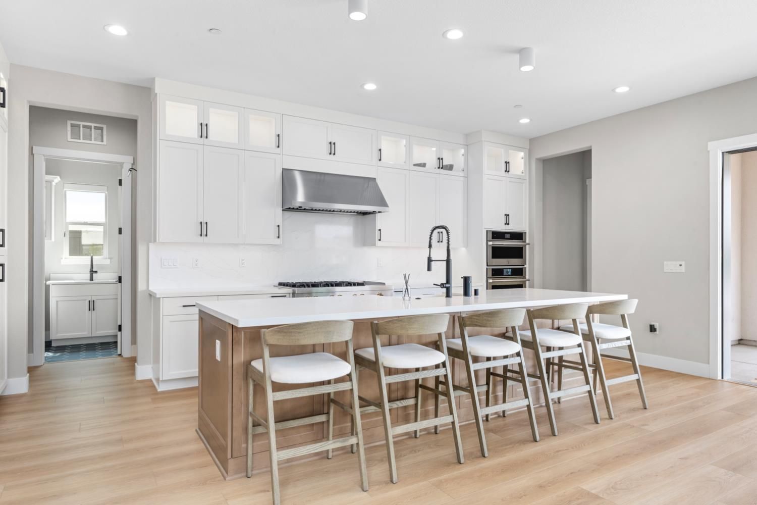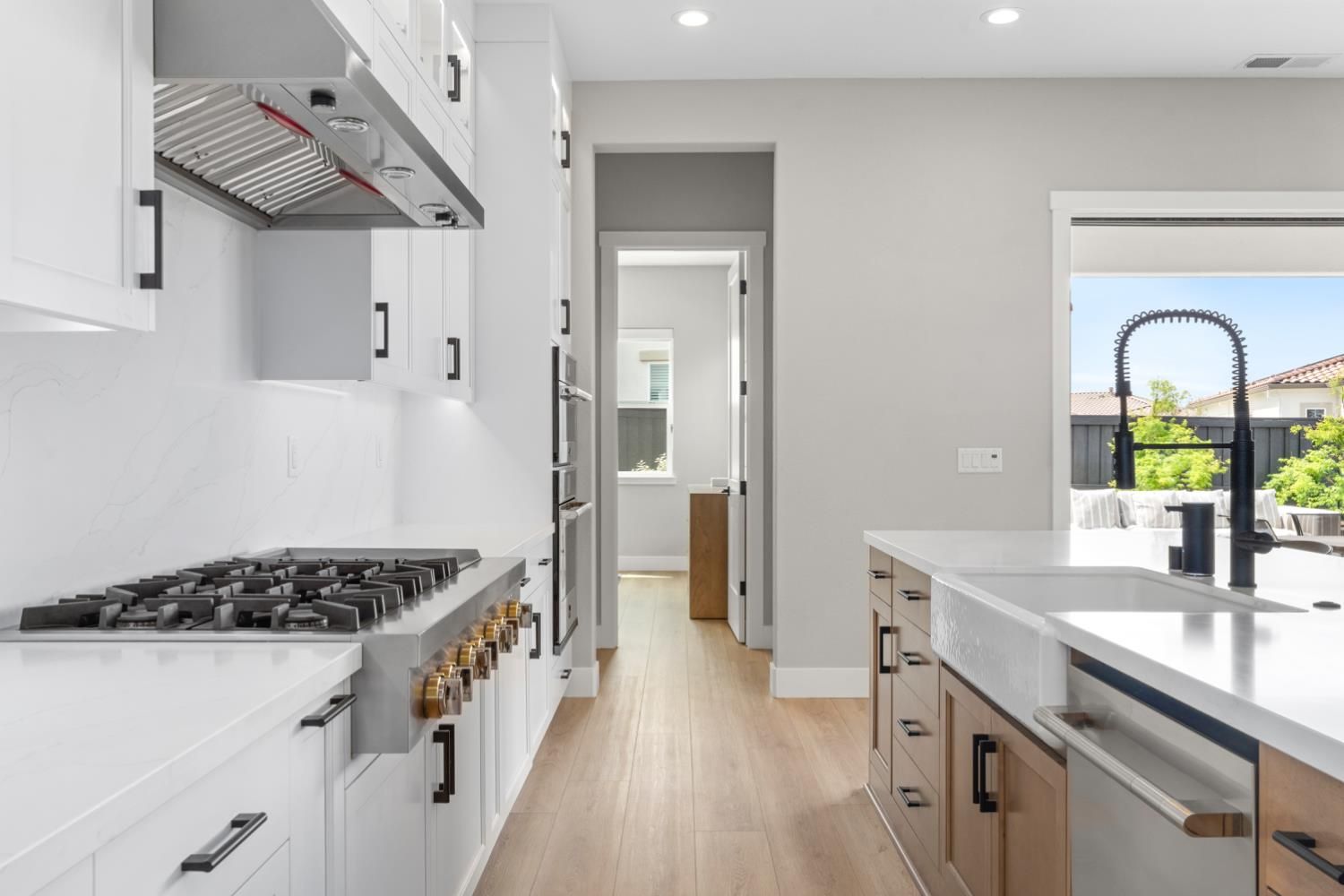 Located in the highly sought-after Regency at Folsom Ranch, an exclusive 55+ gated community, this exceptional residence offers the perfect blend of luxury, comfort, and modern design. Situated on a prime oversized corner lot, the home provides enhanced privacy and impressive curb appeal. Thoughtfully designed with an open-concept floor plan and contemporary architecture, it delivers both elegance and functionality. The grand chef's kitchen flows seamlessly into the expansive great room, highlighted by an impressive accordion-style sliding glass door that creates a true indoor-outdoor al fresco living experienceideal for entertaining or relaxing in style. Inside, the home showcases extensive upgrades, including luxury vinyl plank flooring, designer tile accents, quartz slab surfaces, sleek white European-style cabinetry, stainless steel appliances, and curated designer plumbing and lighting fixtures throughout. The private primary suite serves as a tranquil retreat, featuring a spa-inspired bathroom with an oversized walk-in shower and a modern floating vanity. On a separate wing, two spacious en-suite bedrooms provide comfort and privacy for guests, complemented by a centrally located powder room. The beautifully landscaped backyard is designed for both relaxation and future possibilities, featuring an oversized covered patio, a raised deck for everyday lounging, elegant Japanese maples, and a generous side yard perfect for a future pool or garden. Additional highlights include owned solar, a built-in GE Monogram refrigerator, upgraded cabinetry, upgraded JennAir RISE appliances with professional-grade performance, a Heat and Glow True gas fireplace, and Hunter Douglas window treatments. Property Details: 3 Bedrooms 3.5 Bathrooms Approx. 2,012 Sq. Ft. 2-Car Garage Residents of Regency at Folsom Ranch enjoy resort-style amenities, including a pool, spa, fitness center, pickleball courts, dog park, playground, and scenic walking trails.
